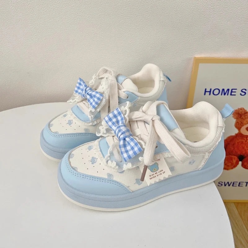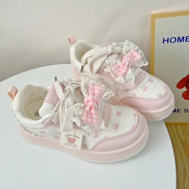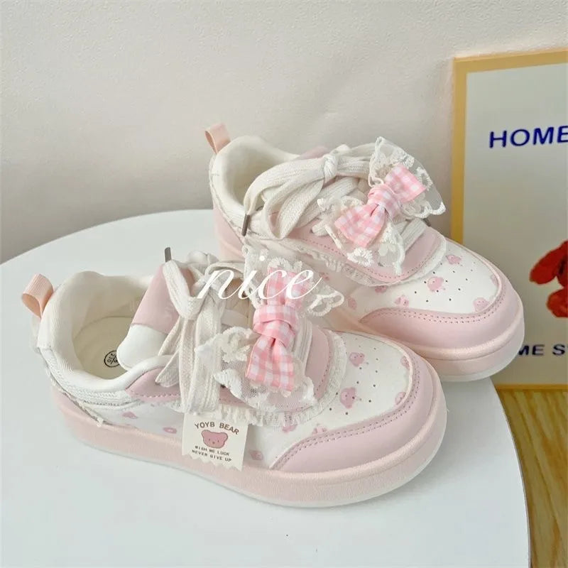 KYLETHOMASW  -  New Women Students Sneakers Fashion Cute Ladies Causal Shoes School Patchwork Non-slip Women's Sports Shoes with Bowknot