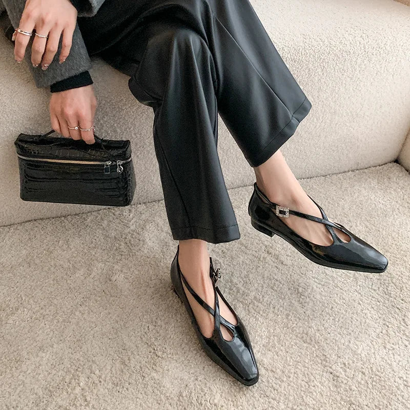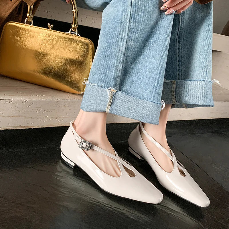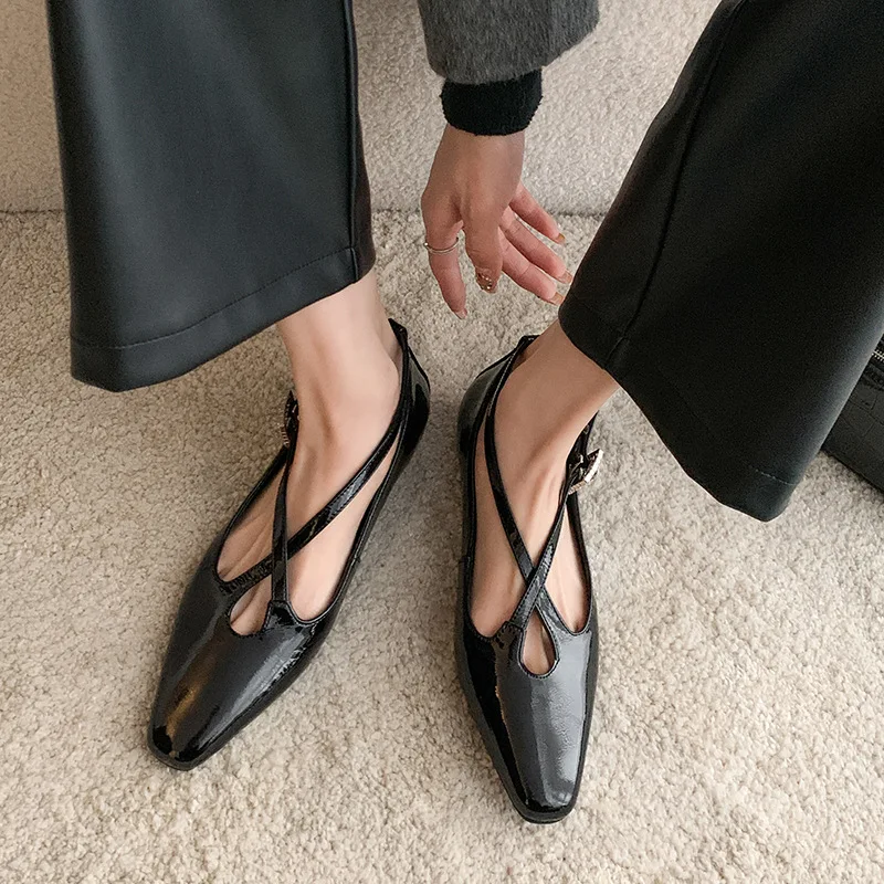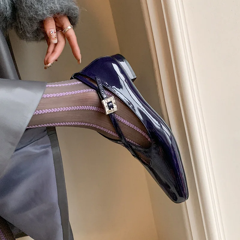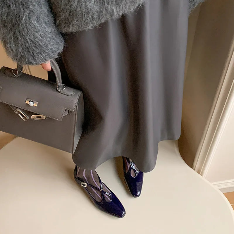 KYLETHOMASW - New Women's Retro Round Toe Cross Water Diamond With Casual Coarse Heel Mary Jane Ladies Shoes French Single Shoes
