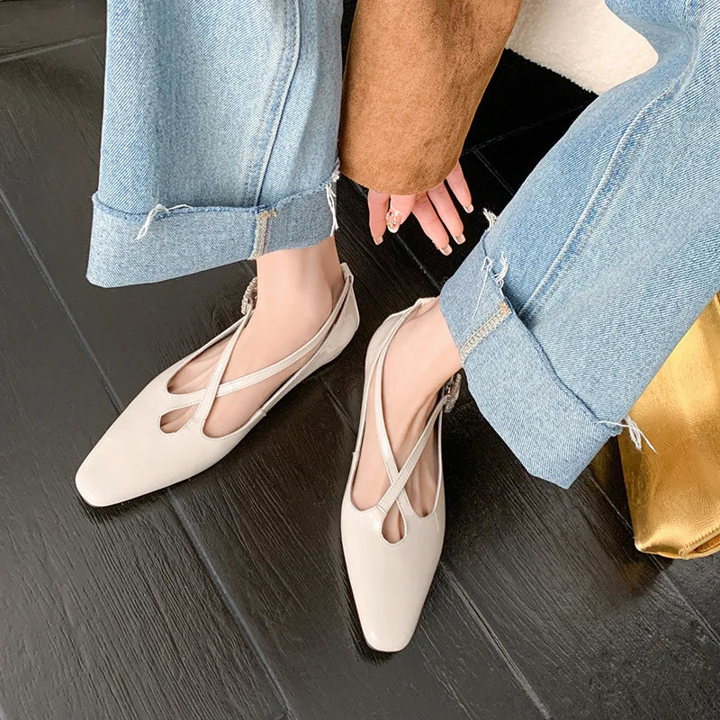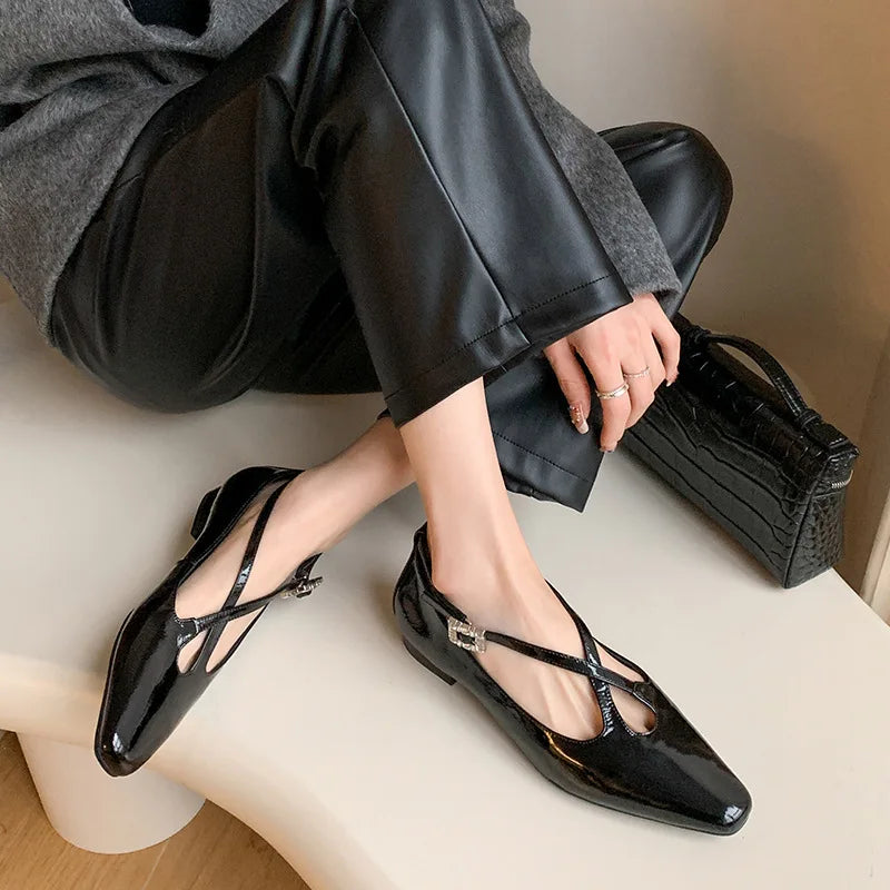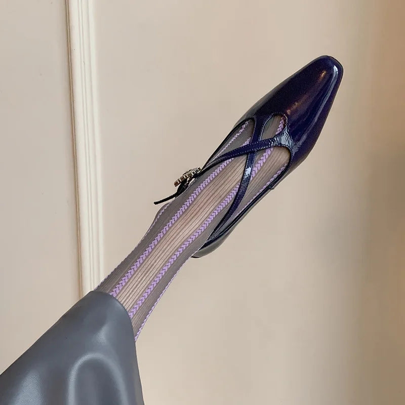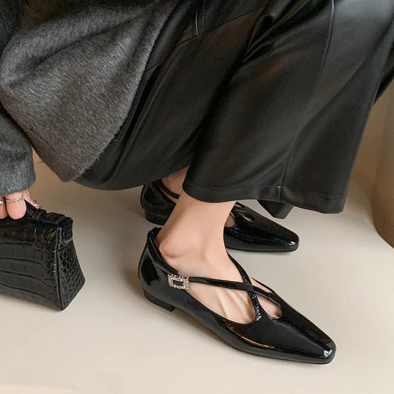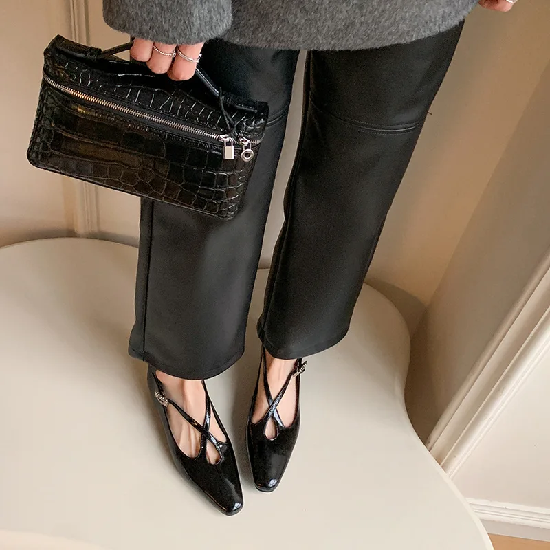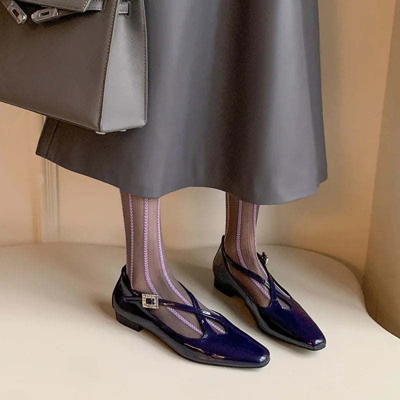 KYLETHOMASW - New Women's Retro Round Toe Cross Water Diamond With Casual Coarse Heel Mary Jane Ladies Shoes French Single Shoes