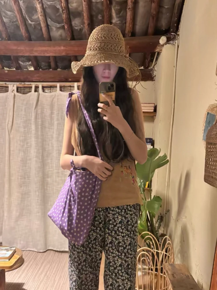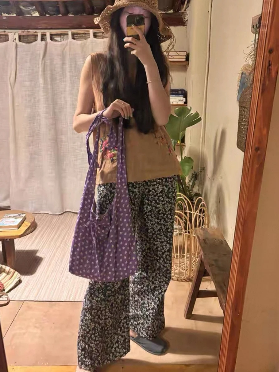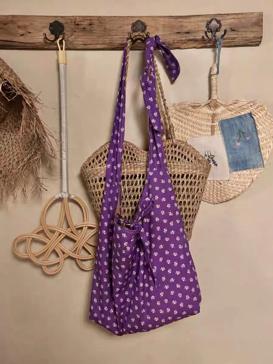KYLETHOMASW - Niche Design Large Capacity Tote Bags French Purple Floral Single Shoulder Crossbody Canvas Women's Bag