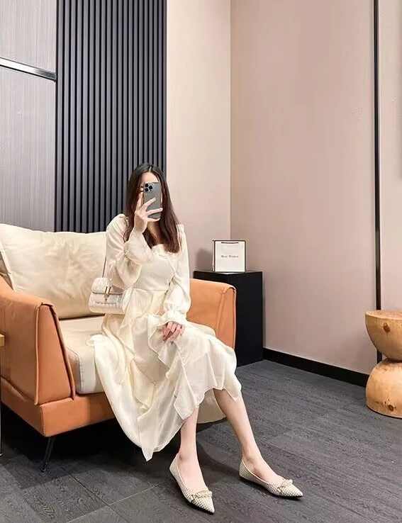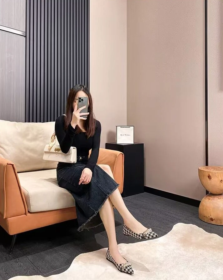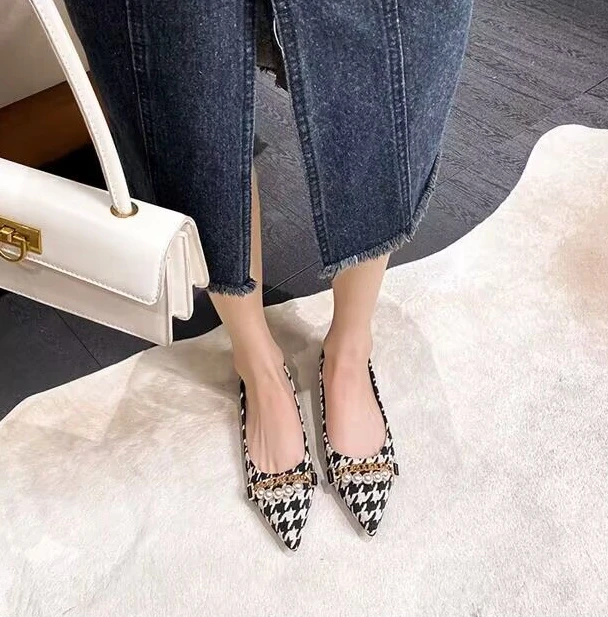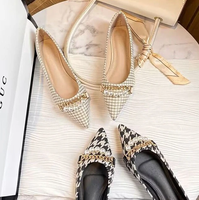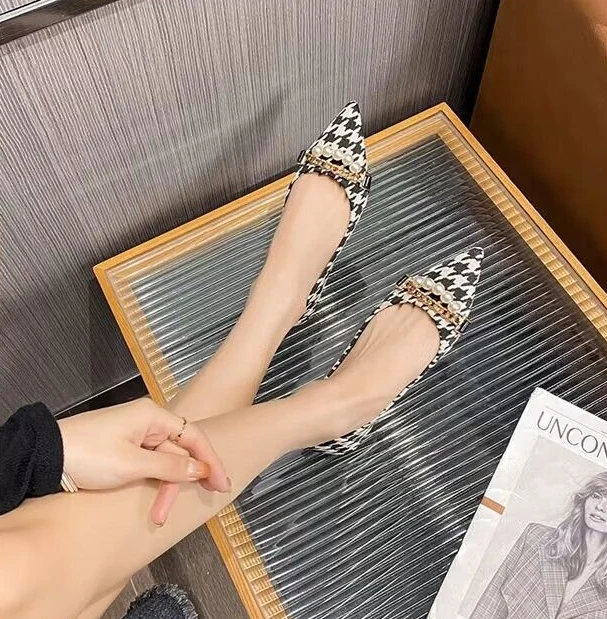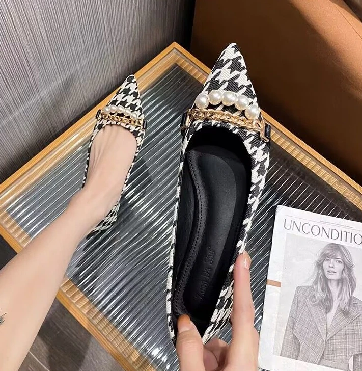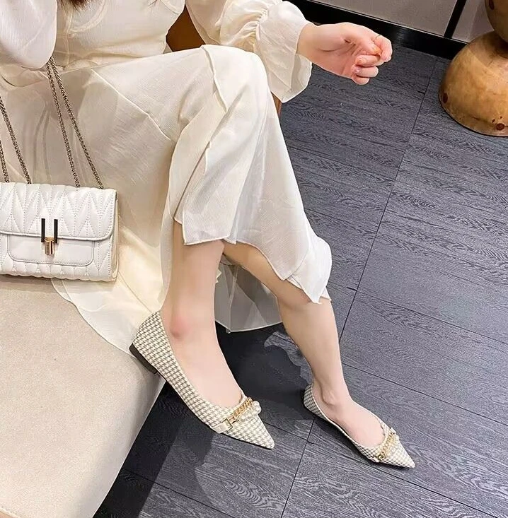 Kylethomasw Normal Leather Casual Pearl Pointed Toe Formal Shoes for Woman 2024 Flats Flat Women's Summer Footwear Office Chic and Elegant E