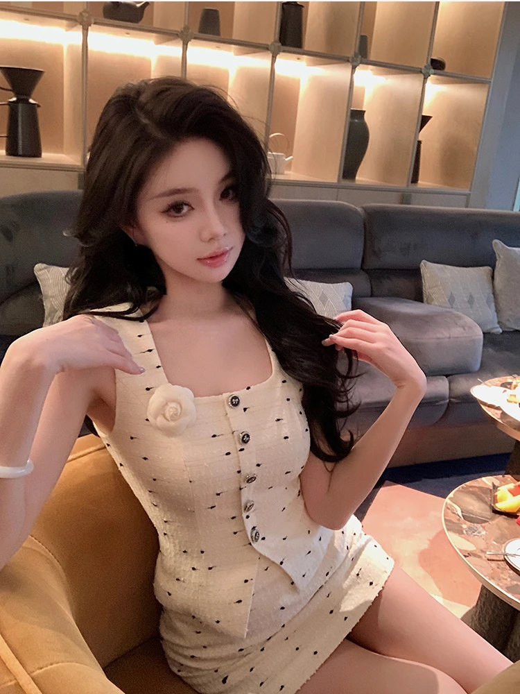 KYLETHOMASW - Office Lady Elegant Vintage Set Print Vest Blouse + Slim Short Skirt Women 2 Piece Skirt Suits French Summer Vintage Y2k Fashion