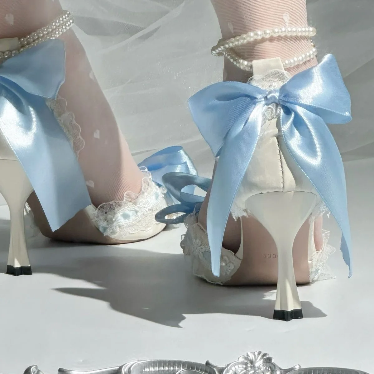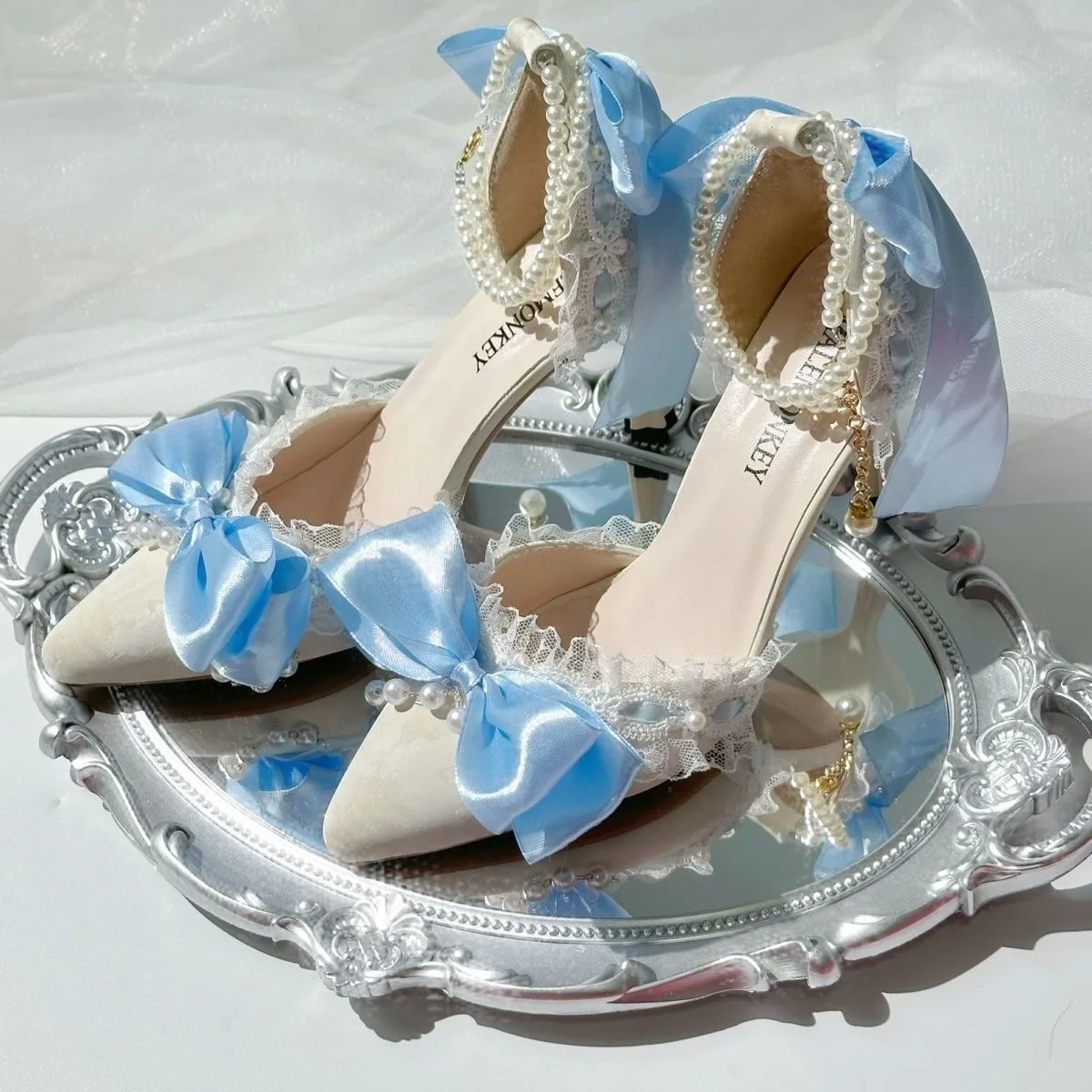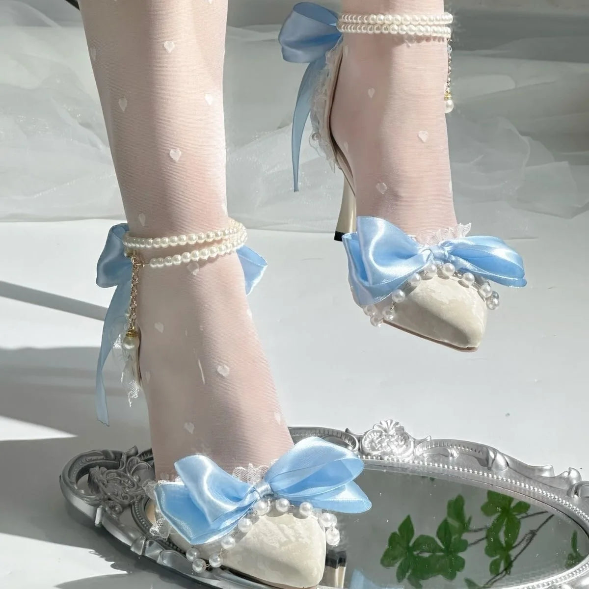 KYLETHOMASW - Party Shoes Woman Trend 2025 Blue High Heels Woman Pearl Lolita Shoes Y2K Heel Woman Summer Shoes 2025 Mary Jane Slingback