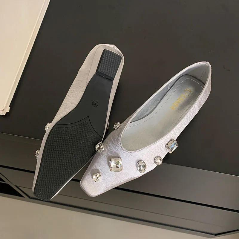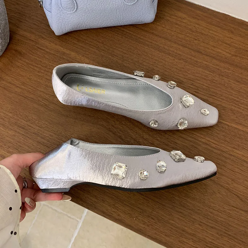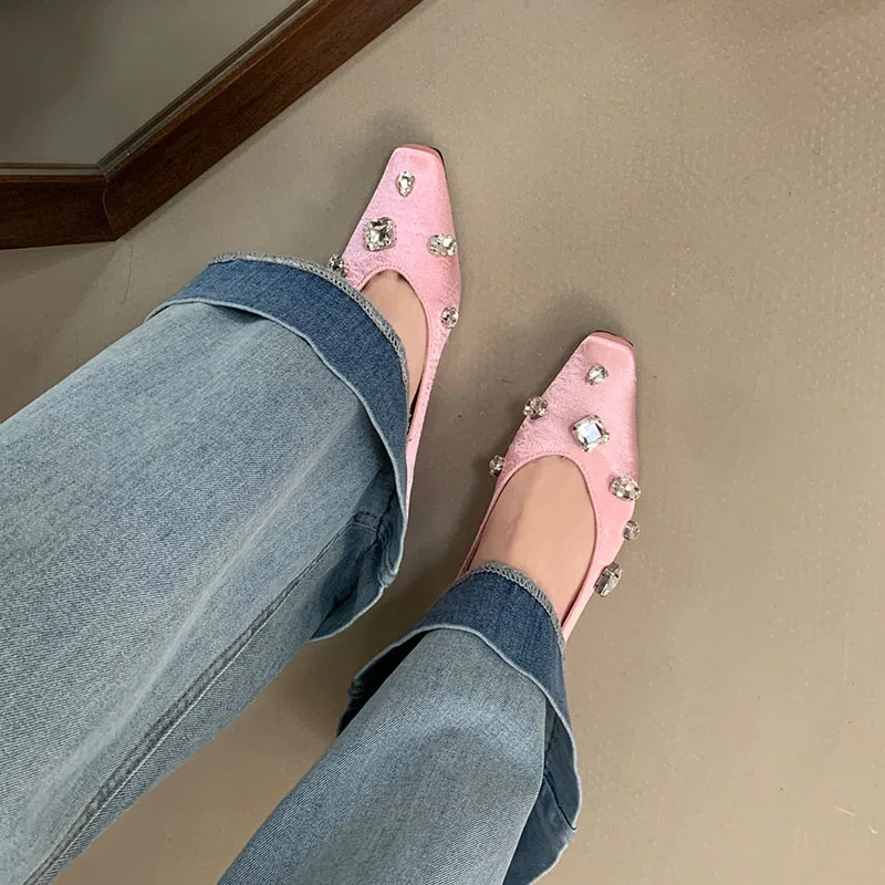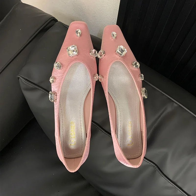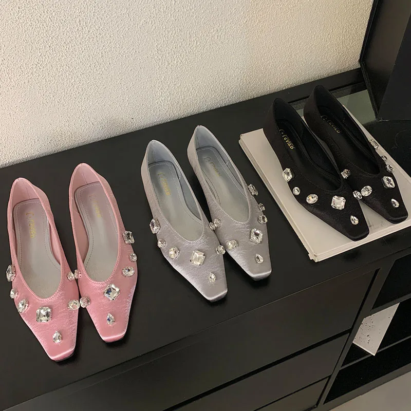 KYLETHOMASW  -  Pink Luxury Fashion Rhinestones Silk Women Flats With Shoes Female Soft Shallow Footwear Crystal Ladies Slip On Flats Shoes