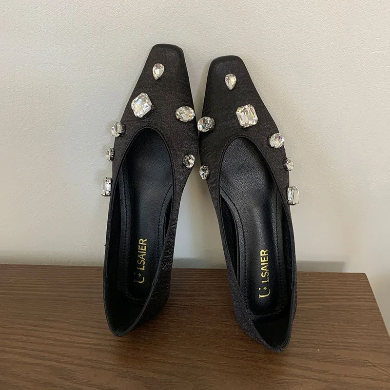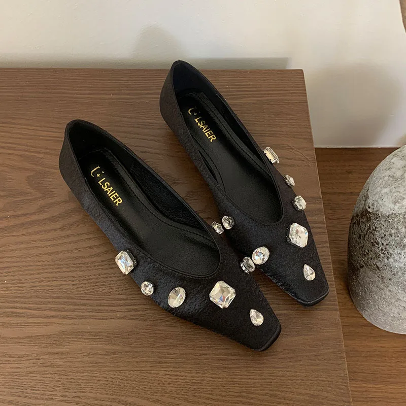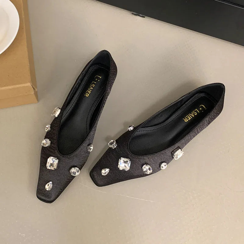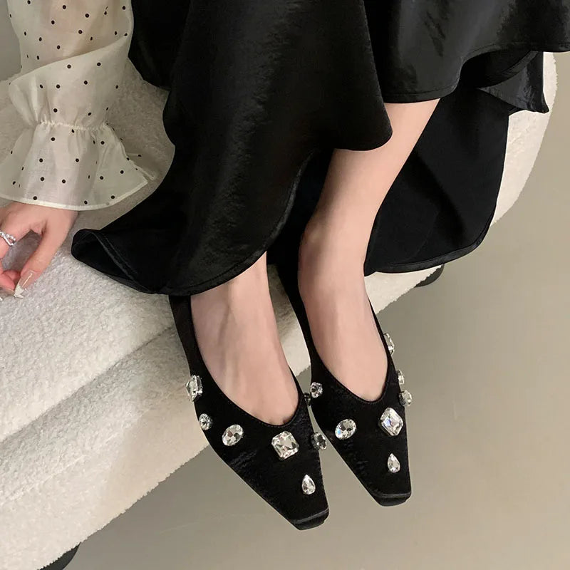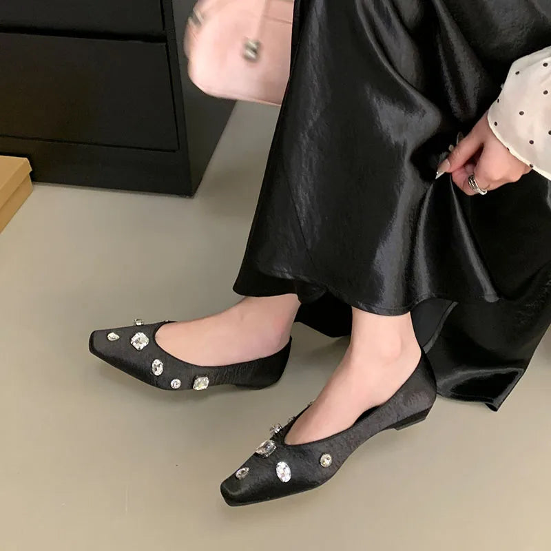 KYLETHOMASW  -  Pink Luxury Fashion Rhinestones Silk Women Flats With Shoes Female Soft Shallow Footwear Crystal Ladies Slip On Flats Shoes