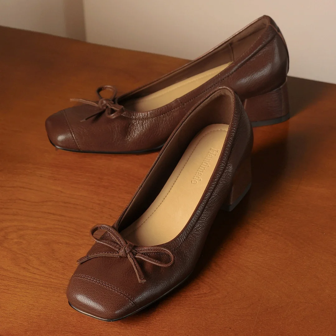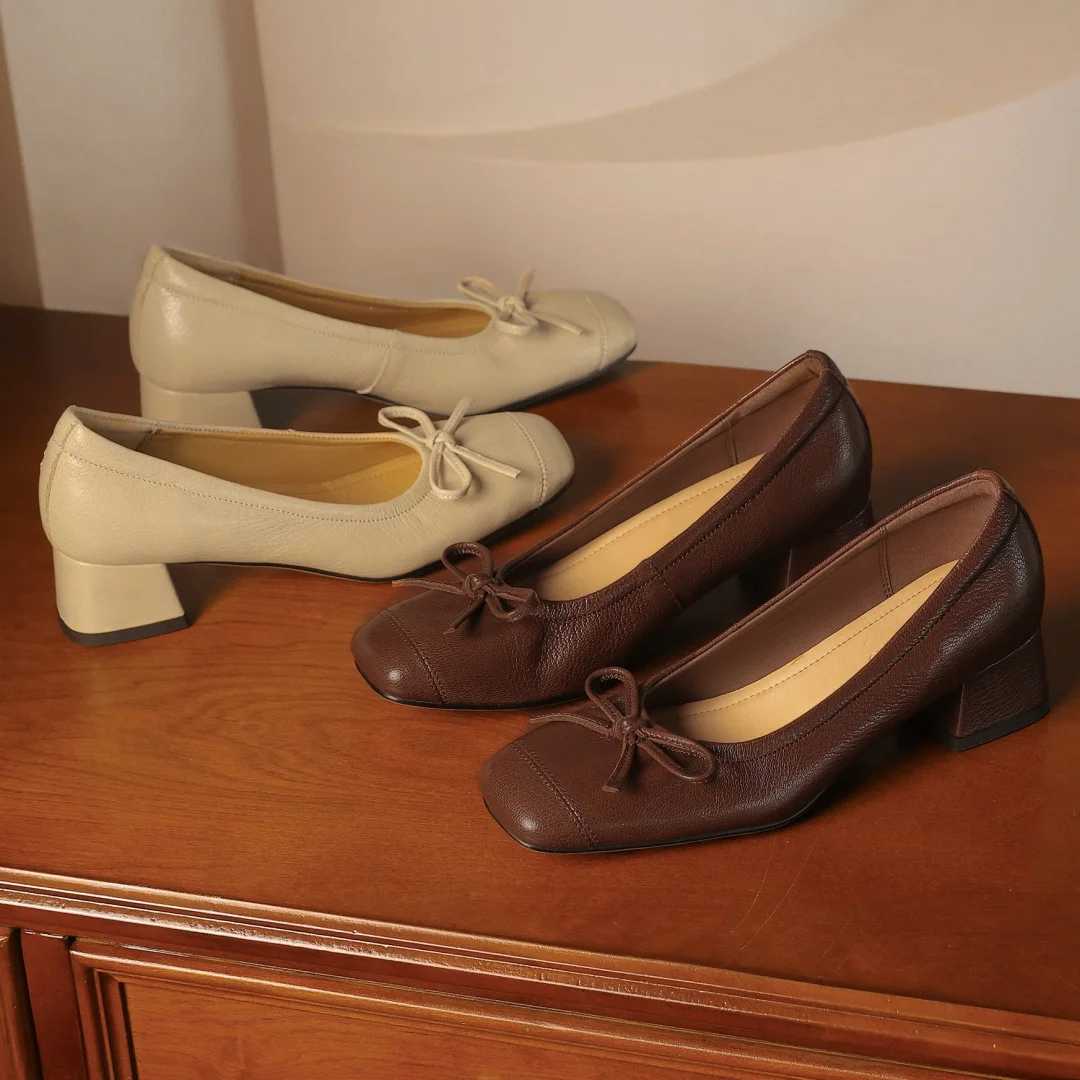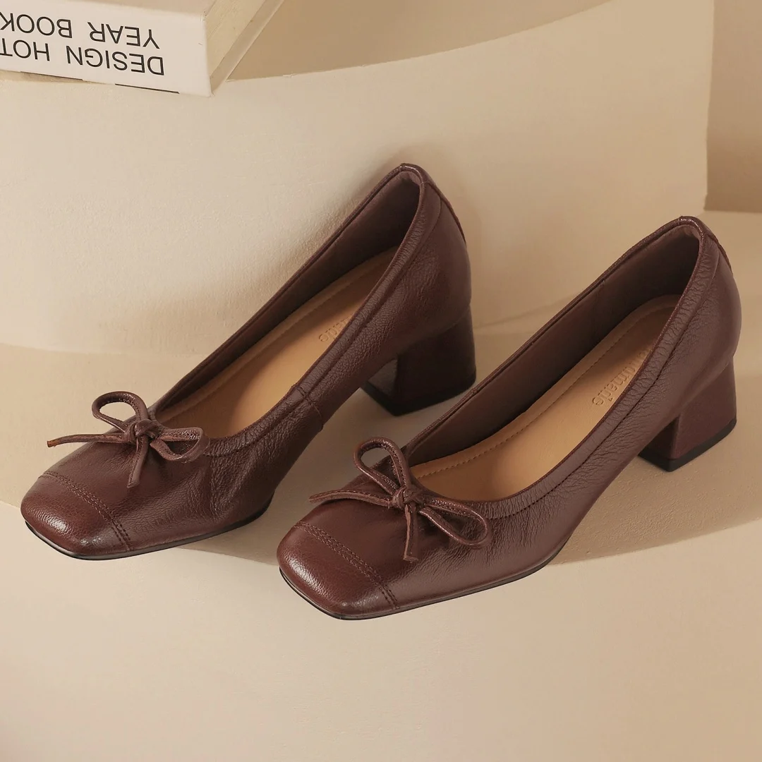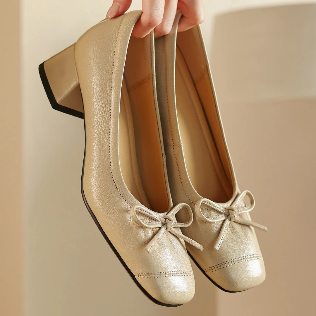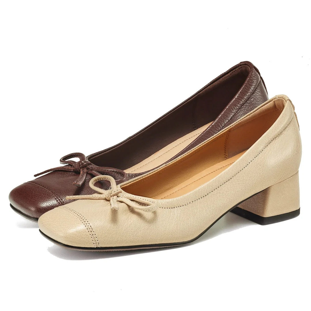 KYLETHOMASW - Plus size 34-41 women's sheepskin slip-on pumps 4cm thick low heel sweet bowtie elegant ladies high quality soft comfort shoes