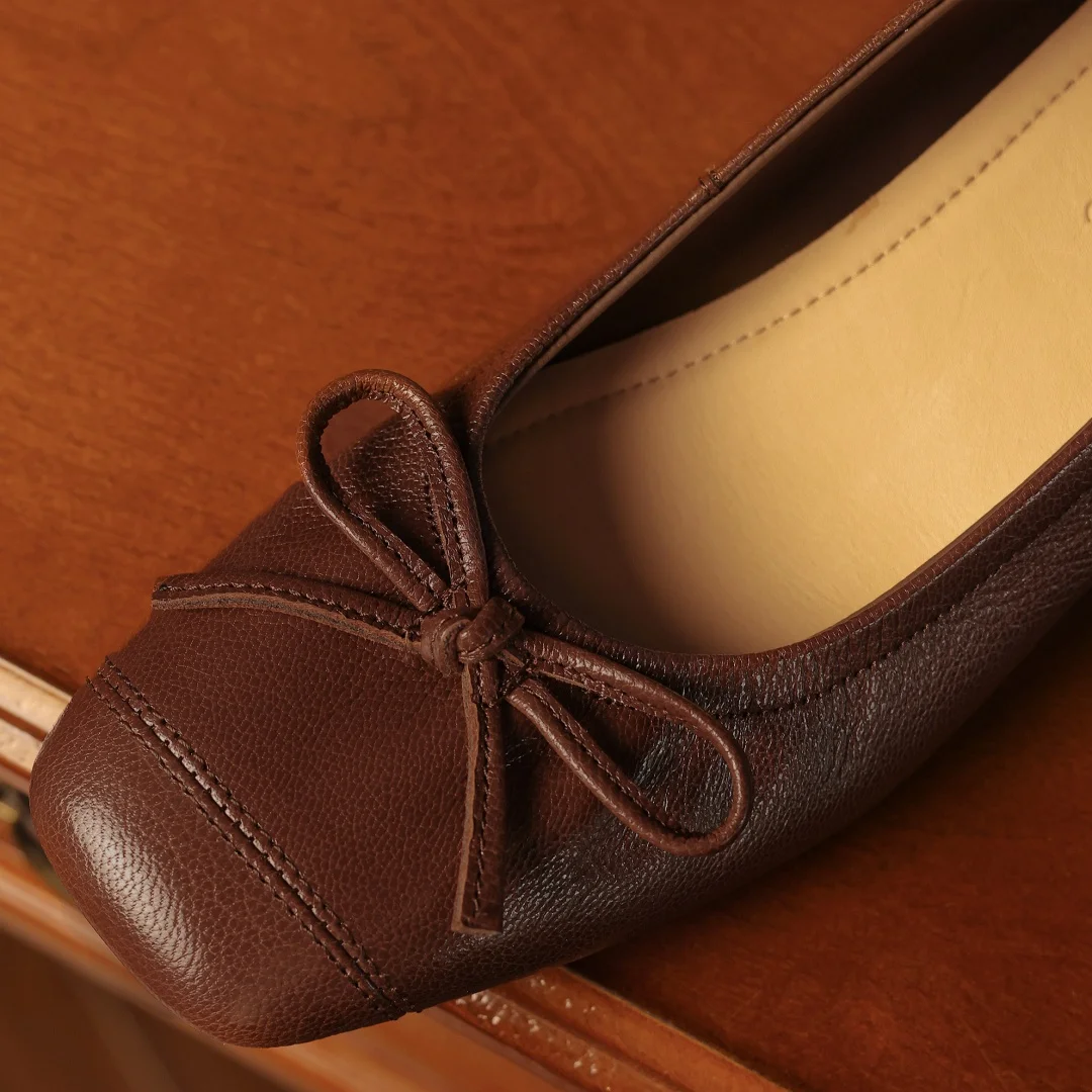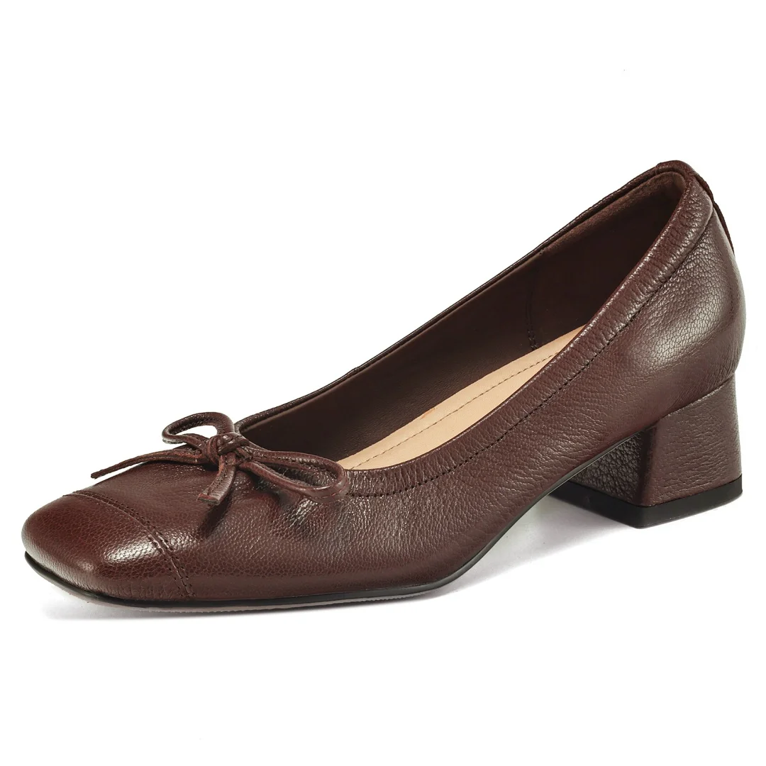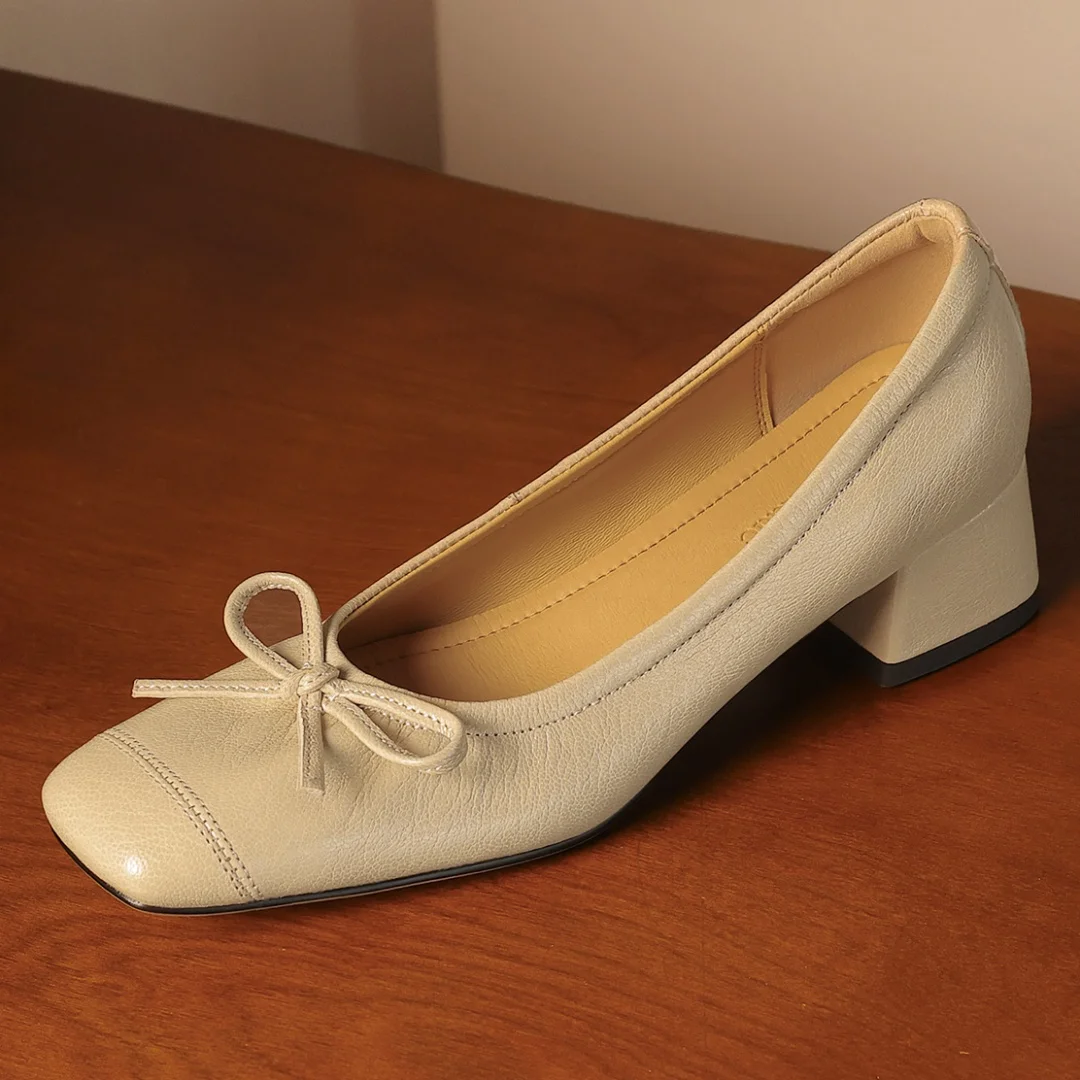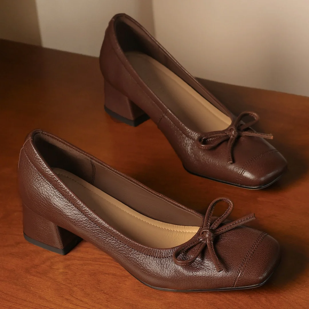 KYLETHOMASW - Plus size 34-41 women's sheepskin slip-on pumps 4cm thick low heel sweet bowtie elegant ladies high quality soft comfort shoes