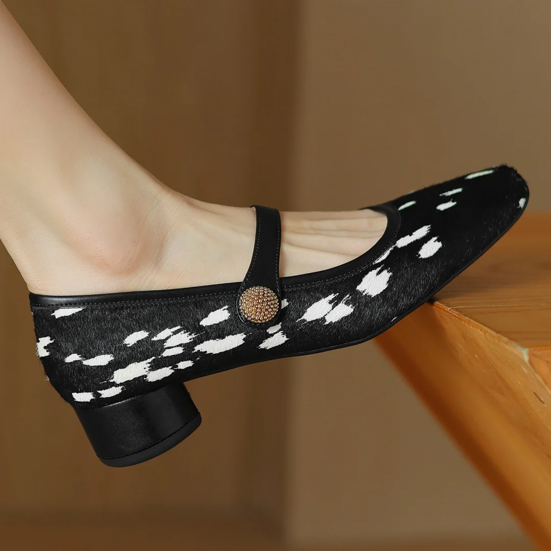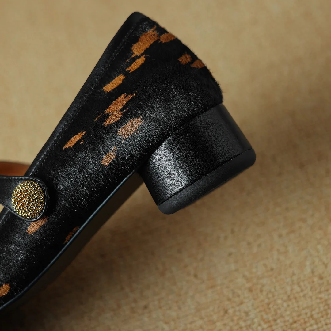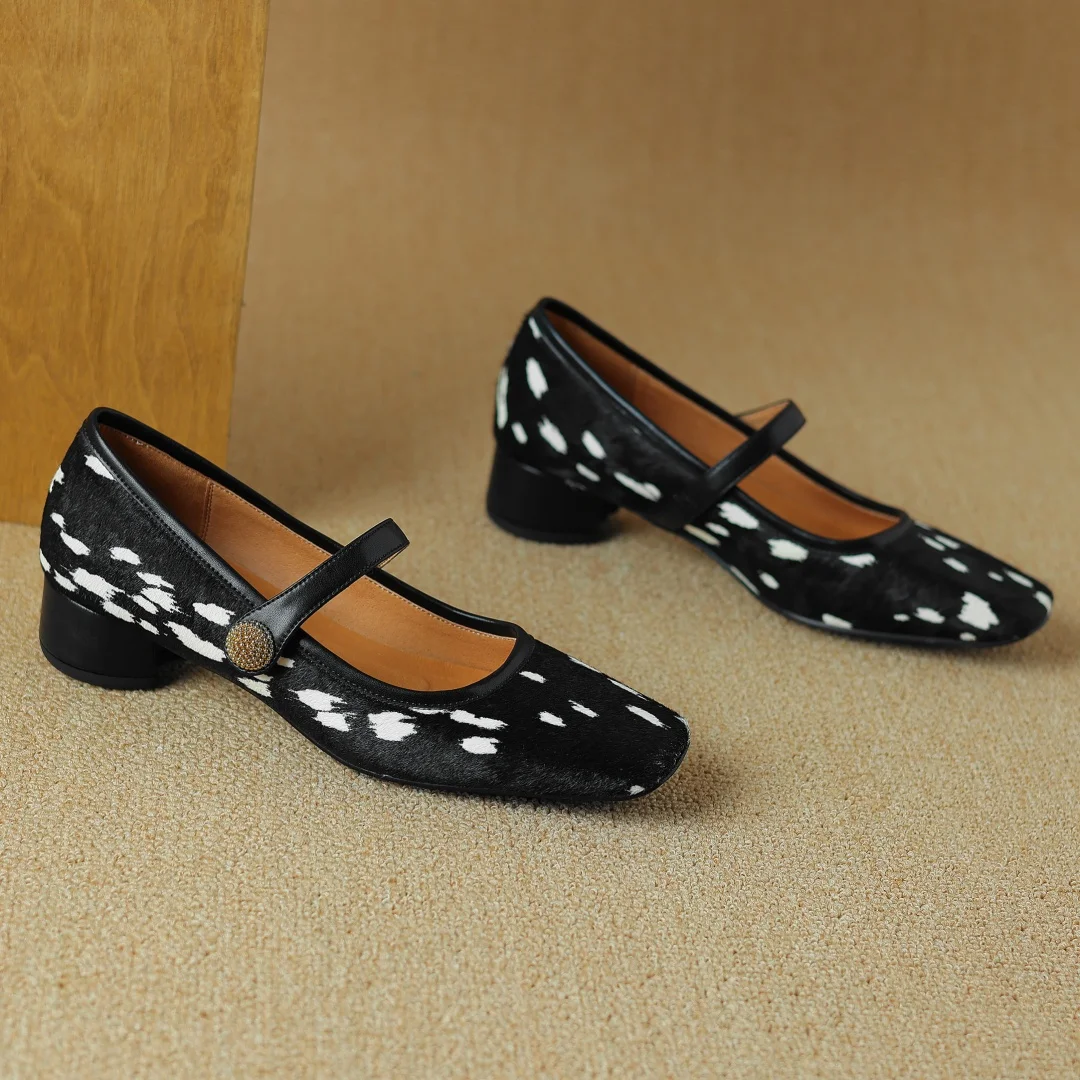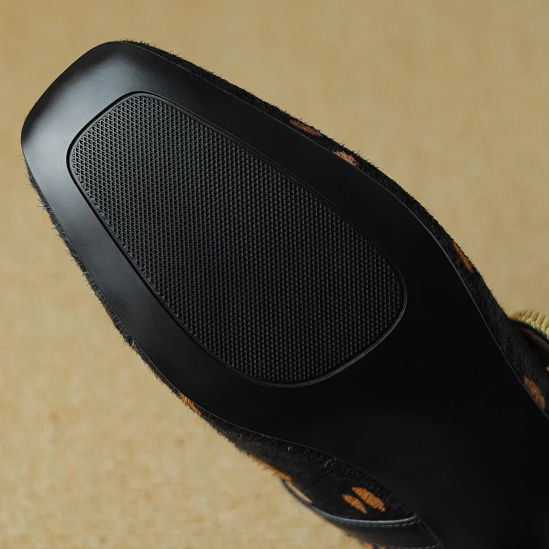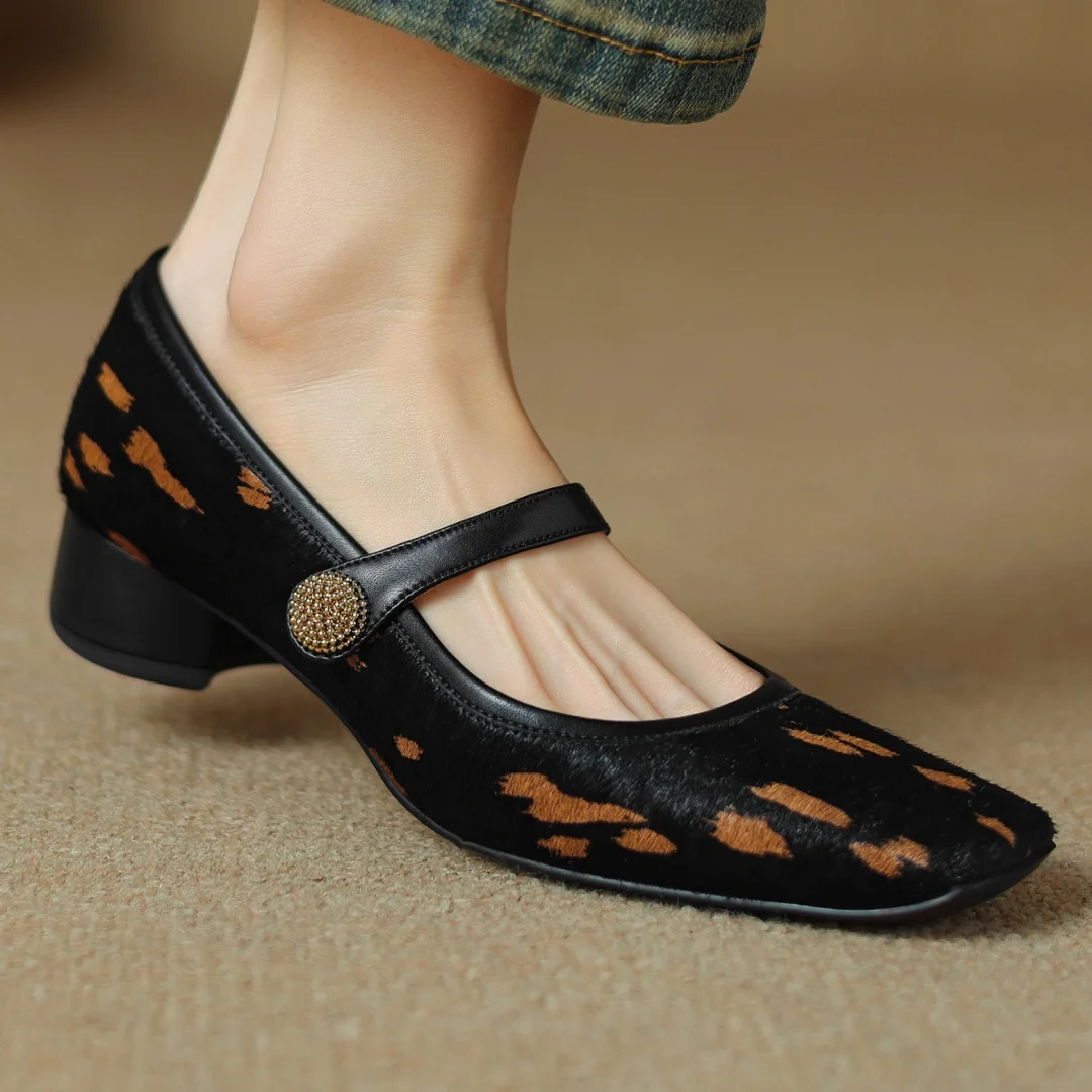 KYLETHOMASW - Plus size 34-42 women's leopard horsehair Mary Jane flats square toe high quality female soft comfortable slim elegant shoes hot