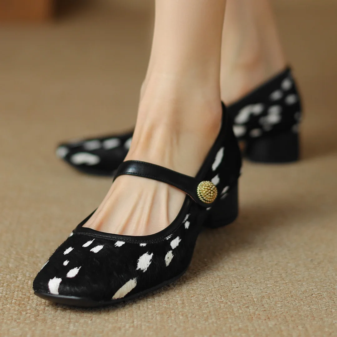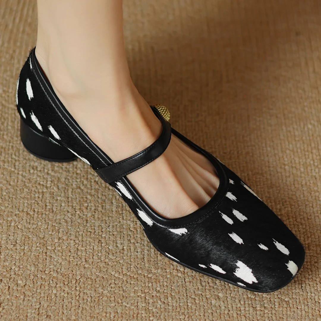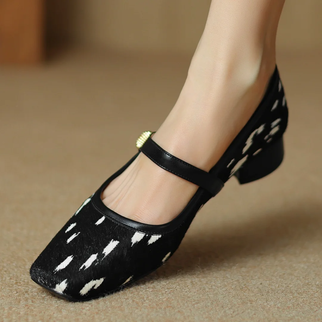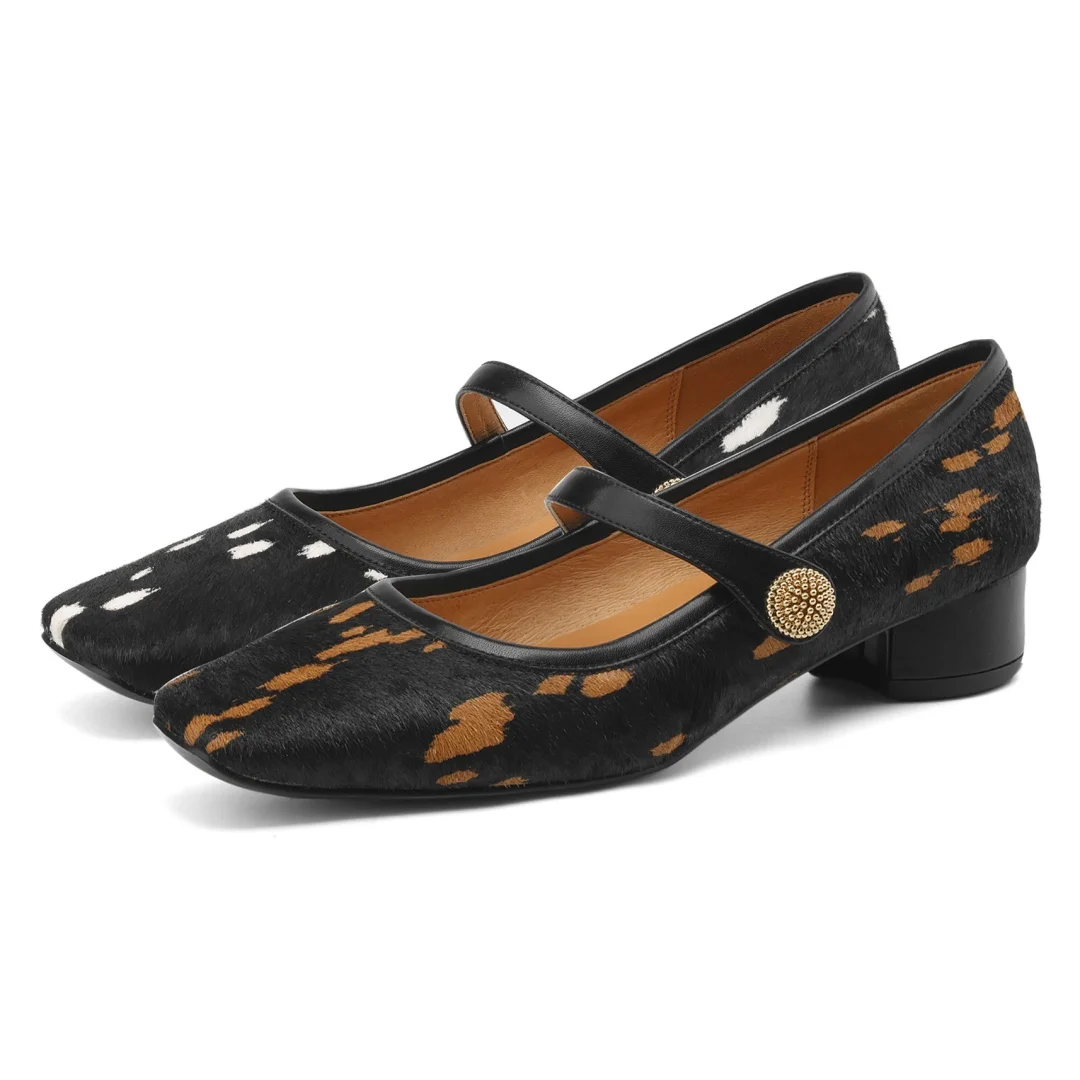 KYLETHOMASW - Plus size 34-42 women's leopard horsehair Mary Jane flats square toe high quality female soft comfortable slim elegant shoes hot