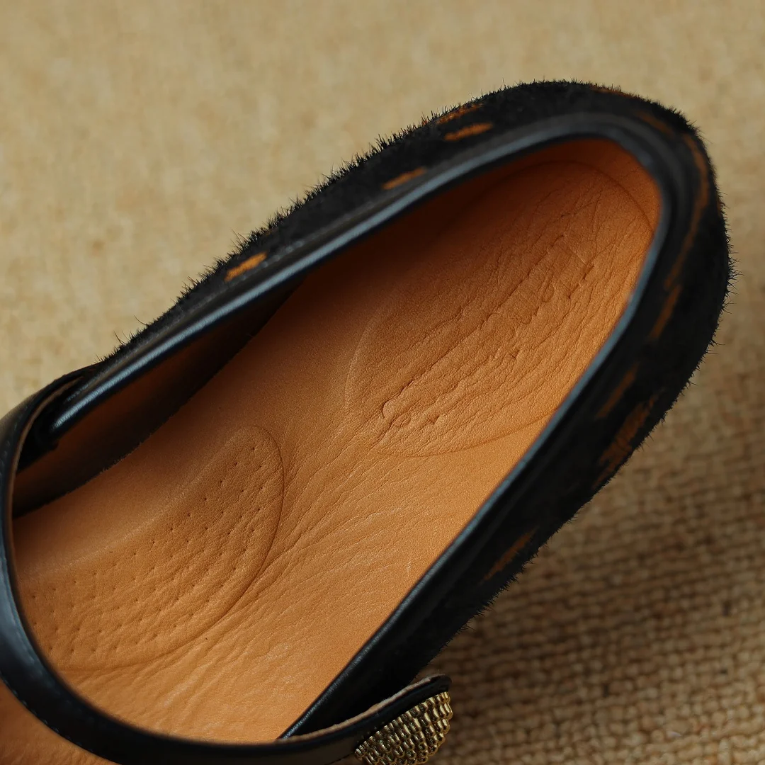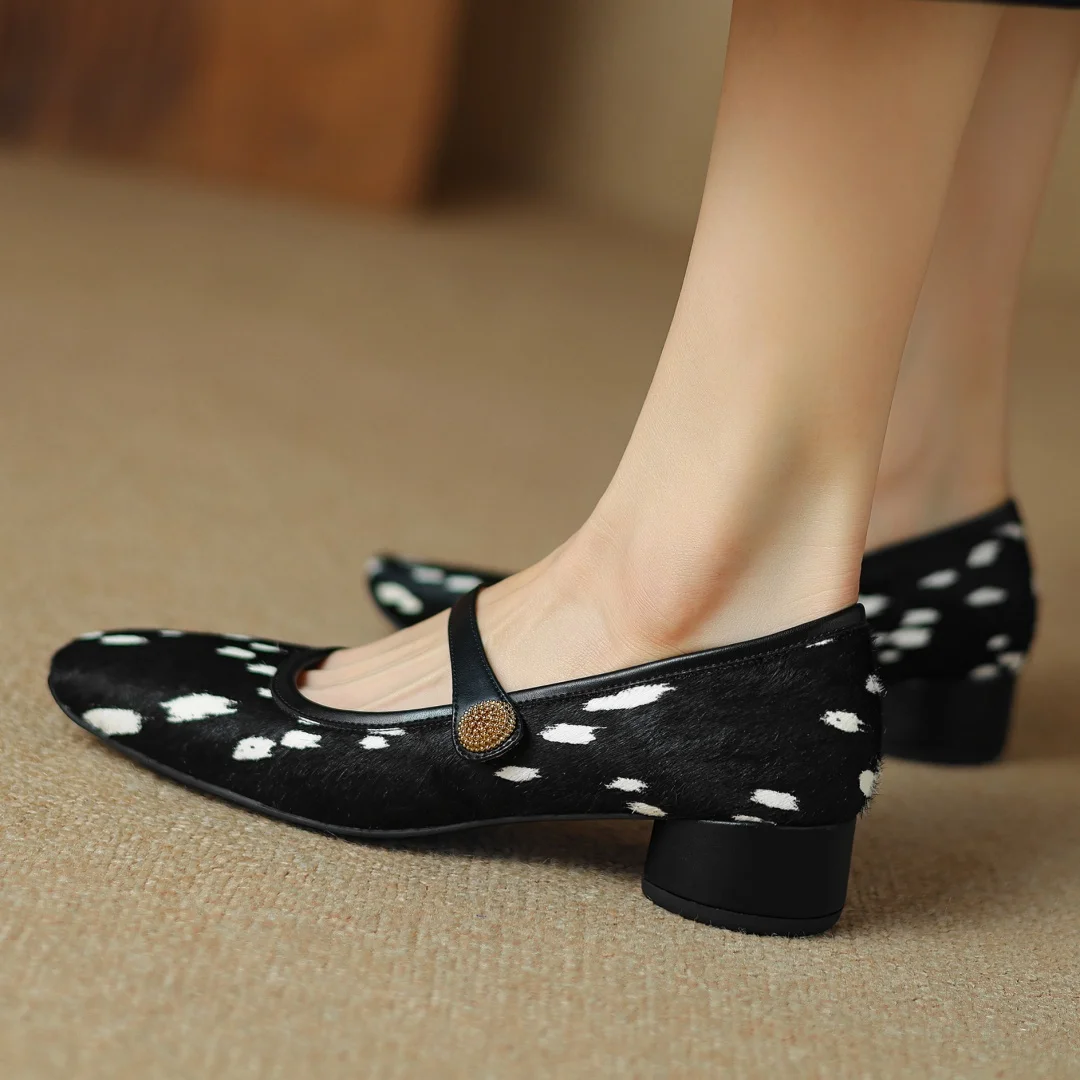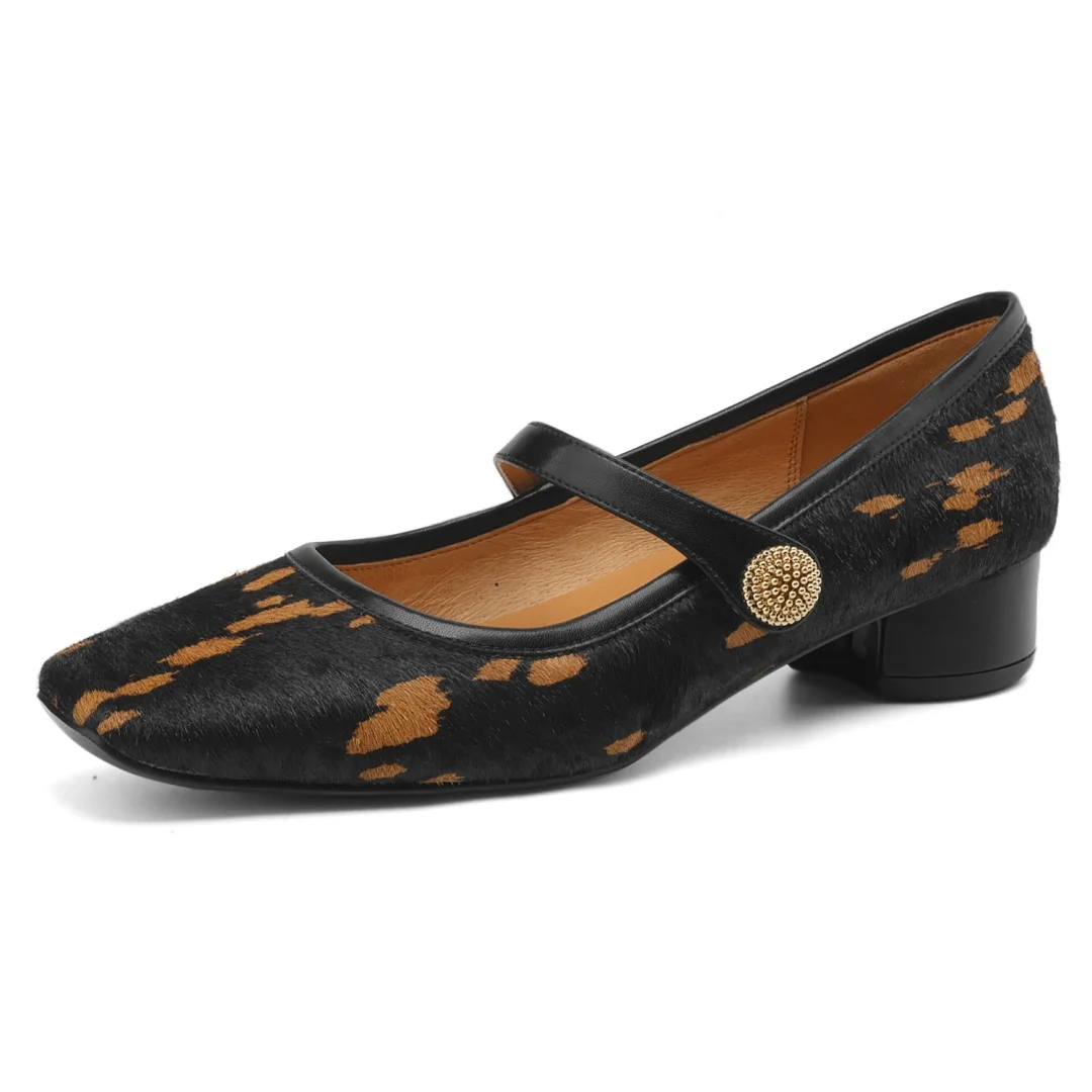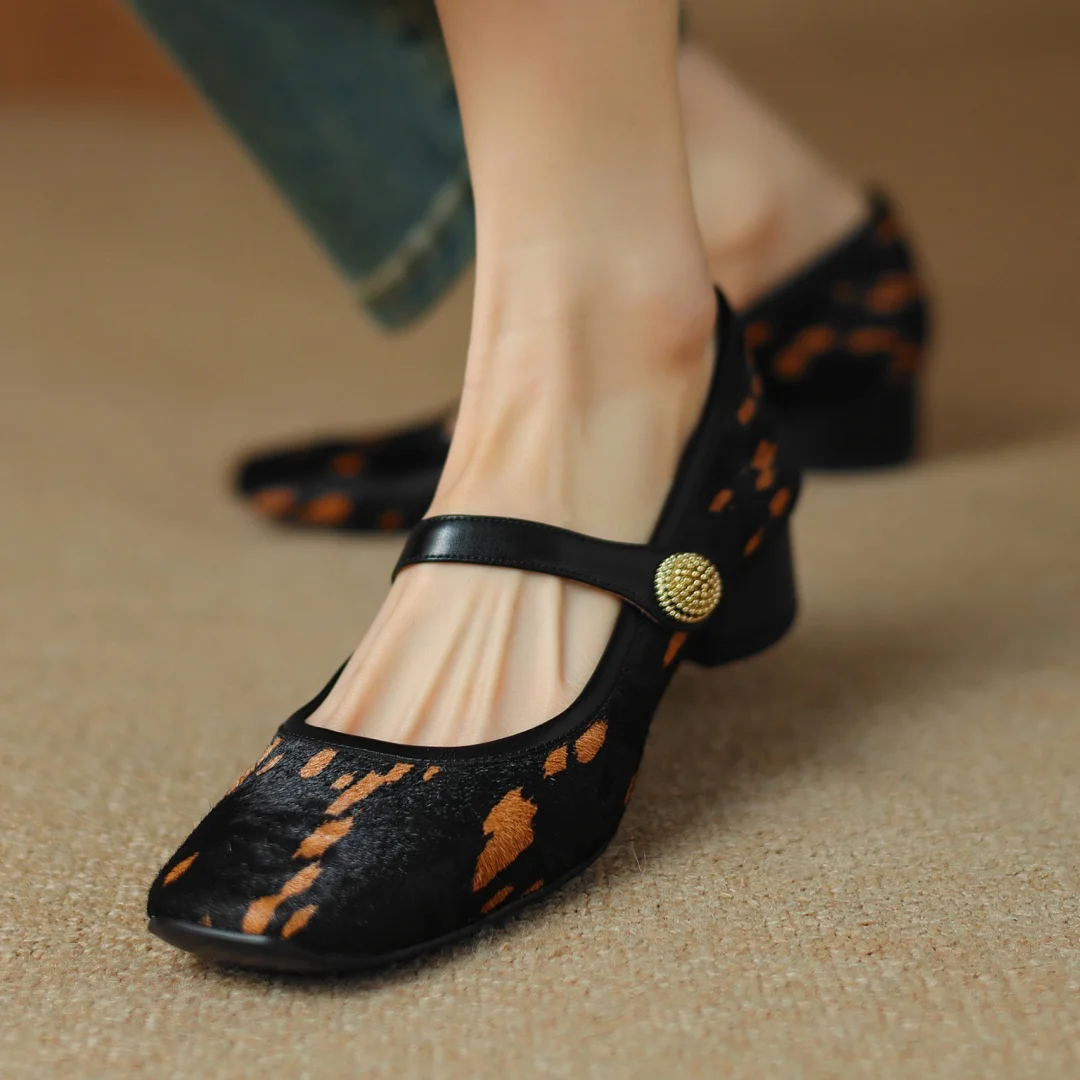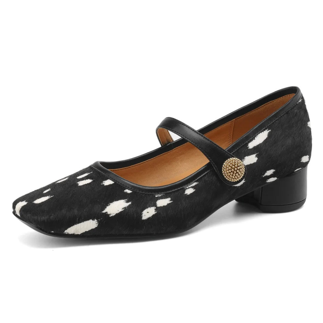 KYLETHOMASW - Plus size 34-42 women's leopard horsehair Mary Jane flats square toe high quality female soft comfortable slim elegant shoes hot