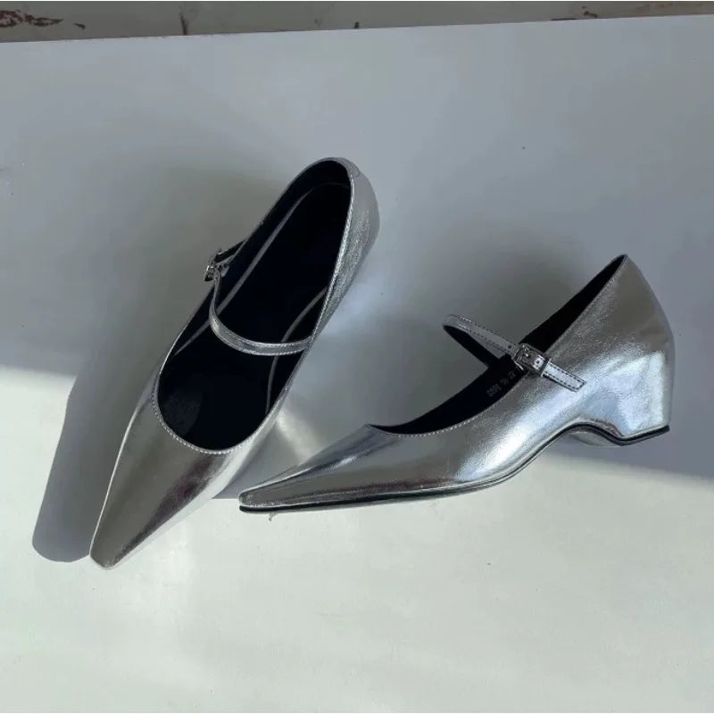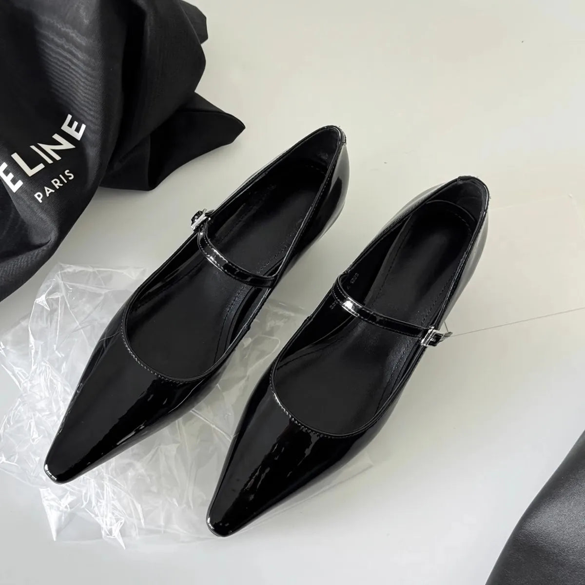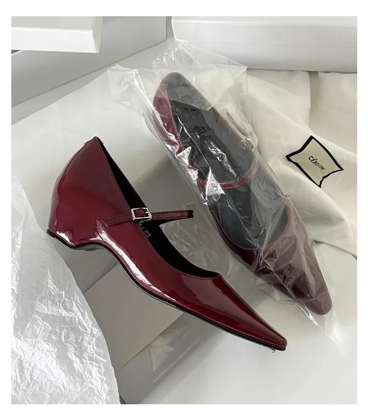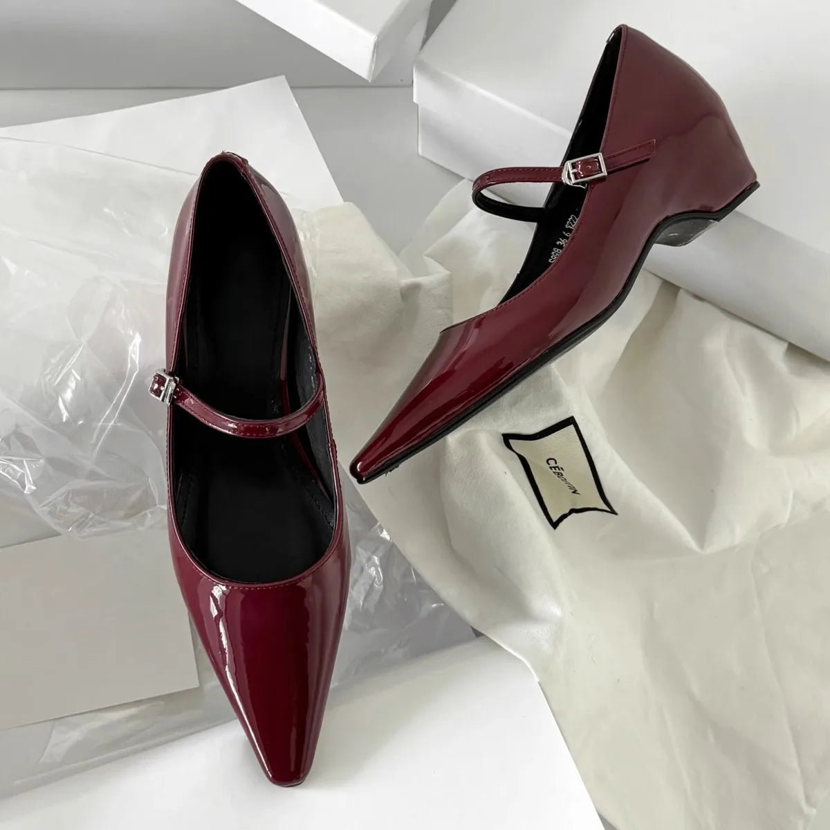 KYLETHOMASW - Pointed Toe Women Shoes Buckle Strap Solid Color Retro Designer Brand 5CM High Heel Shallow Female Shoes Concise Casual Shoes