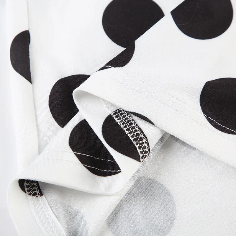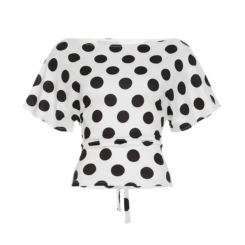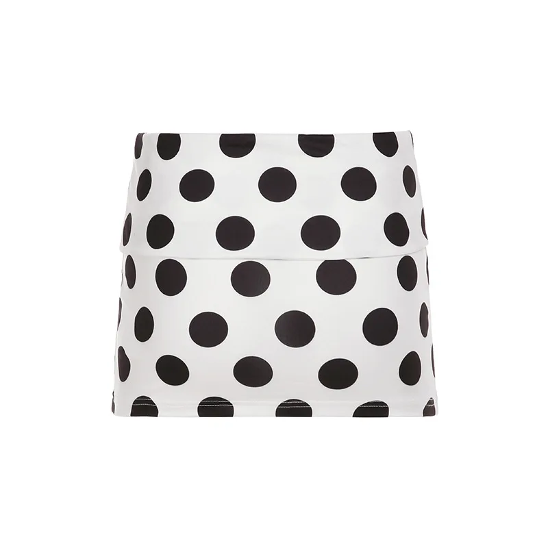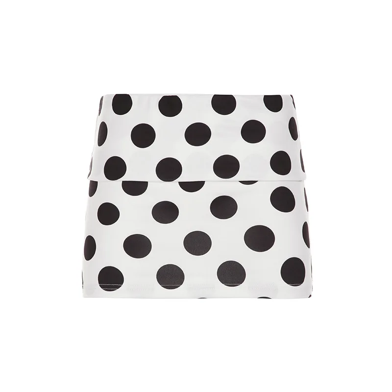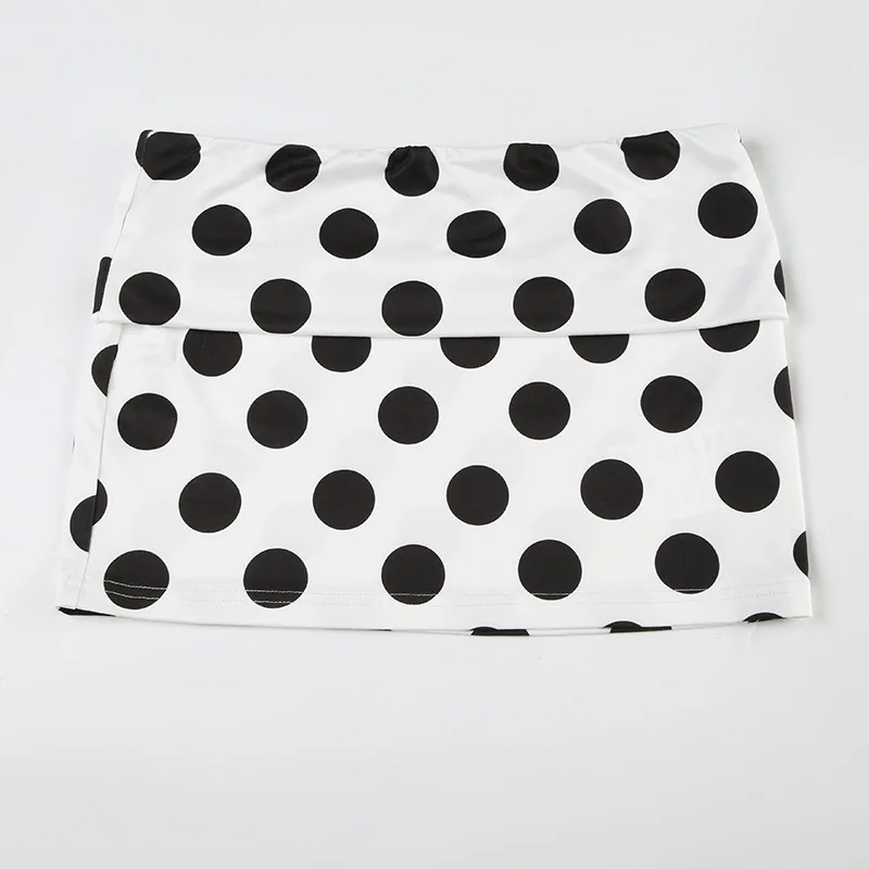 KYLETHOMASW - Polka Dot Short Skirt Set with Wide Shoulders, Narrow Waist Strap Design, T-shirt Flip Up, Low Waist, Hip Wrapping Skirt