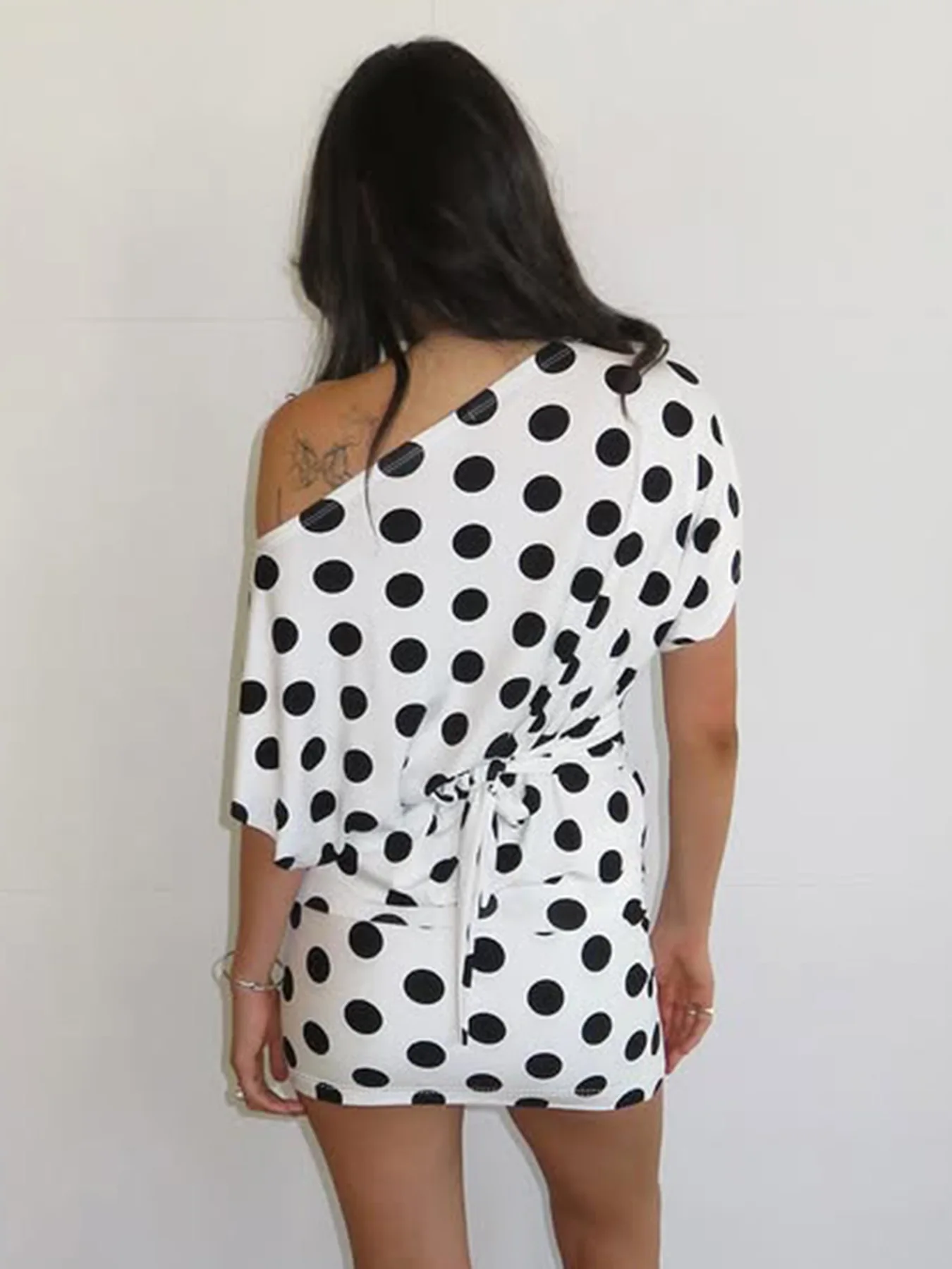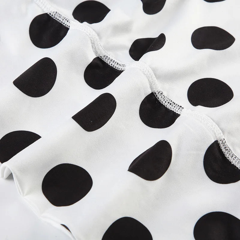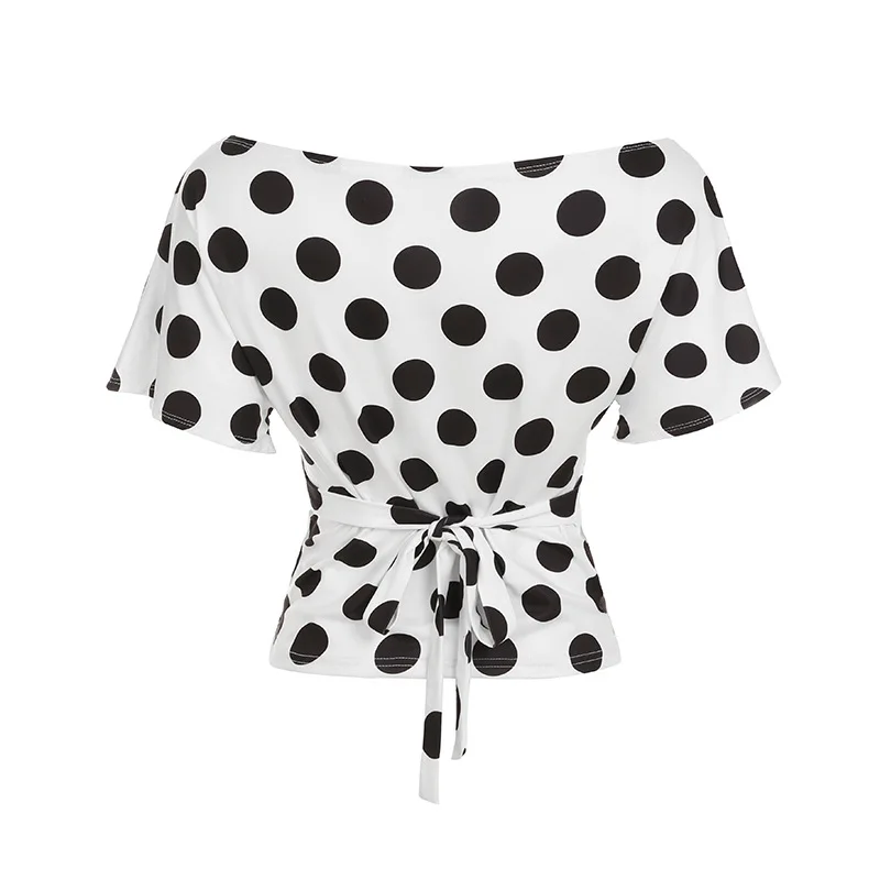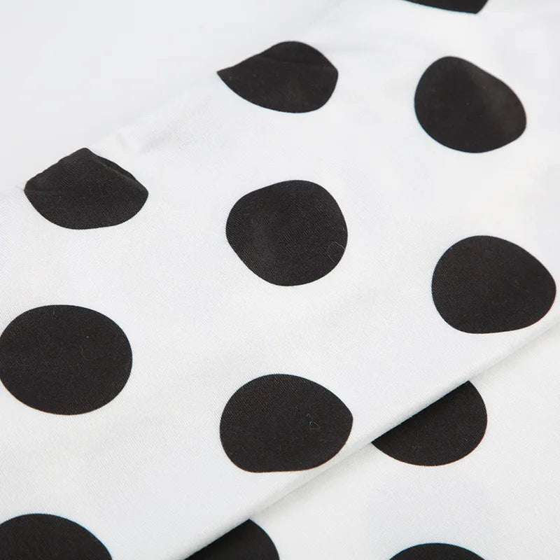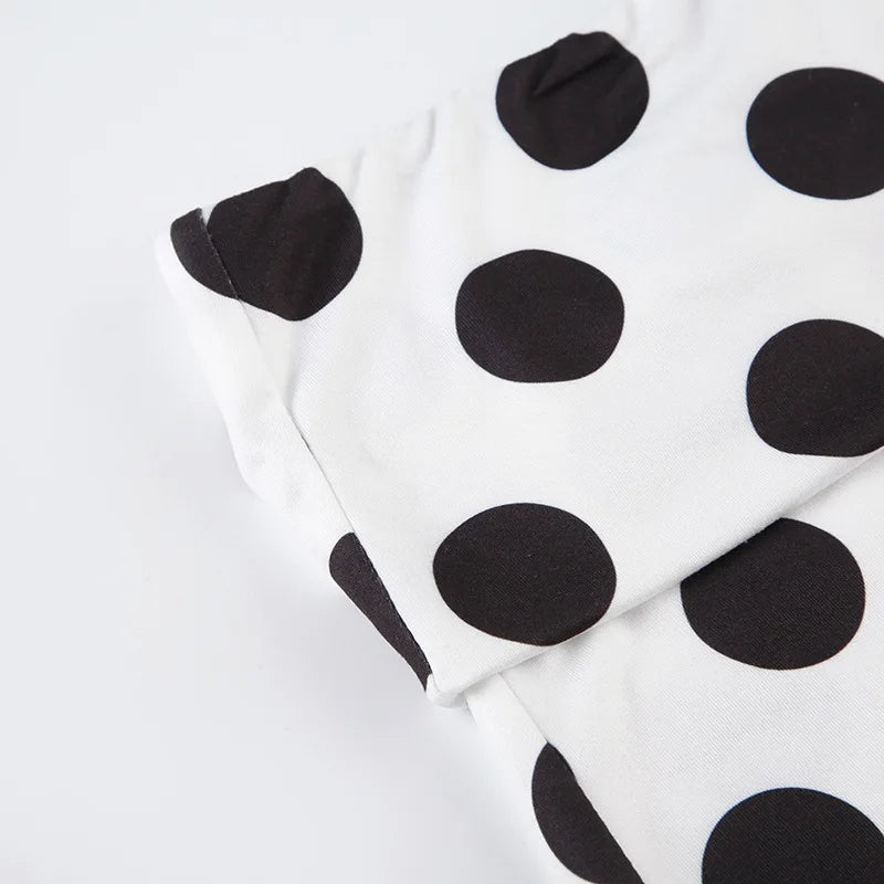 KYLETHOMASW - Polka Dot Short Skirt Set with Wide Shoulders, Narrow Waist Strap Design, T-shirt Flip Up, Low Waist, Hip Wrapping Skirt