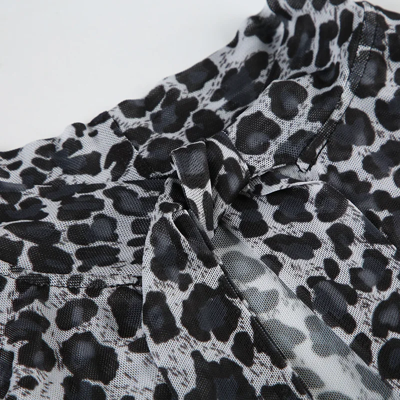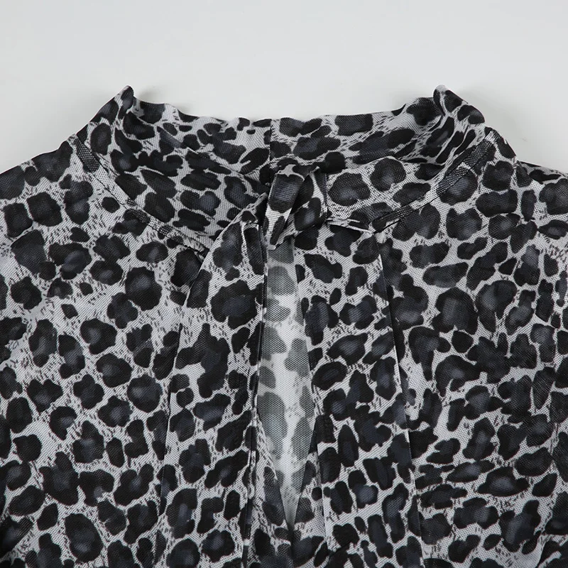 KYLETHOMASW  -  Printed irregular low cut scarf tie T-shirt pure desire style thin mesh top with breasted mesh