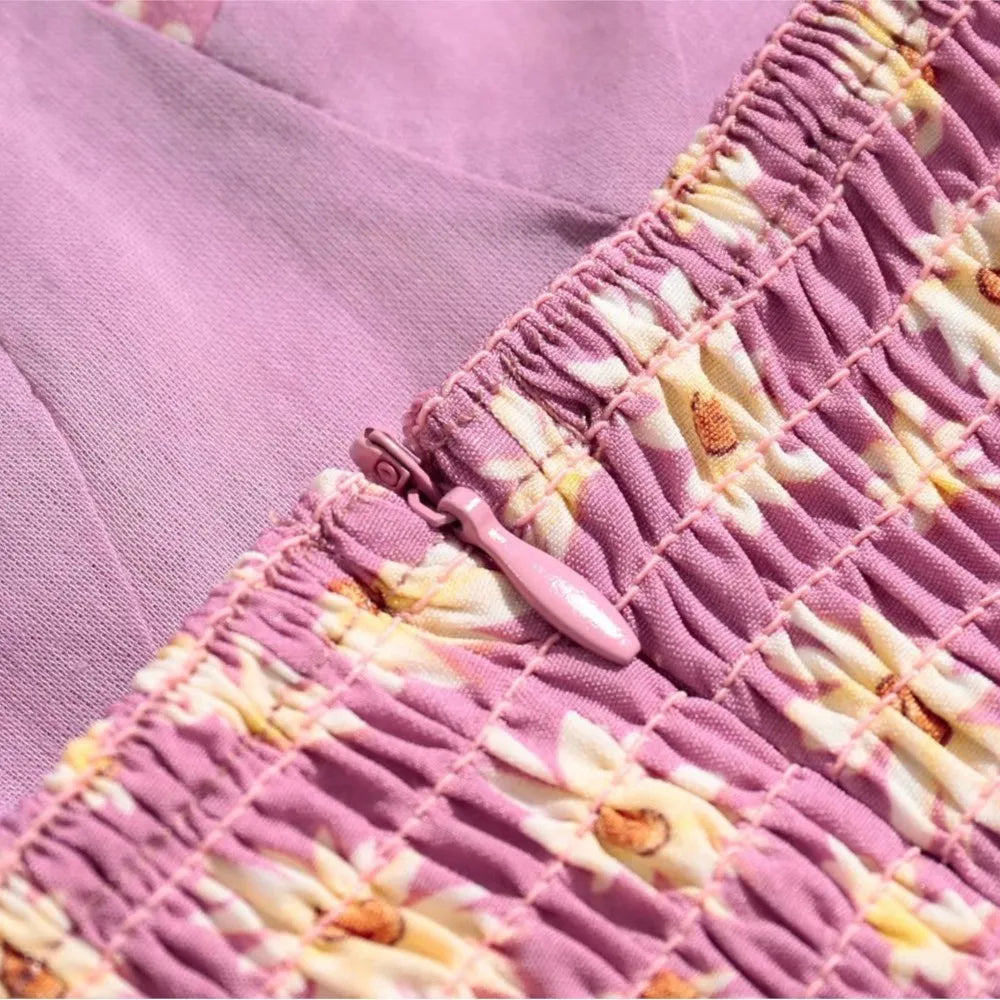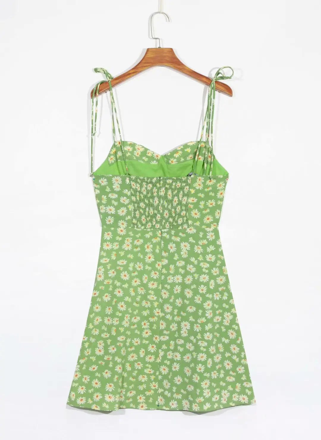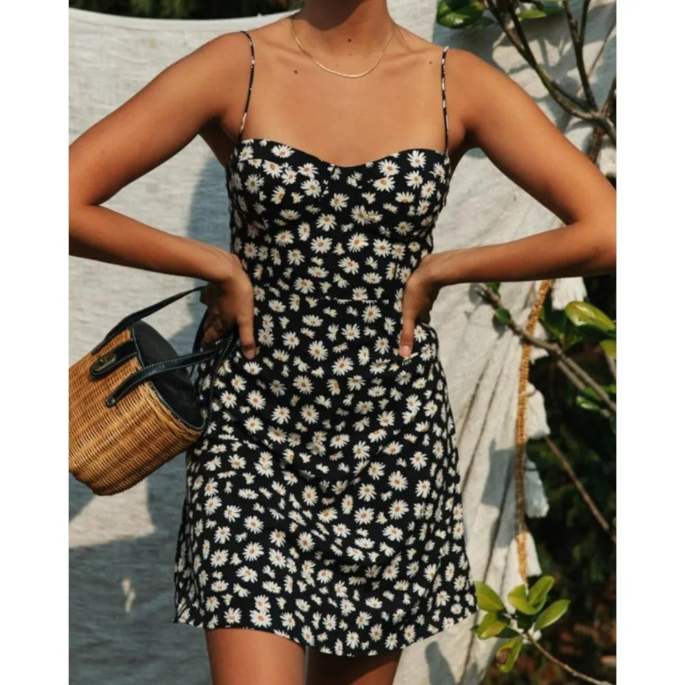 KYLETHOMASW - Retro Daisy Flower Print Bandage Spaghetti Strap Dress Retro Sexy Women Slim Bow Lacing Up Sling Dresses Holiday Robe