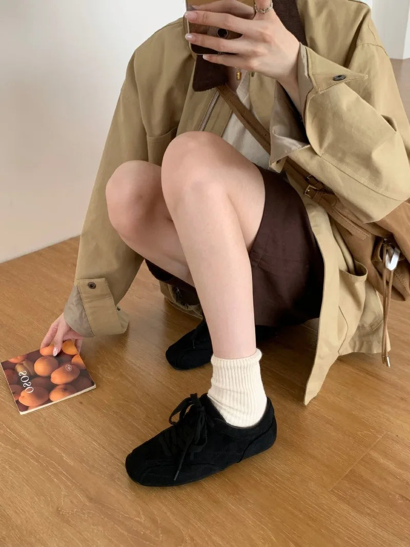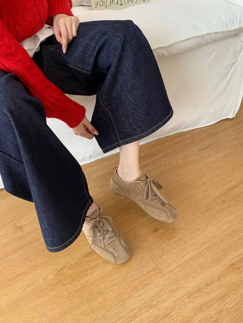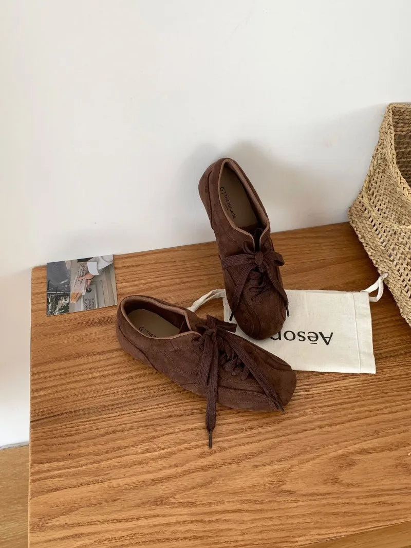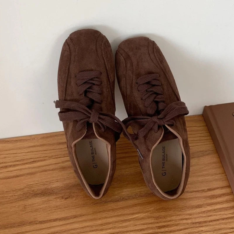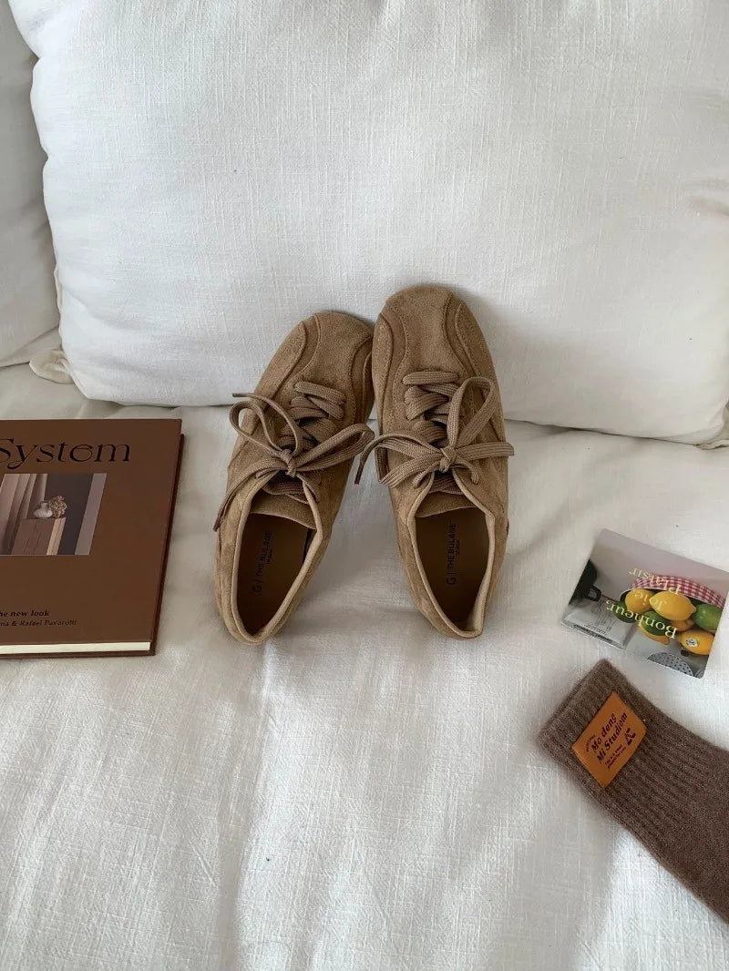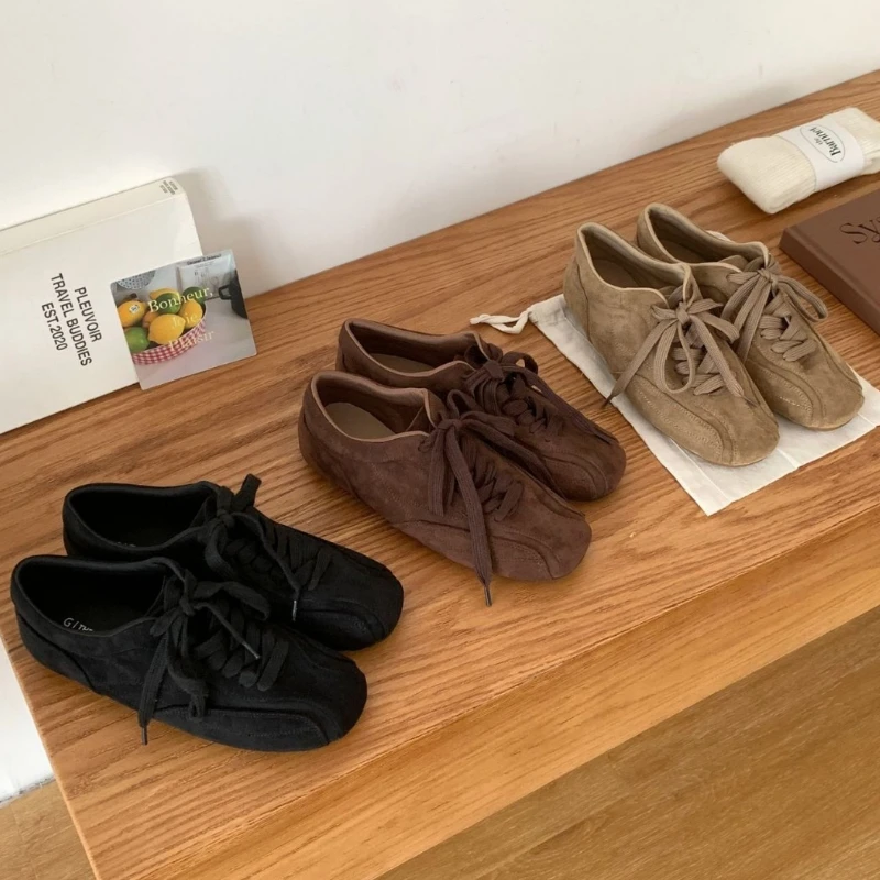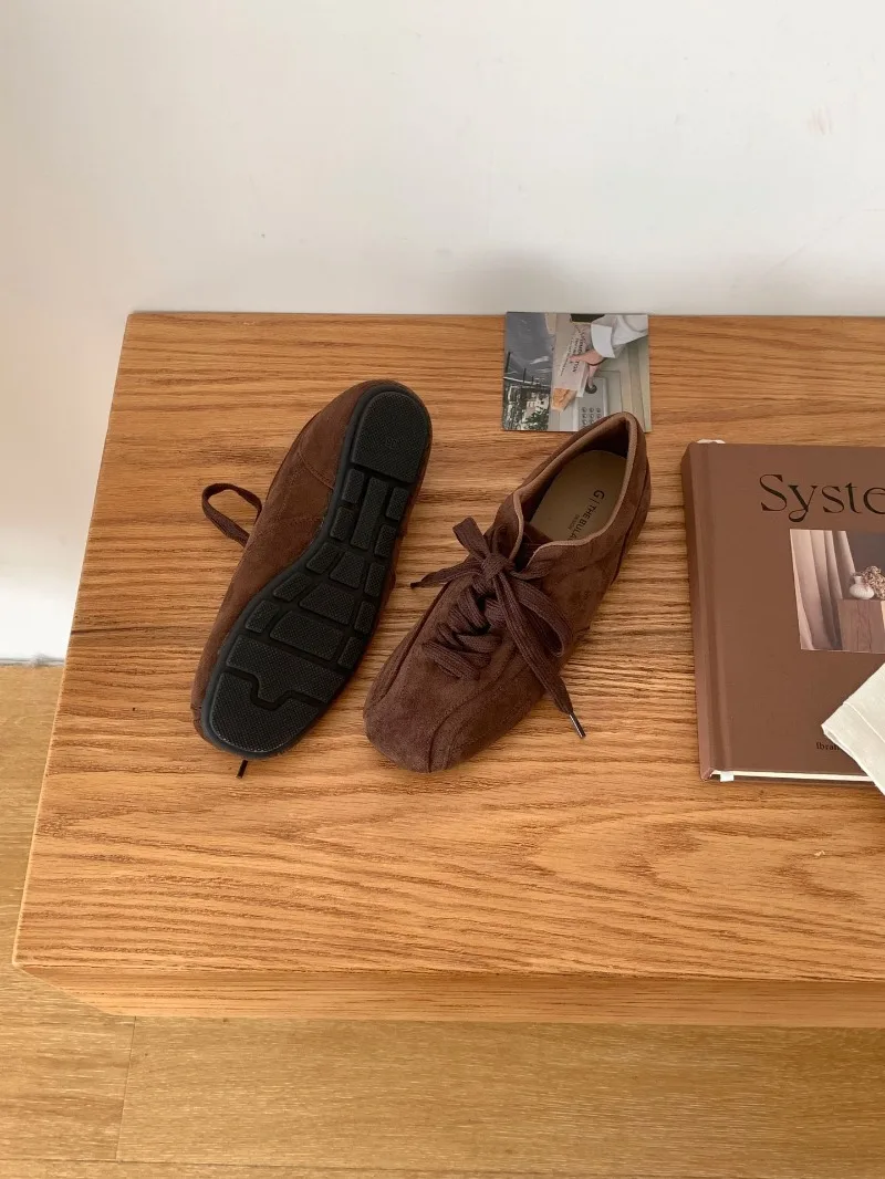 KYLETHOMASW - Retro Lace Up Flat Shoes Women Coyz Square Toe Designer Ballet Sneakers Ladies Lightweight Non-Slip Outdoor Walking Casual Shoes