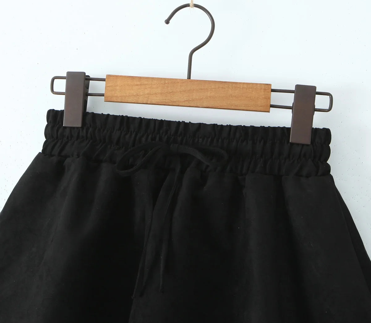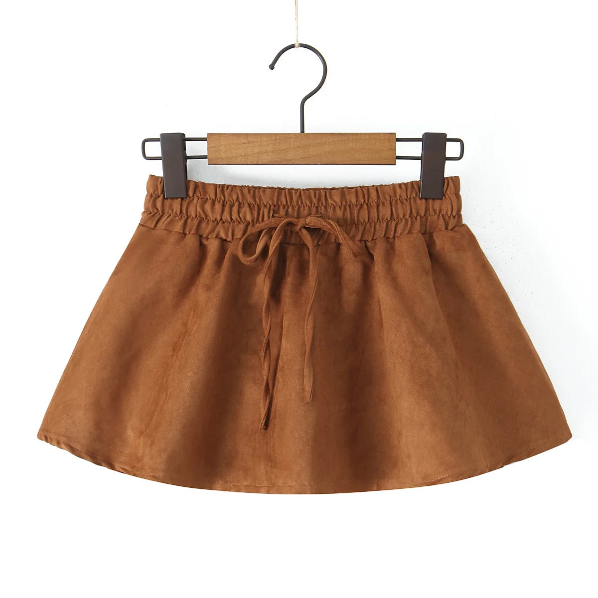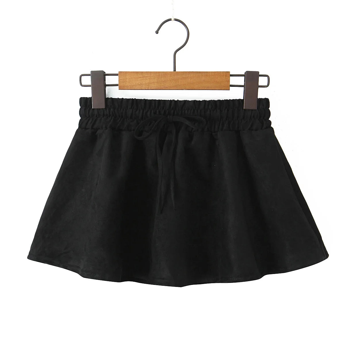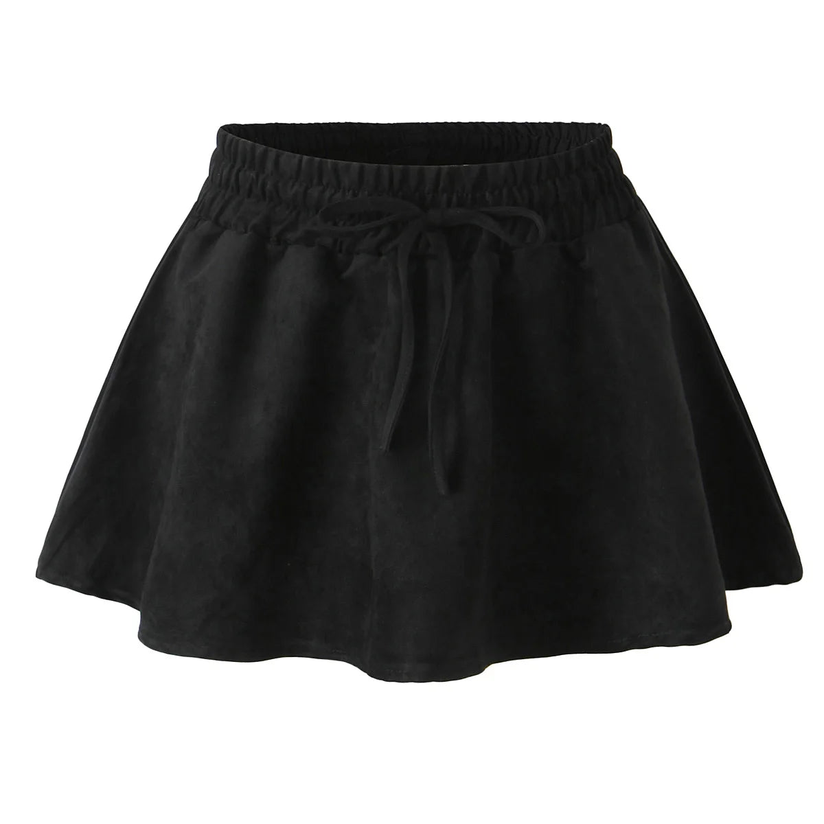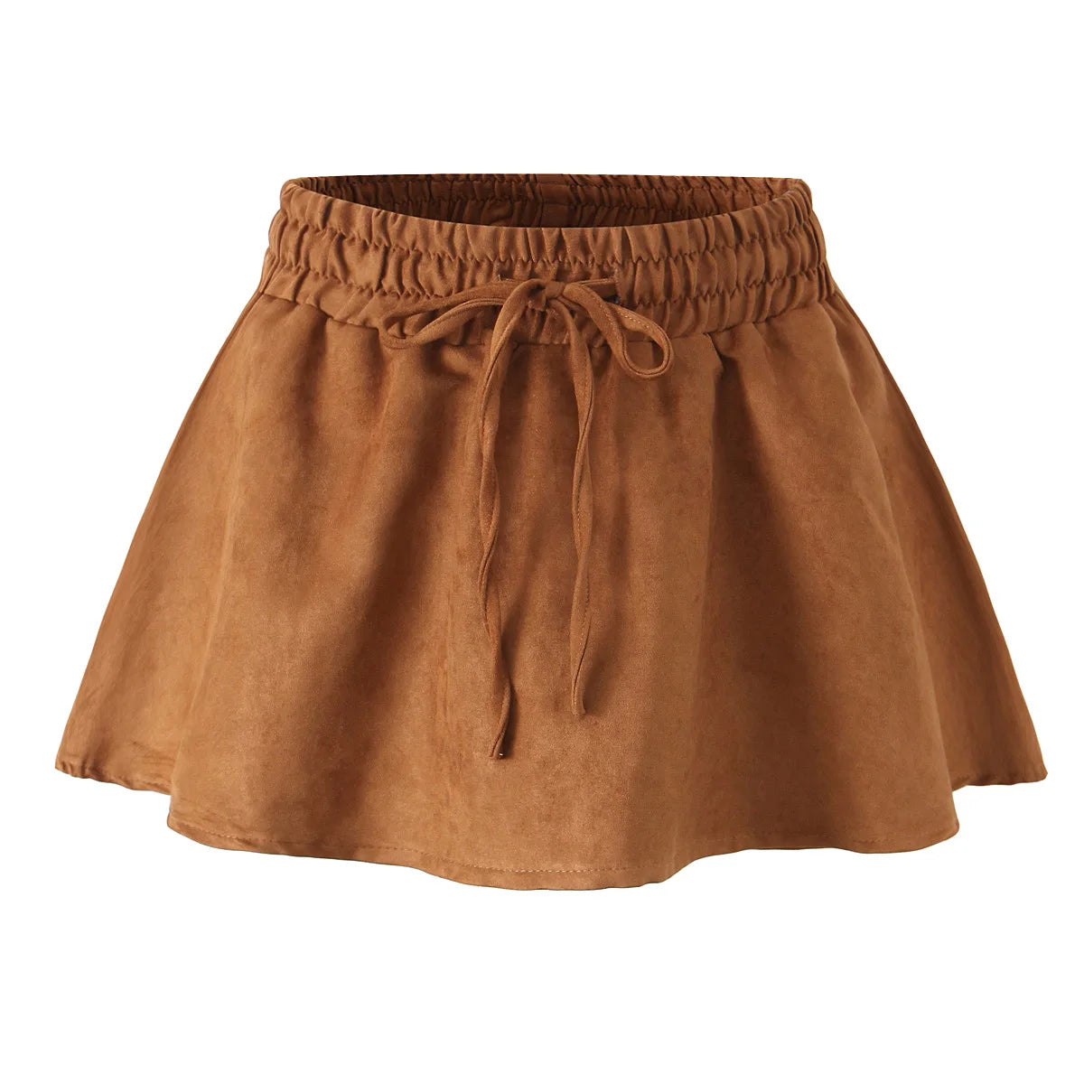 KYLETHOMASW - Retro Lacing Up Bow Elastic Waist Suede Faux Leather Mini Cake Skirt Women Ball Gown Swing Skater Party Femme Camel Black
