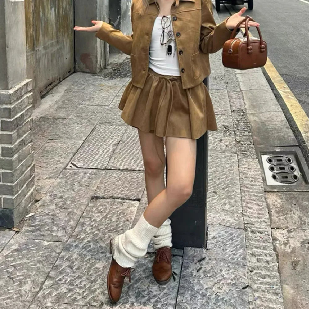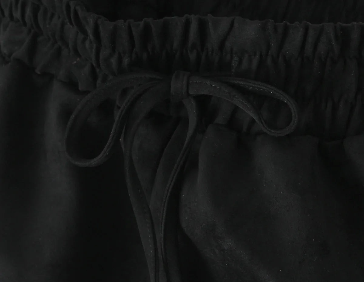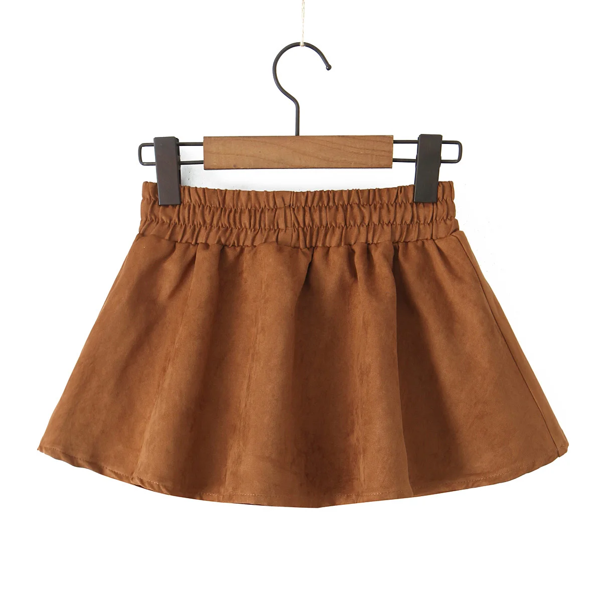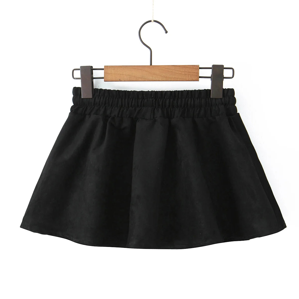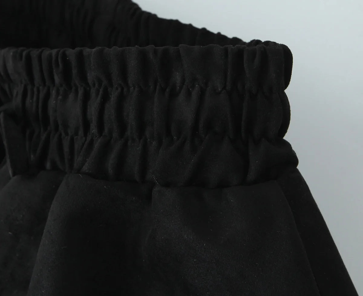 KYLETHOMASW - Retro Lacing Up Bow Elastic Waist Suede Faux Leather Mini Cake Skirt Women Ball Gown Swing Skater Party Femme Camel Black