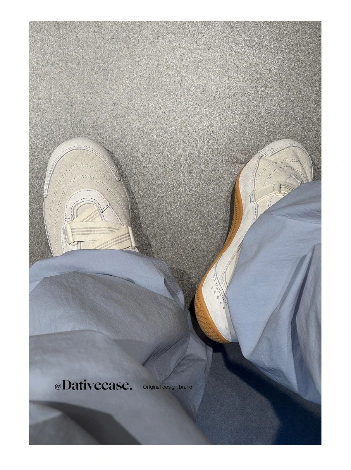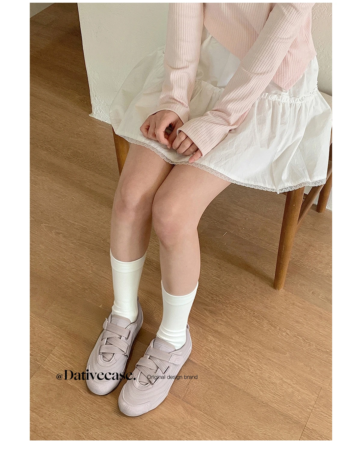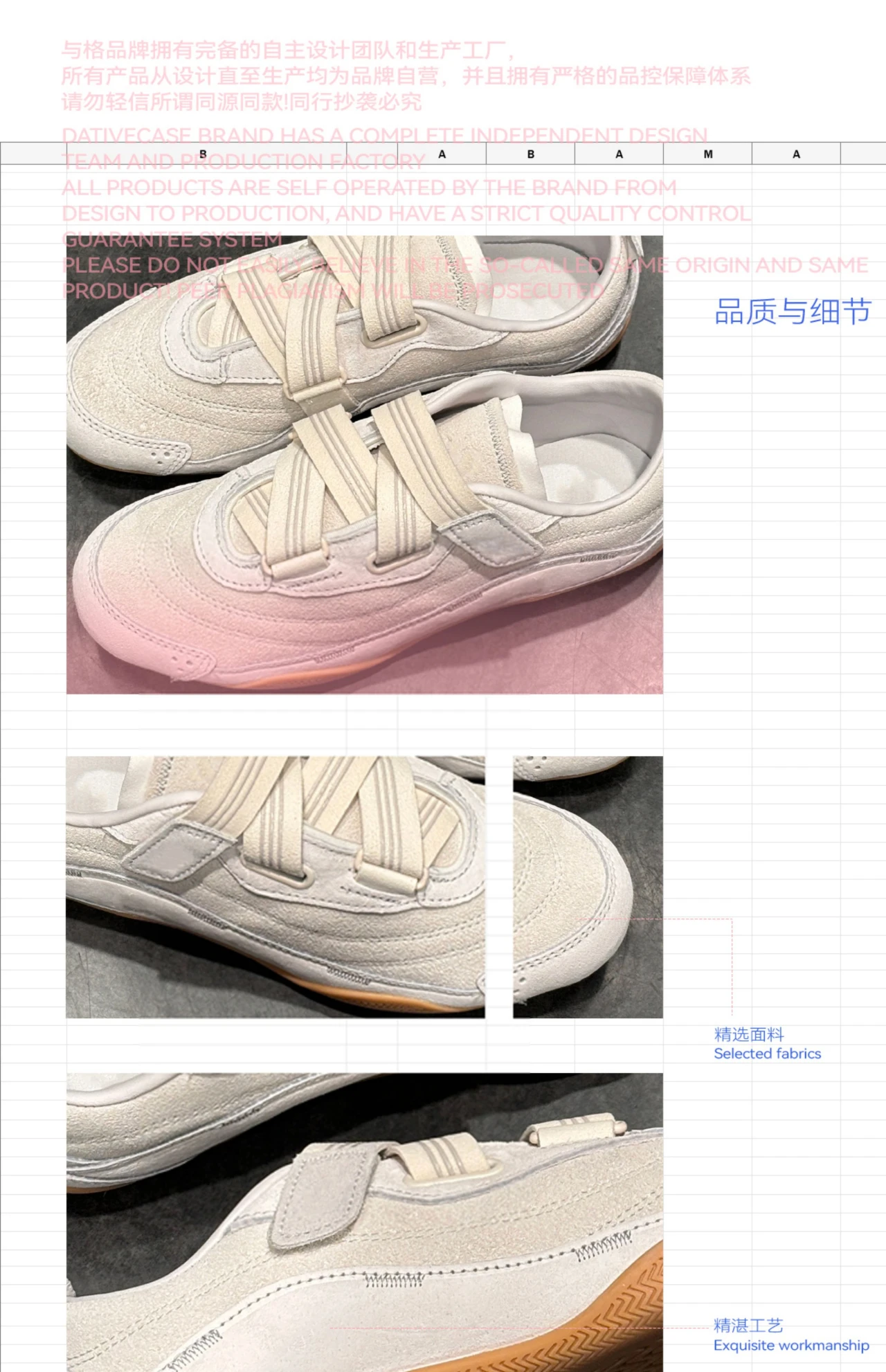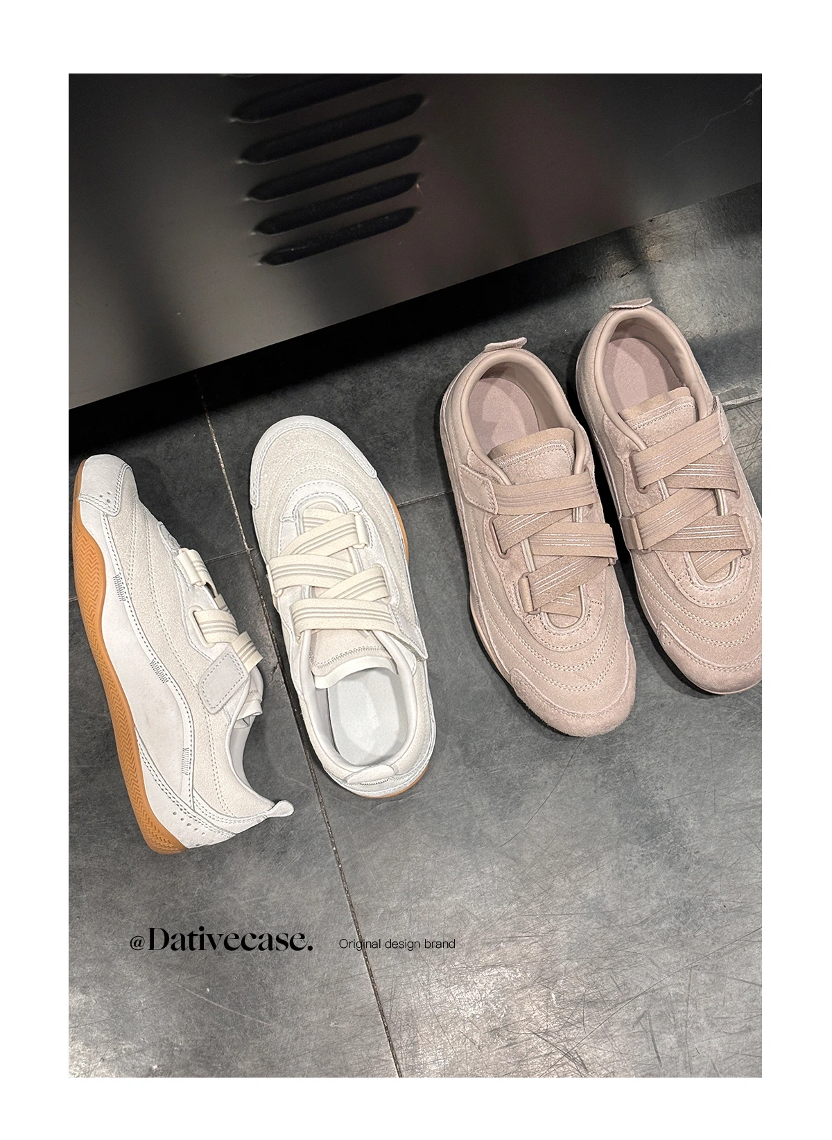 KYLETHOMASW - Retro Leather Version Ballet Style Sport Shoes French Magic Tape Casual Shoes for Women Rubber Upper Net Shoes