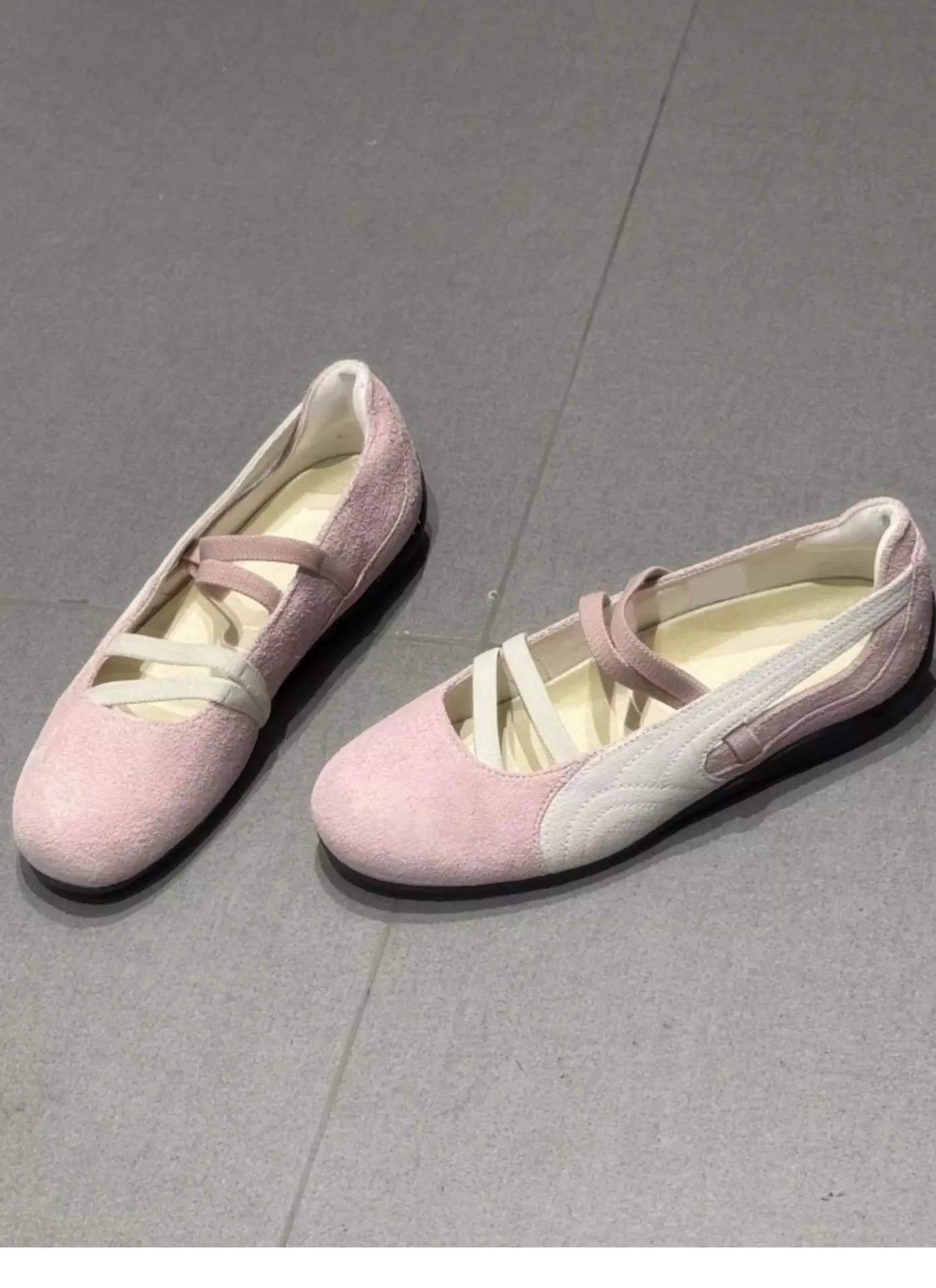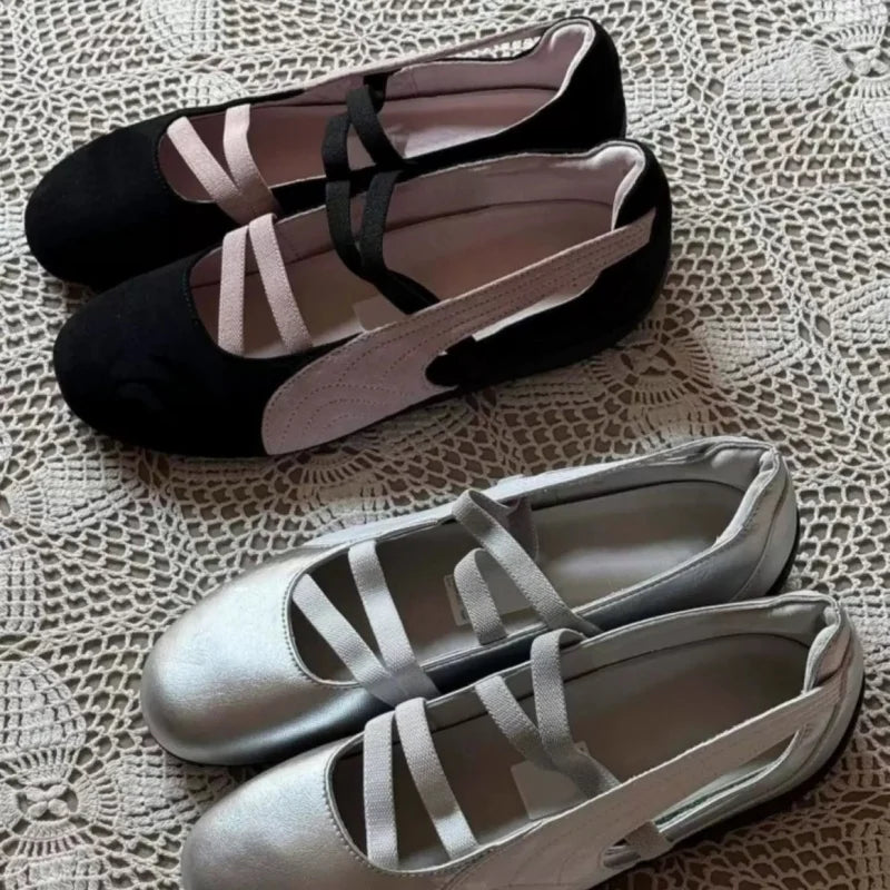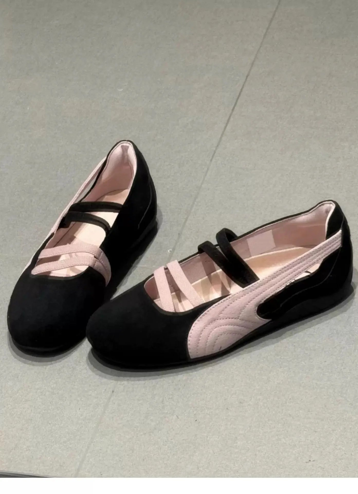 KYLETHOMASW - Retro multi-color sports shoes, ballet shoes with elastic bands, round toe, flat bottom, shallow opening Mary Jane style women's