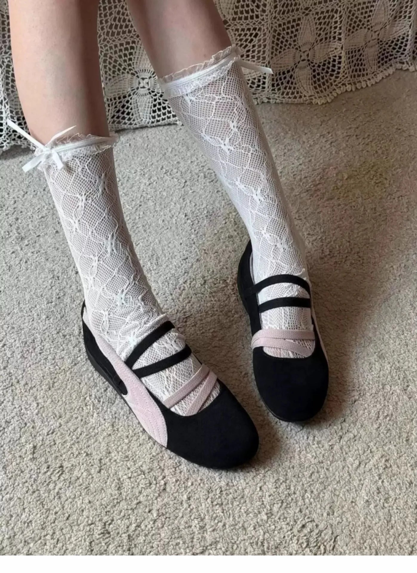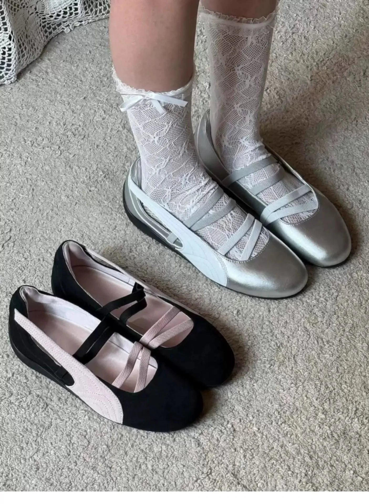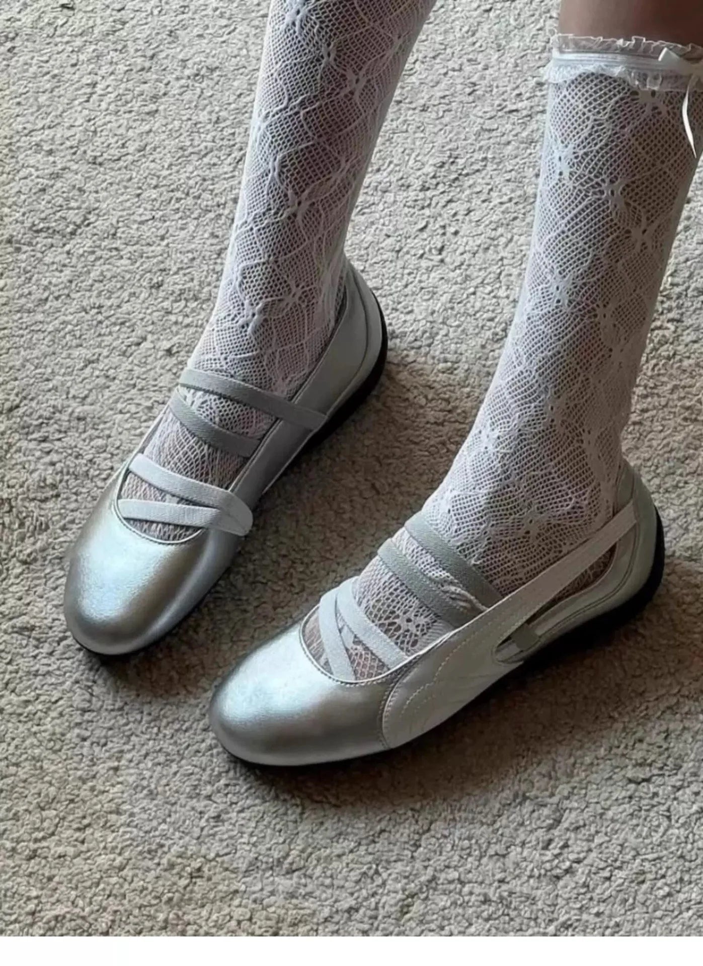 KYLETHOMASW - Retro multi-color sports shoes, ballet shoes with elastic bands, round toe, flat bottom, shallow opening Mary Jane style women's