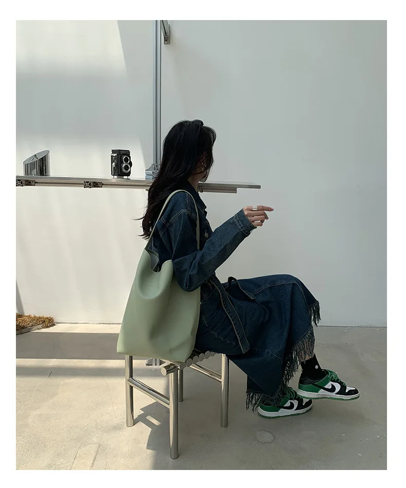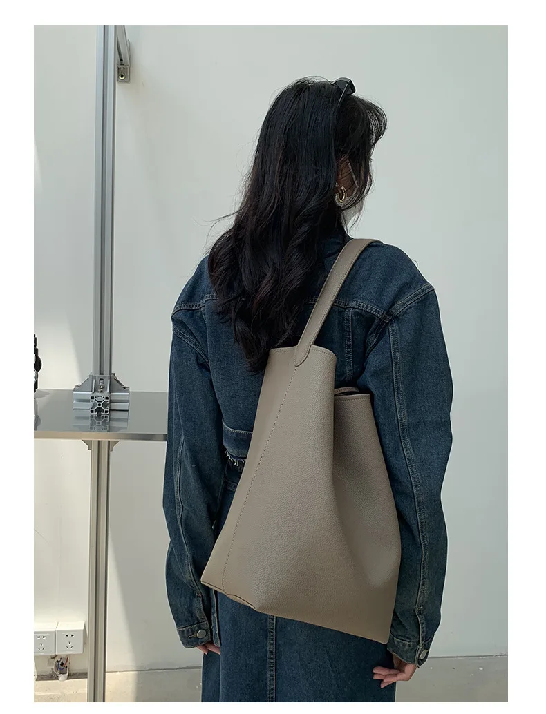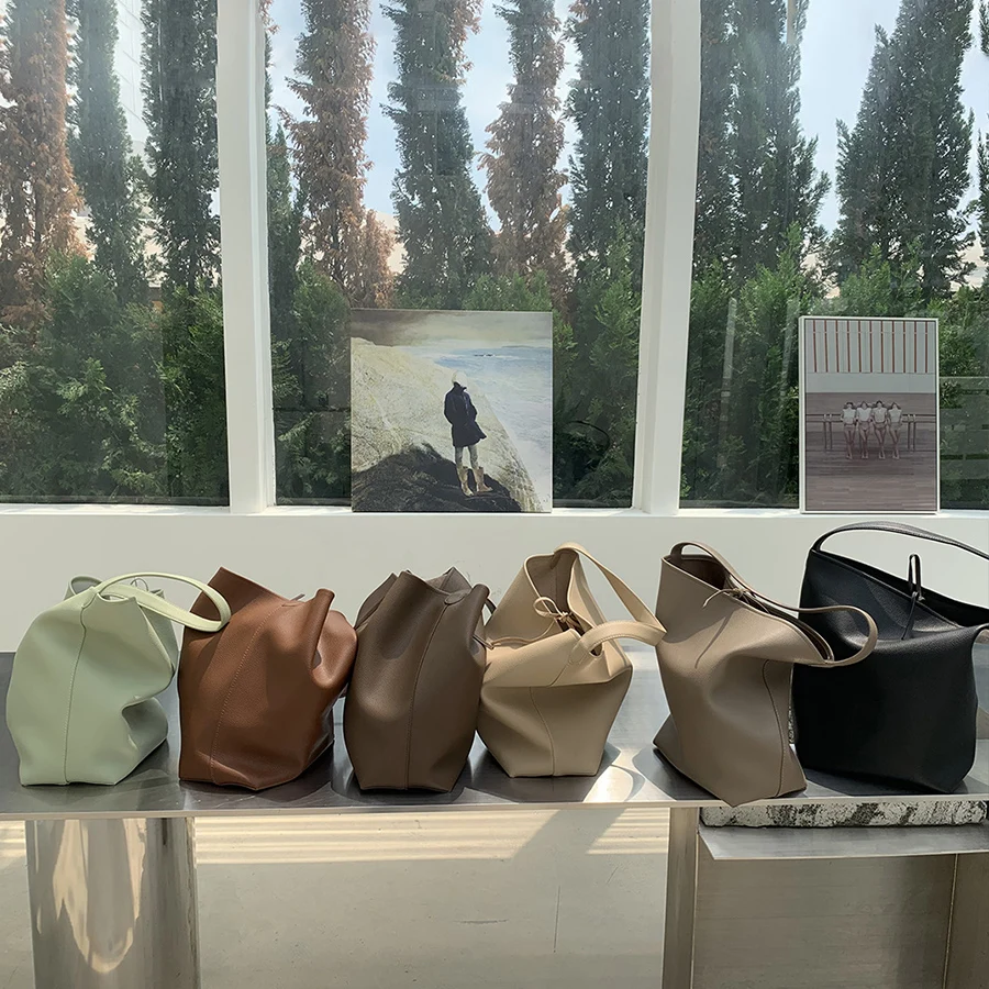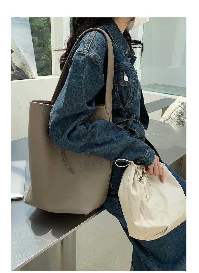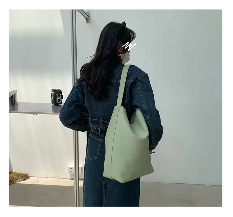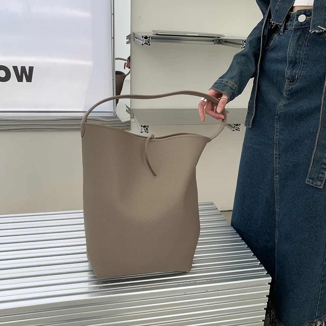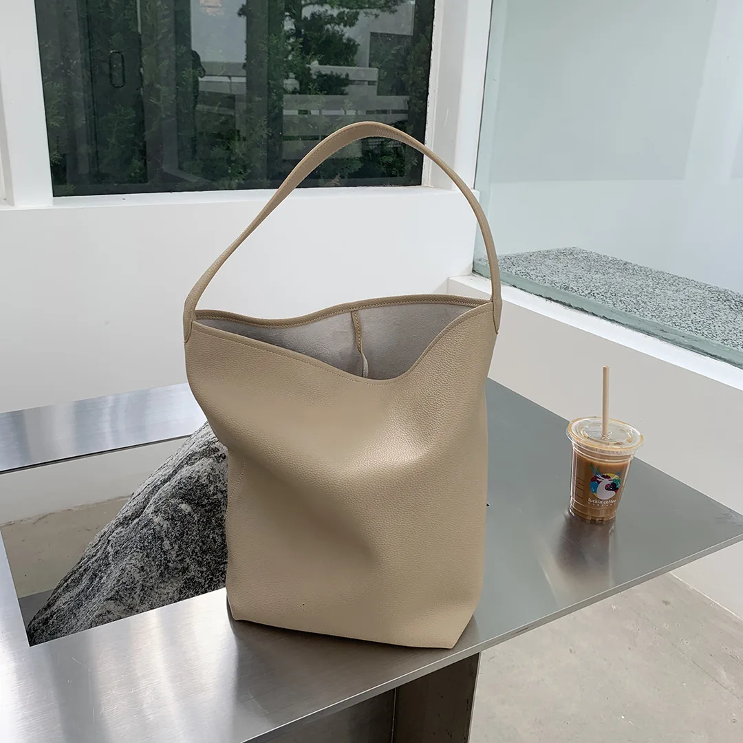 Kylethomasw Retro simple shoulder bags large capacity bucket underarm bag pu leather women's commuter tote bag fashion ladies purse handbags