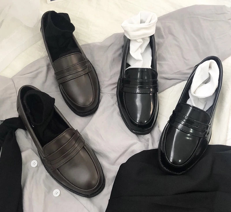 KYLETHOMASW - Retro Style Japanese Student Shoes Girl Lolita JK Uniform Shoes Women PU Leather Block Heels Loafers Shoes
