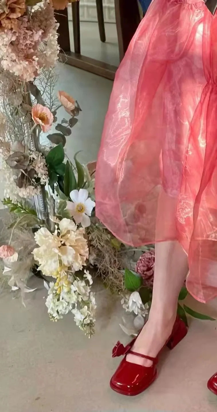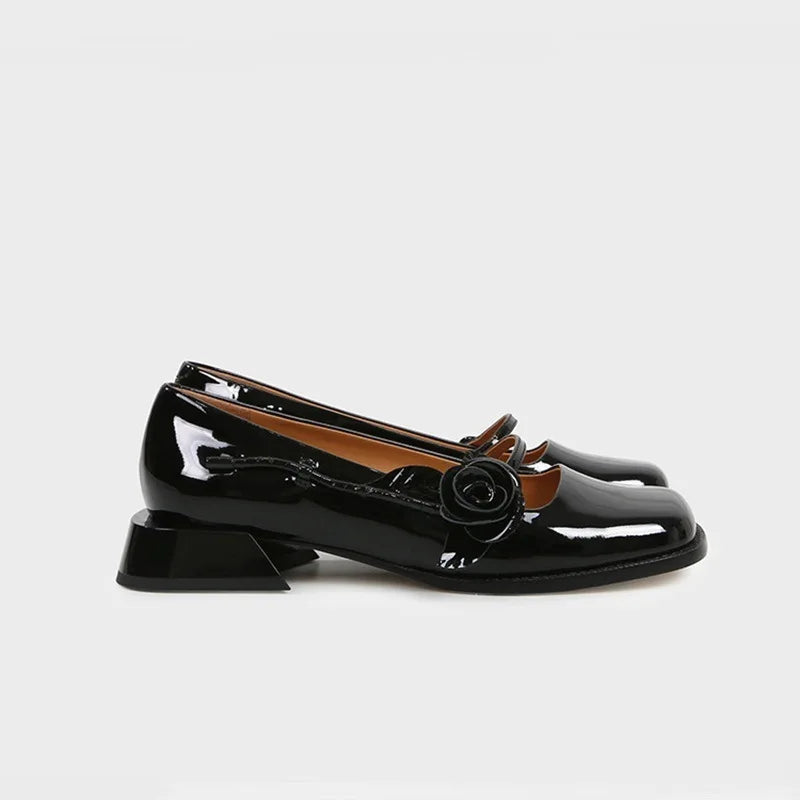 KYLETHOMASW  -  rose flower patent leather shoes woman brand designer sqaure toe pumps female thick heel button strap mary janes talons hauts