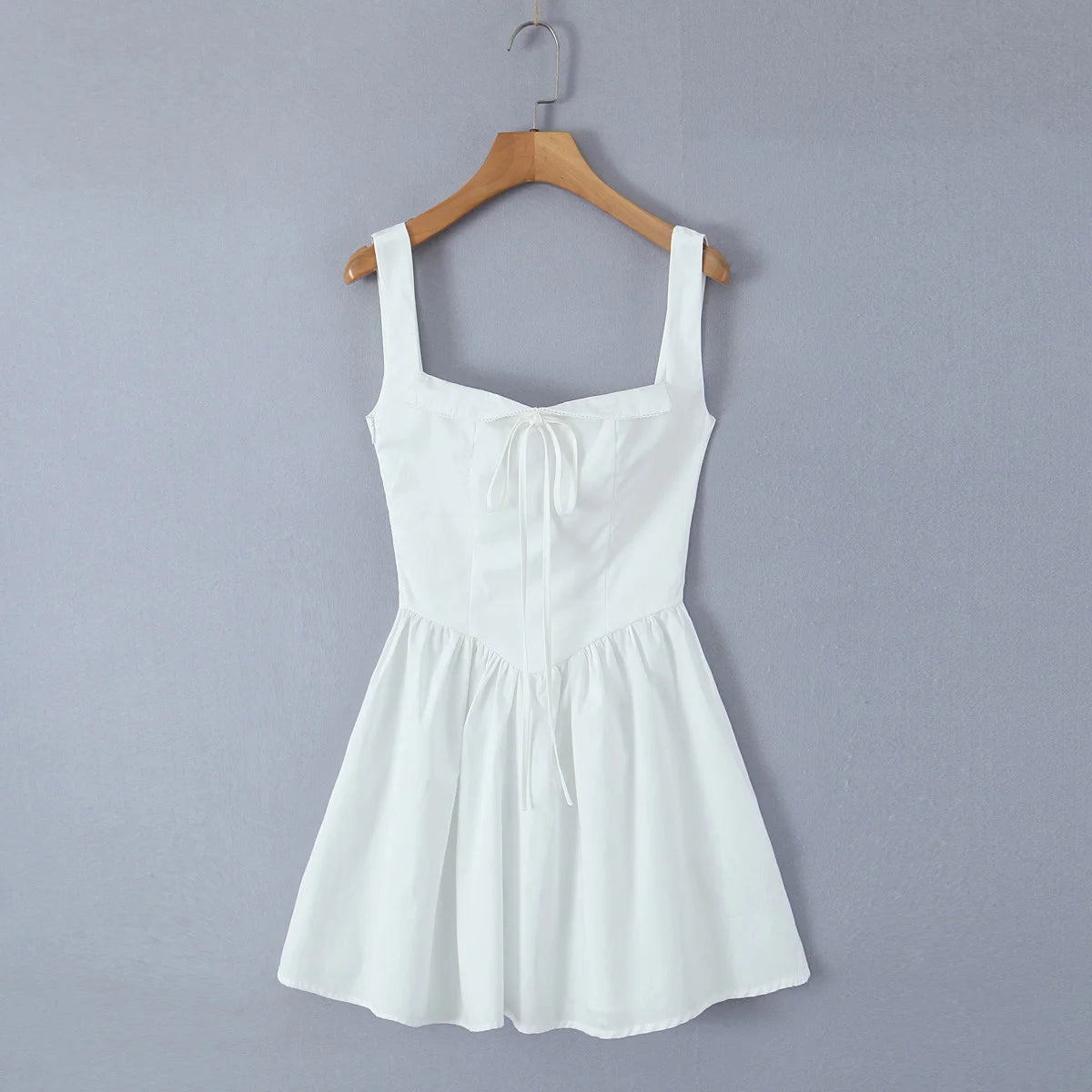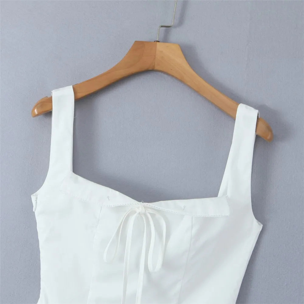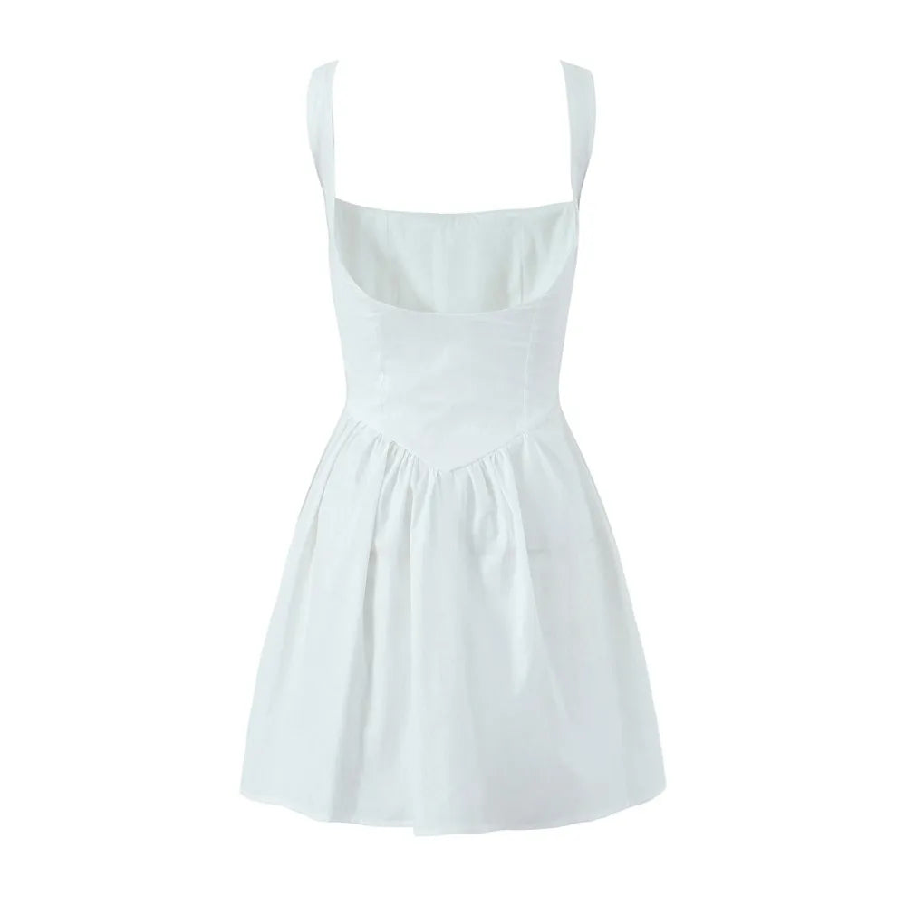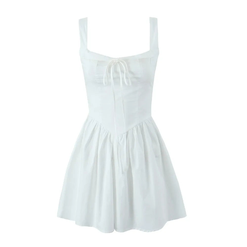 KYLETHOMASW - Sexy Bow Square Collar Corset style Mini Sling Dress Women Deep Backless Party Skater Low Waist Ruched A-line Sling Robe
