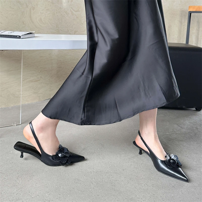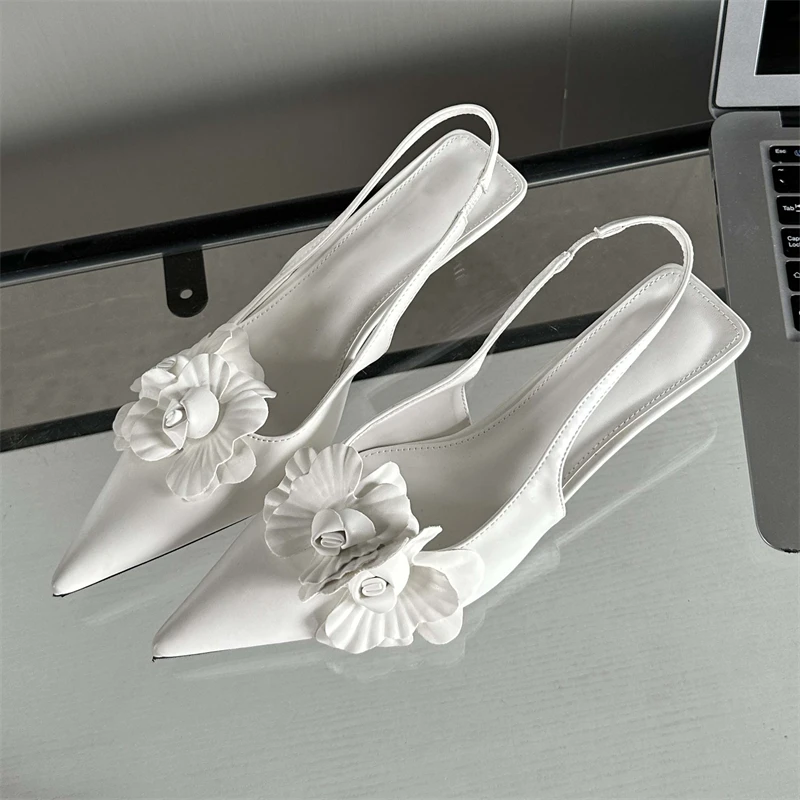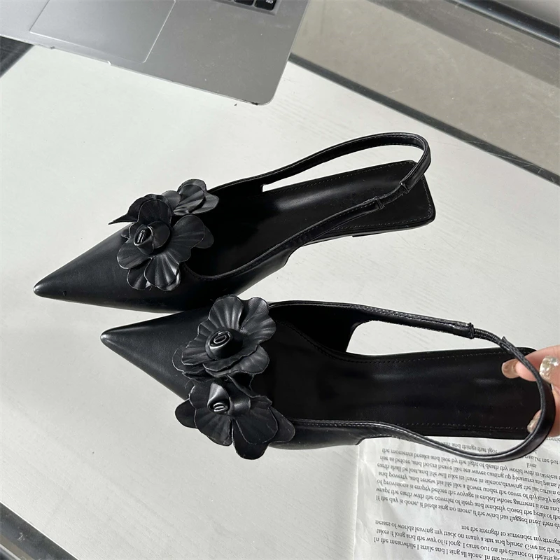 KYLETHOMASW - Sexy Flower Pointed Toe Thin Low Heels Women Pumps Elegant Wedding Slingback Shoes Mules Zapatos De Mujer