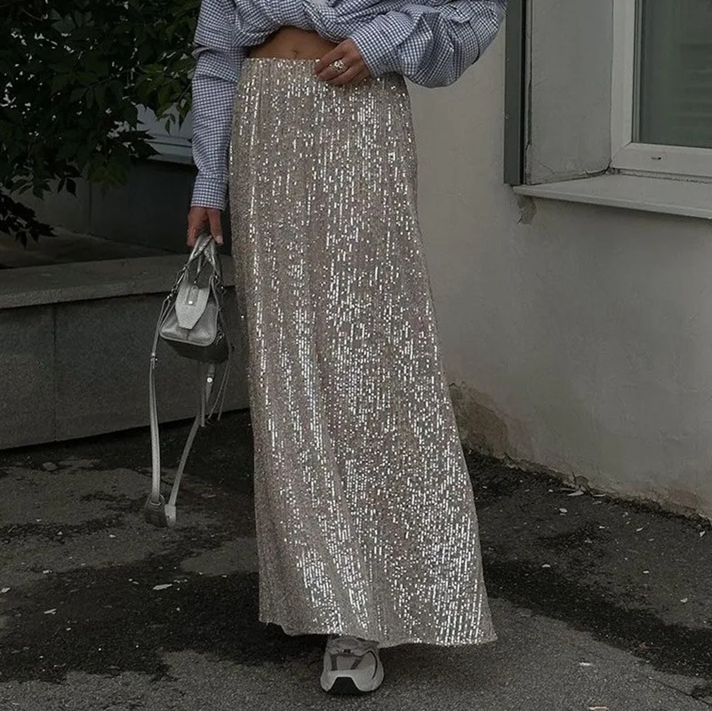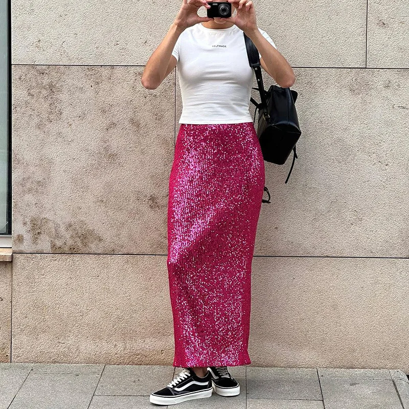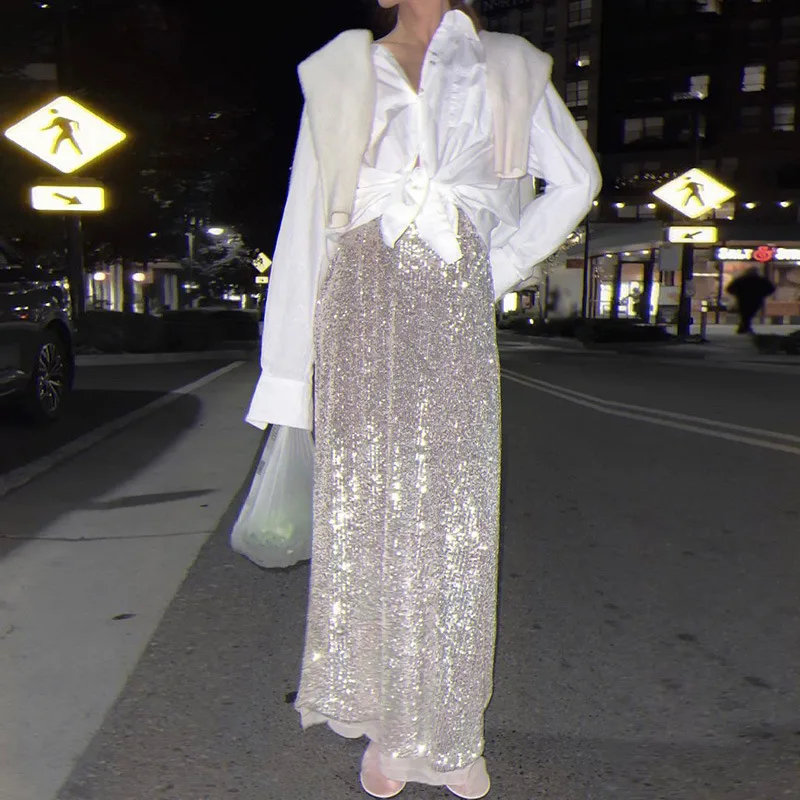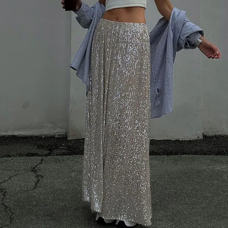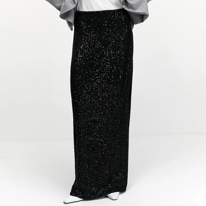Kylethomasw - Sexy Glitter Sequin Sharkly Long Skirts for Women Spring High Waist Straight Office Skirt Autumn Elegant Gown Party Skirts Mujer