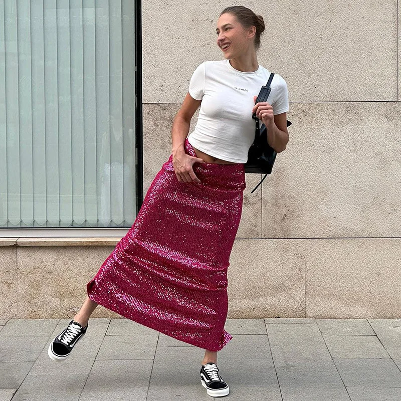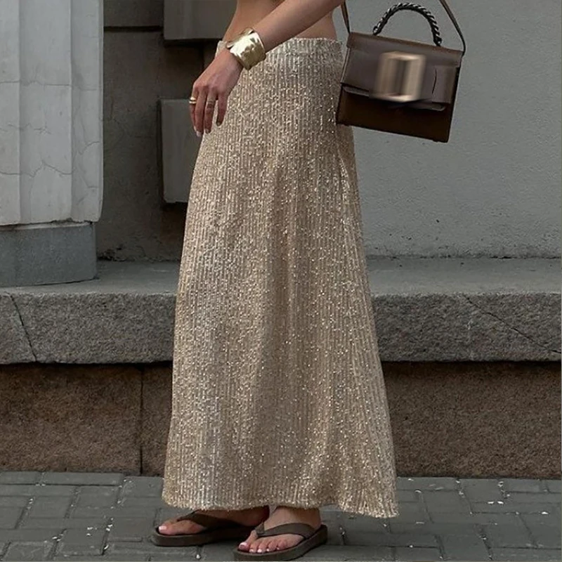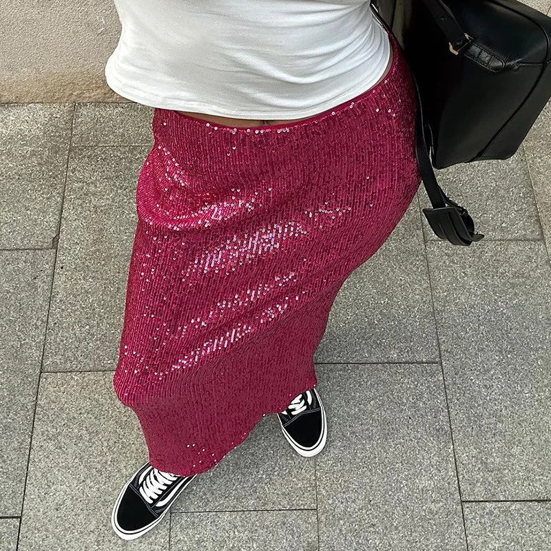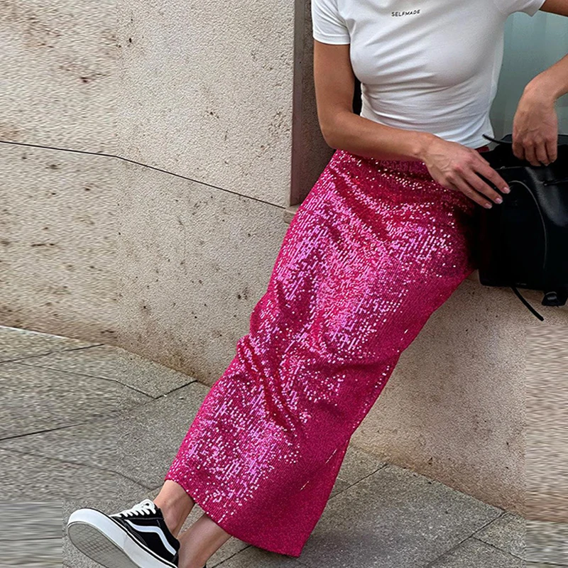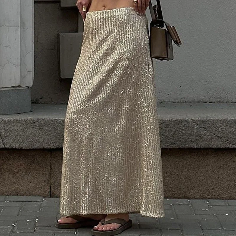 Kylethomasw - Sexy Glitter Sequin Sharkly Long Skirts for Women Spring High Waist Straight Office Skirt Autumn Elegant Gown Party Skirts Mujer