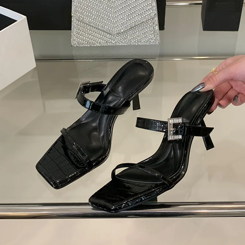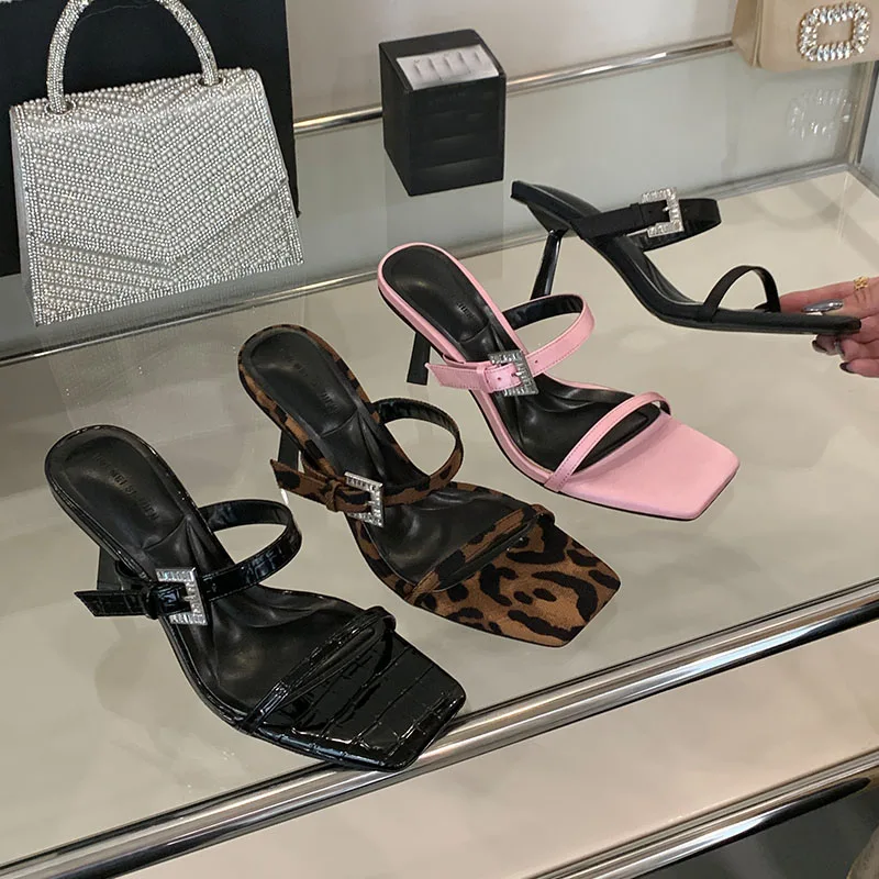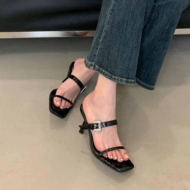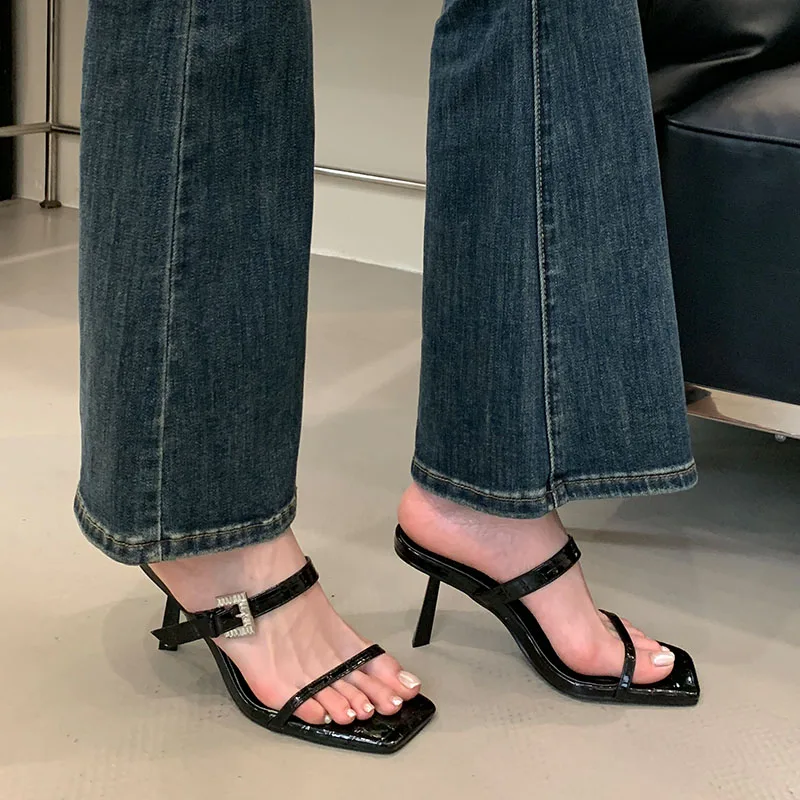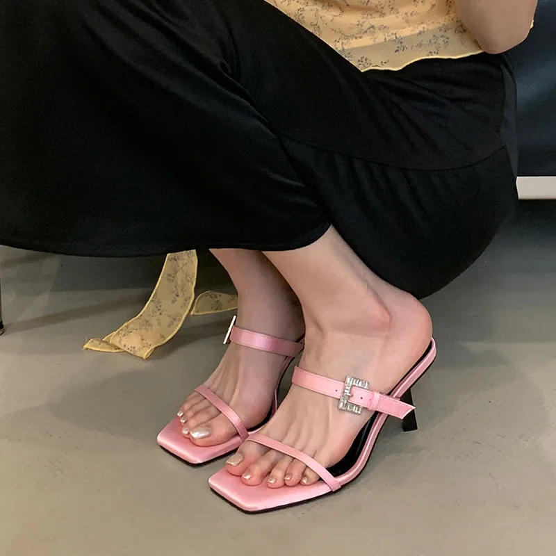 KYLETHOMASW - Sexy Ladies High Heels Sandals Shoes Female Slip On Footwear Fashion Silk Women Thin Heels Sandals Shoes Slides Pumps