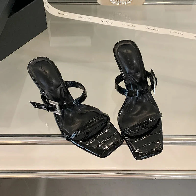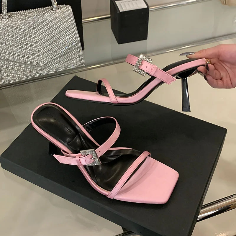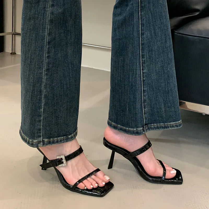 KYLETHOMASW  -  Sexy Ladies High Heels Sandals Shoes Female Slip On Footwear Fashion Silk Women Thin Heels Sandals Shoes Slides Pumps