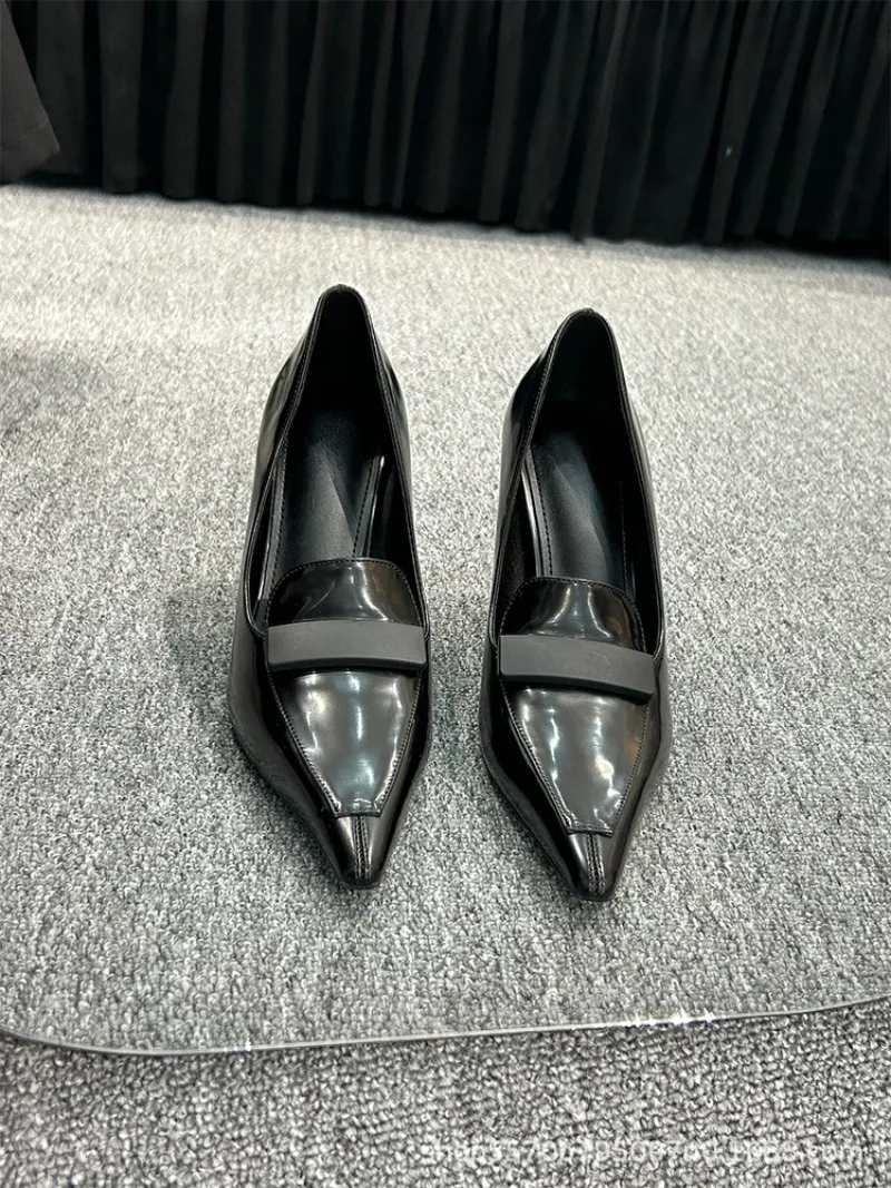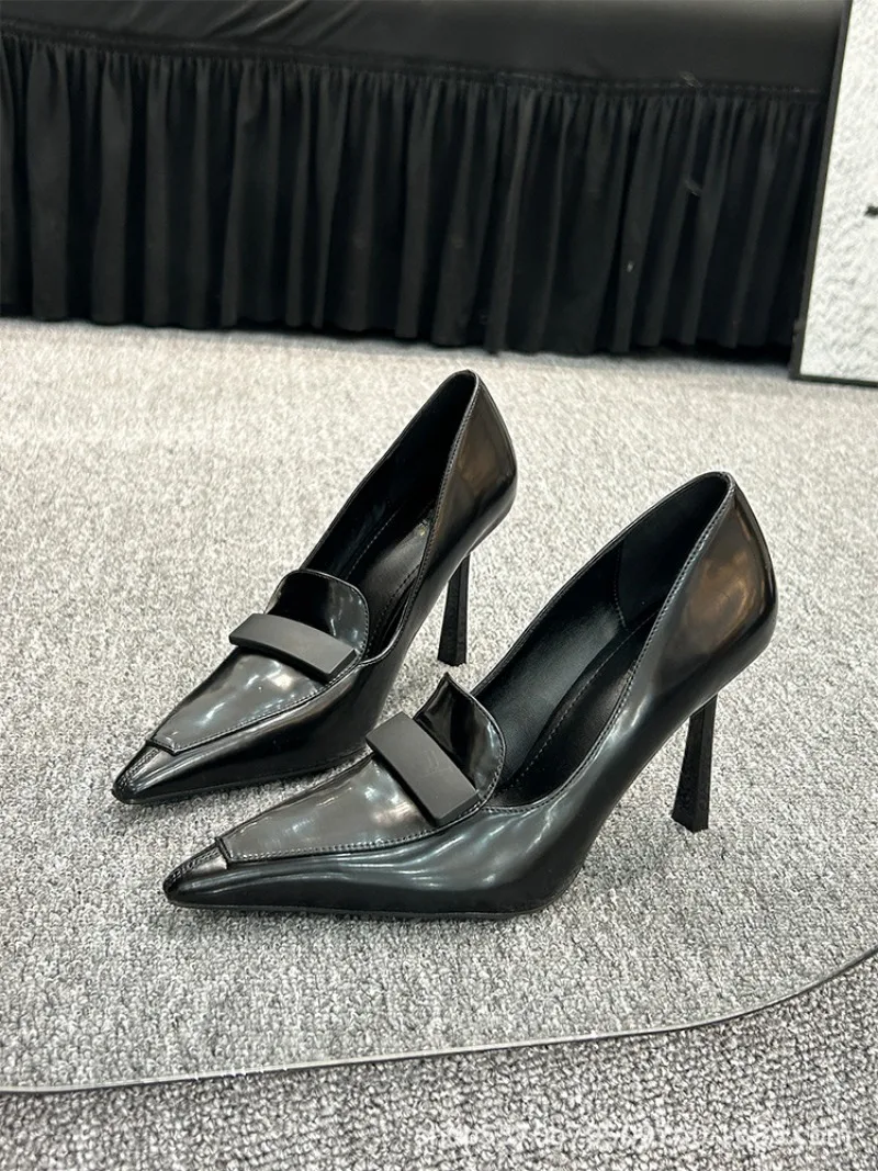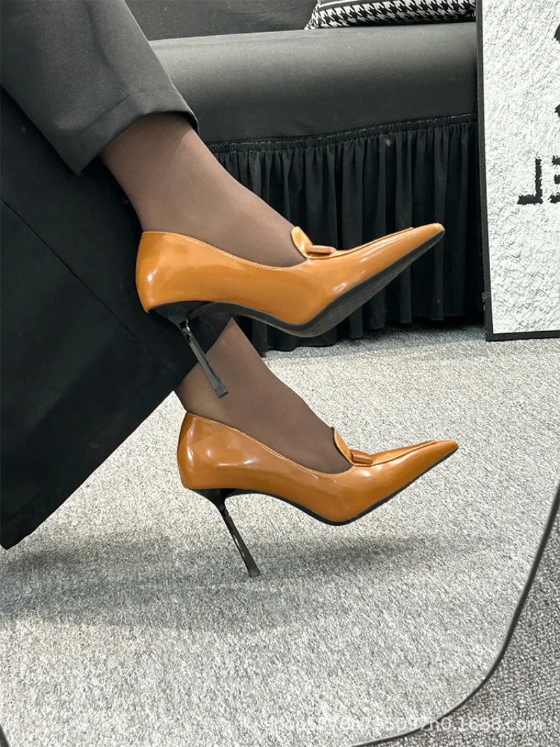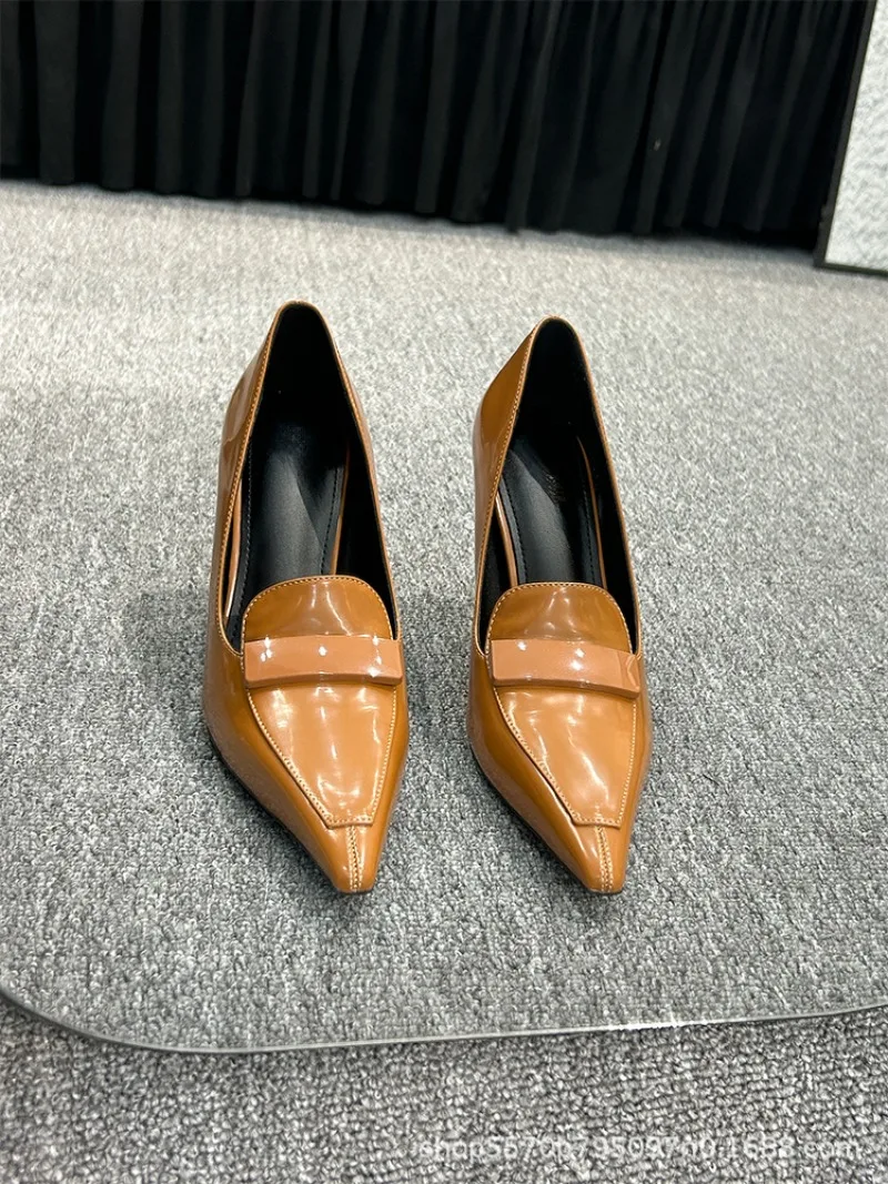 KYLETHOMASW  -  Sexy Pointed Toe Patent Leather High Heels Women Fashion Sewing Thin Heel Designer Shoes Elegant Comfort Commuting Office Shoes