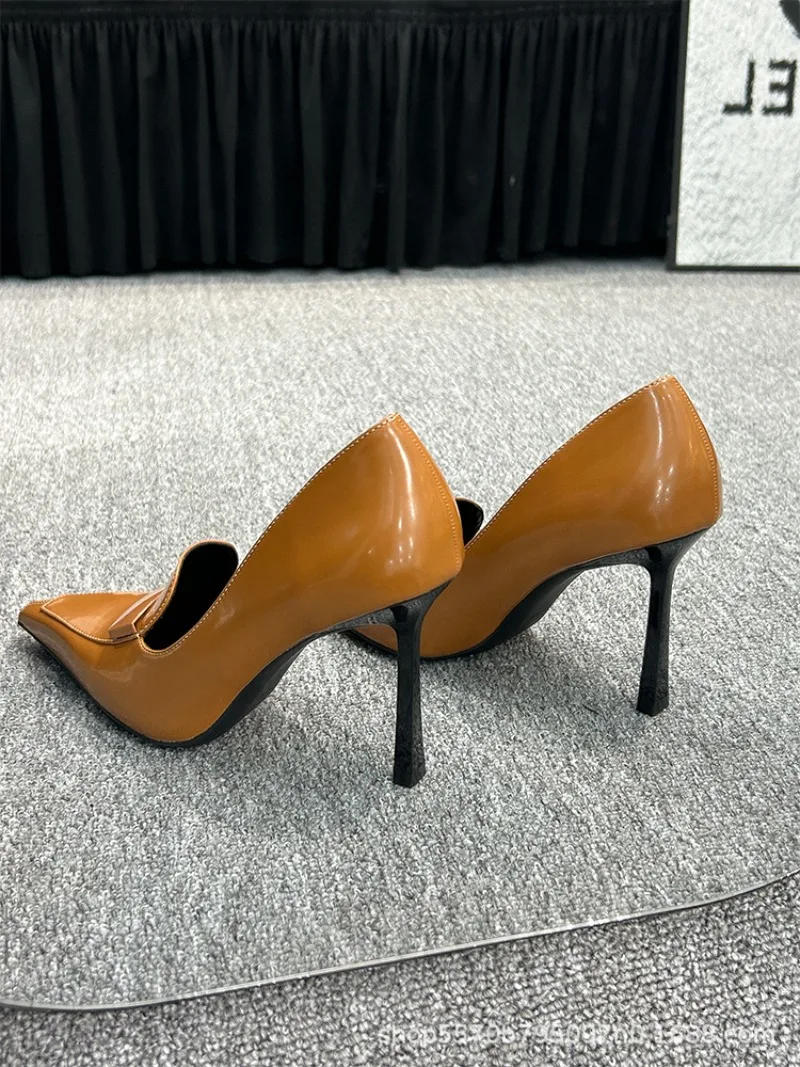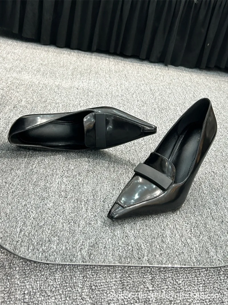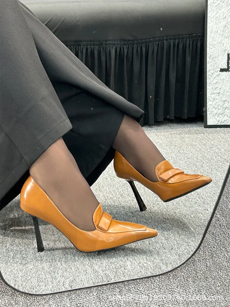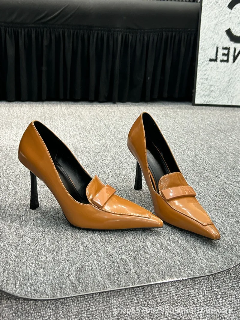 KYLETHOMASW  -  Sexy Pointed Toe Patent Leather High Heels Women Fashion Sewing Thin Heel Designer Shoes Elegant Comfort Commuting Office Shoes