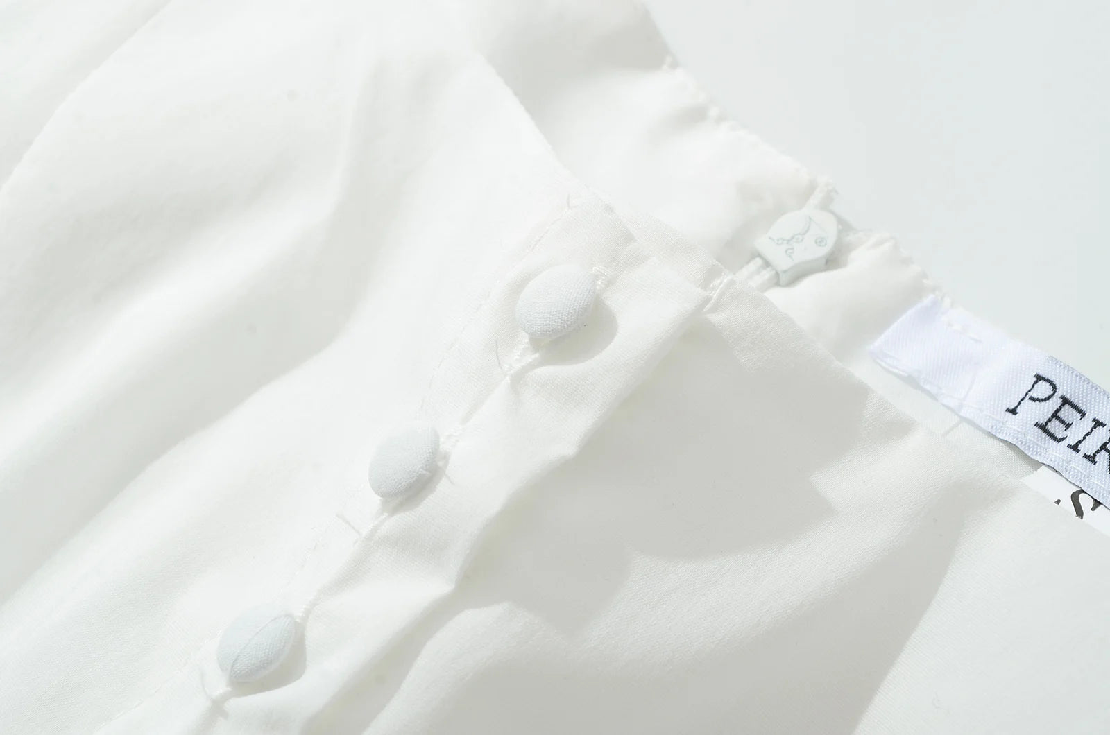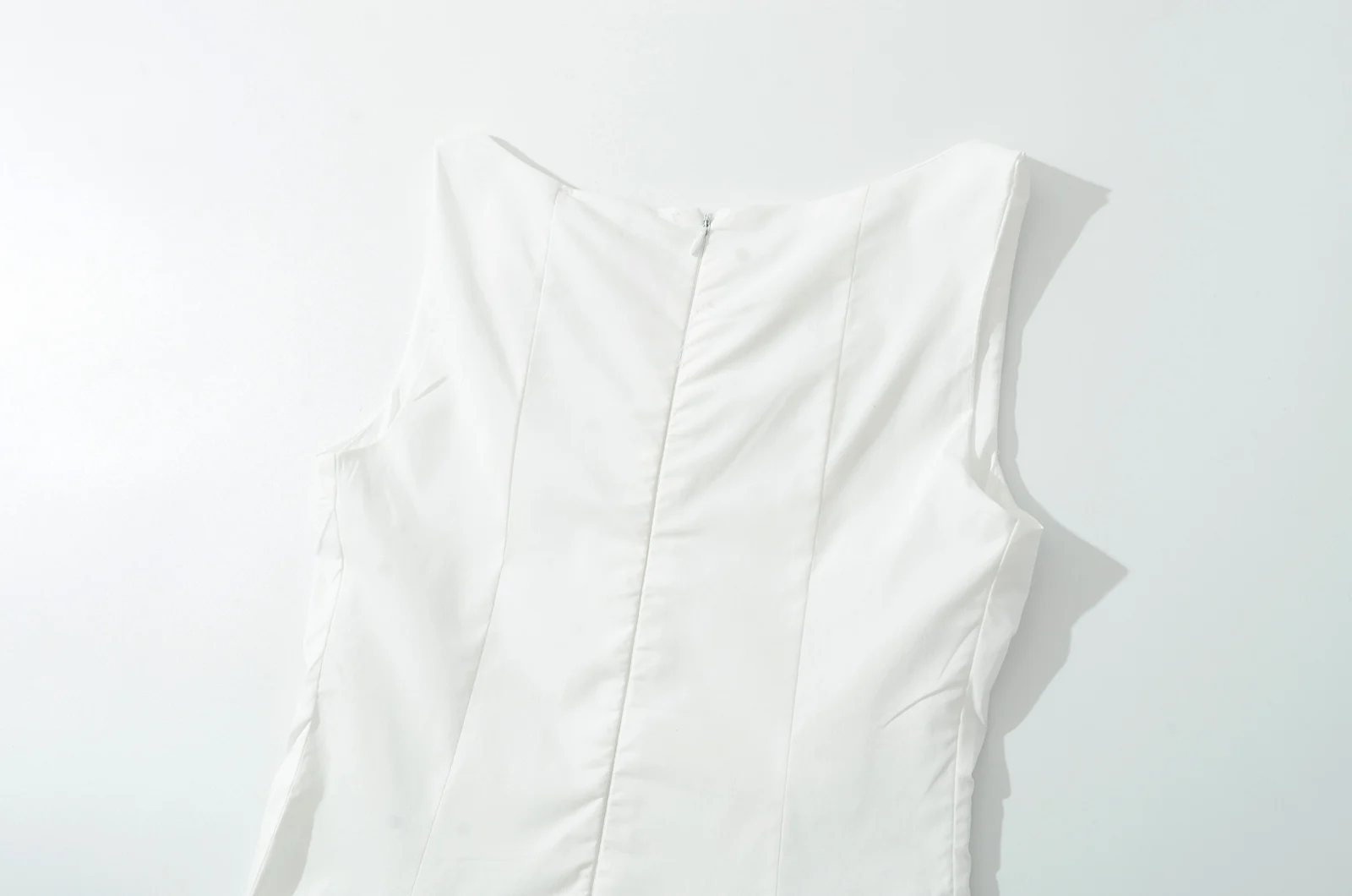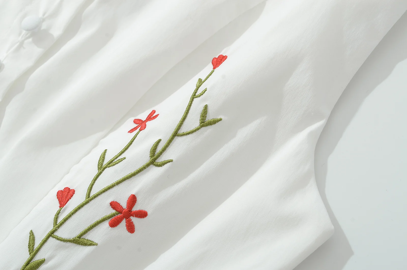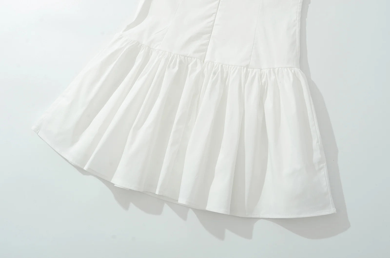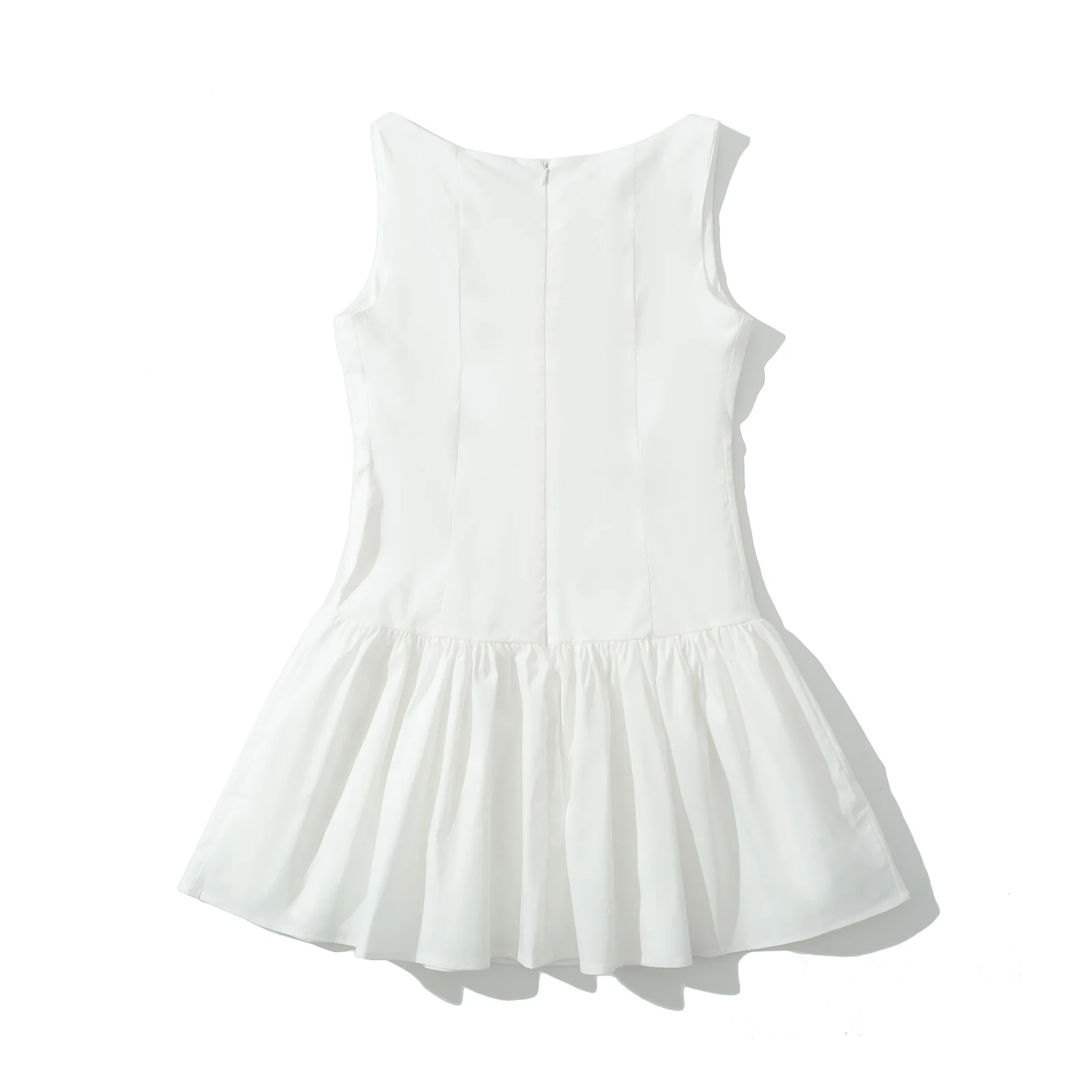 KYLETHOMASW - Sexy White Embroidery Floral Low Waist Mini Tank Dress Women Open Buttons Neck Bodycon Sleeveless Ruched Hem Swing Party Robe