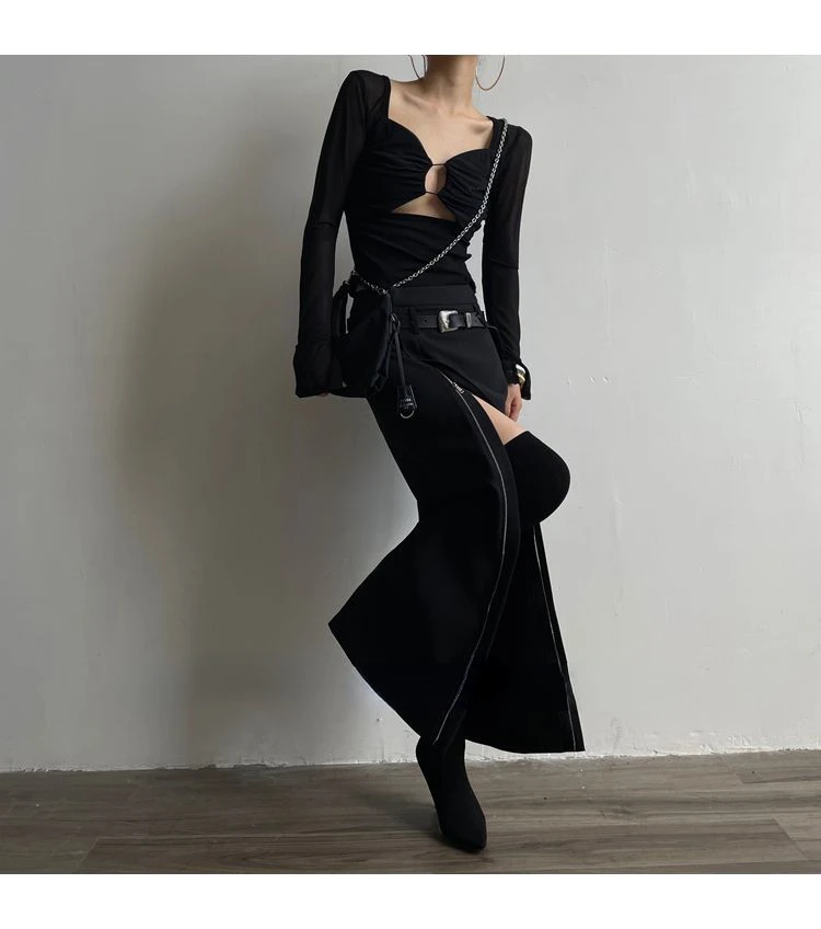 Kylethomasw Sexy Zipper Split Out Black Skirt High Street Solid High Waist Long Skirts for Women Club Party Streetwear Fashion Trend