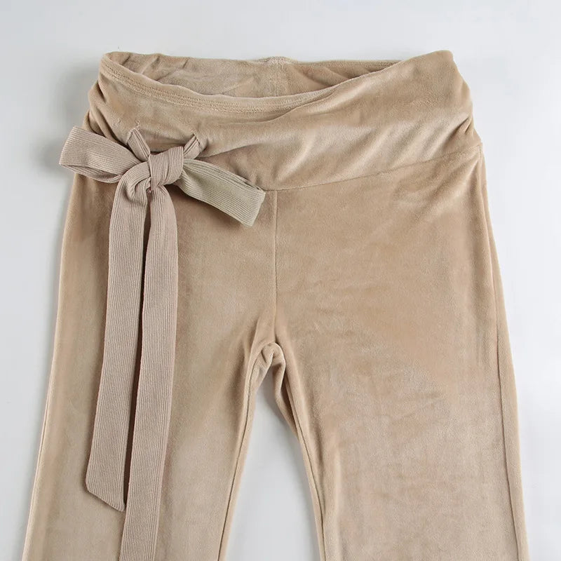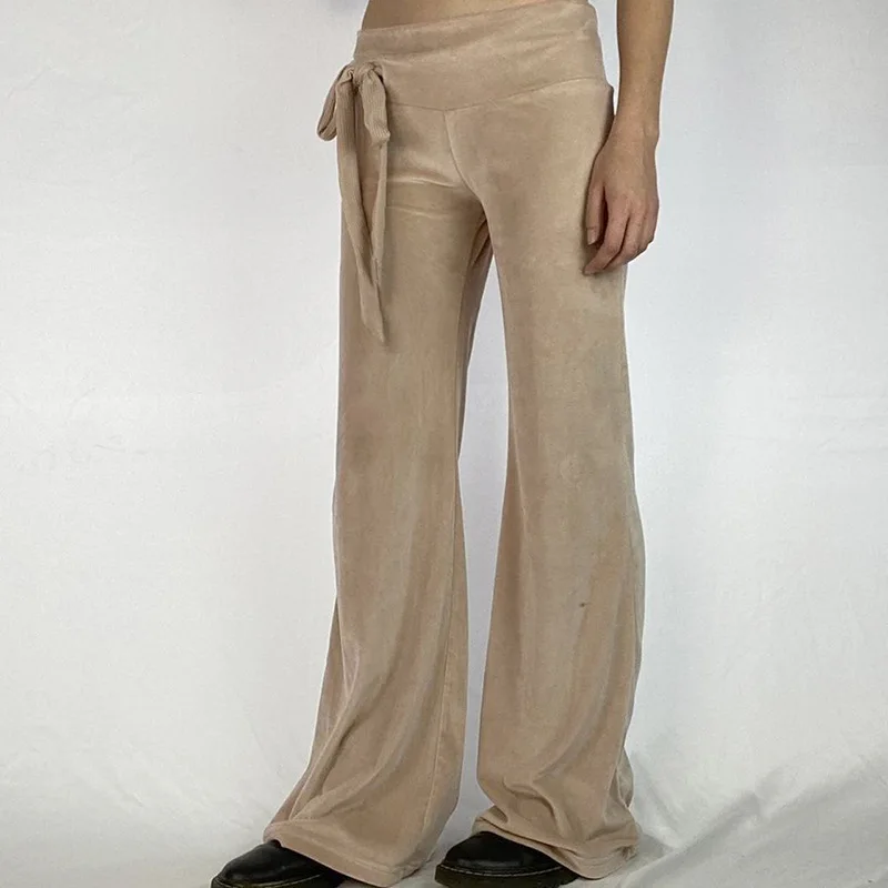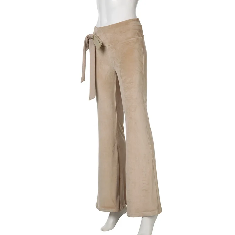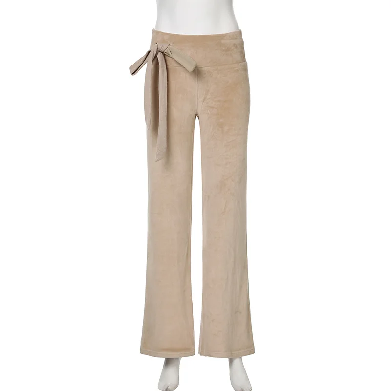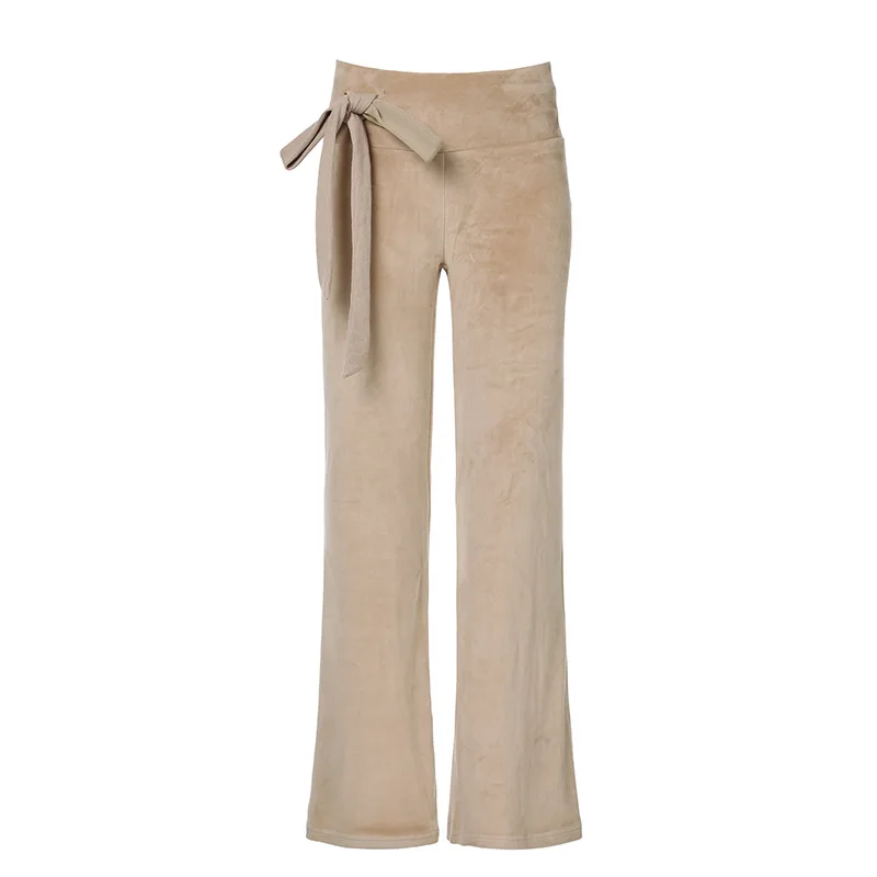 KYLETHOMASW - Skin tone, low waist, three-dimensional bow tie, wide leg pants, temperament, velvet drape, casual pants