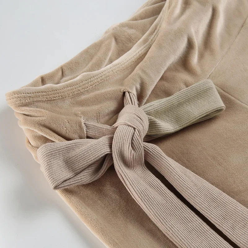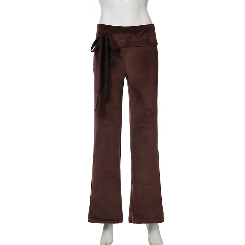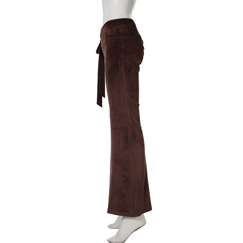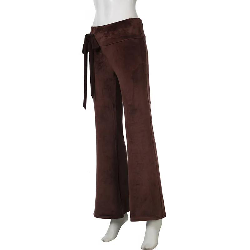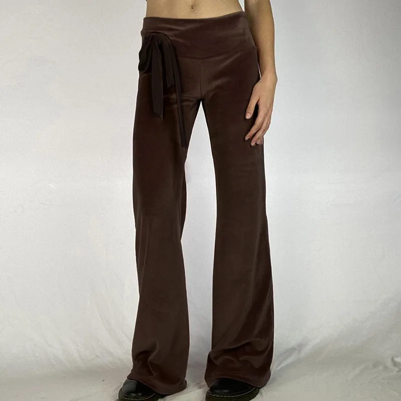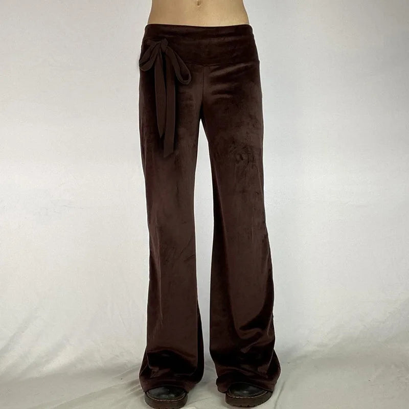 KYLETHOMASW - Skin tone, low waist, three-dimensional bow tie, wide leg pants, temperament, velvet drape, casual pants