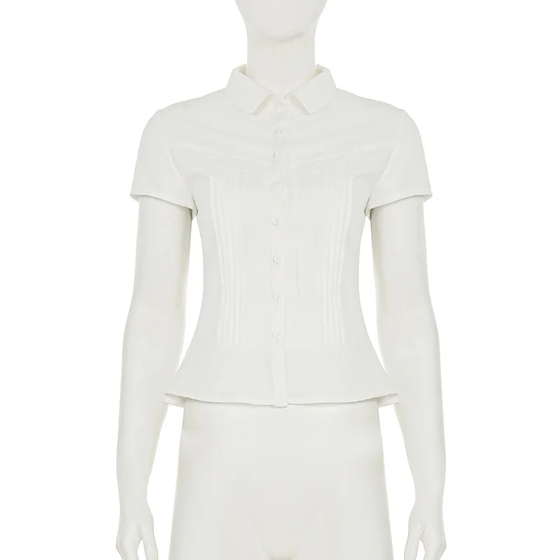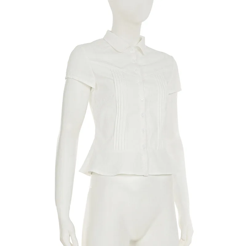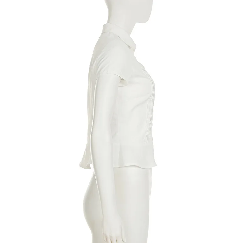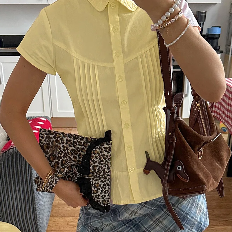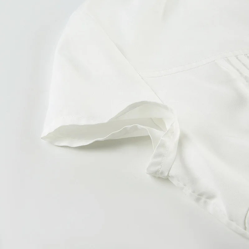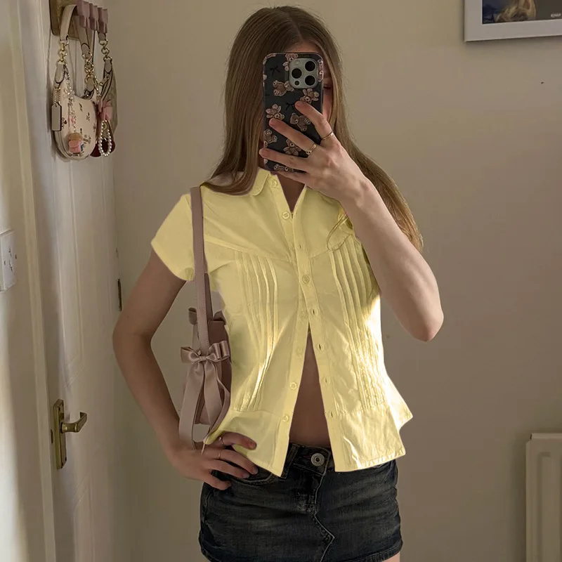 KYLETHOMASW - Solid Color Professional Women's Shirt Spring 2025 New V-Neck Pleated Girlish Age-Reducing Base Shirt Short Sleeve T-Shirt