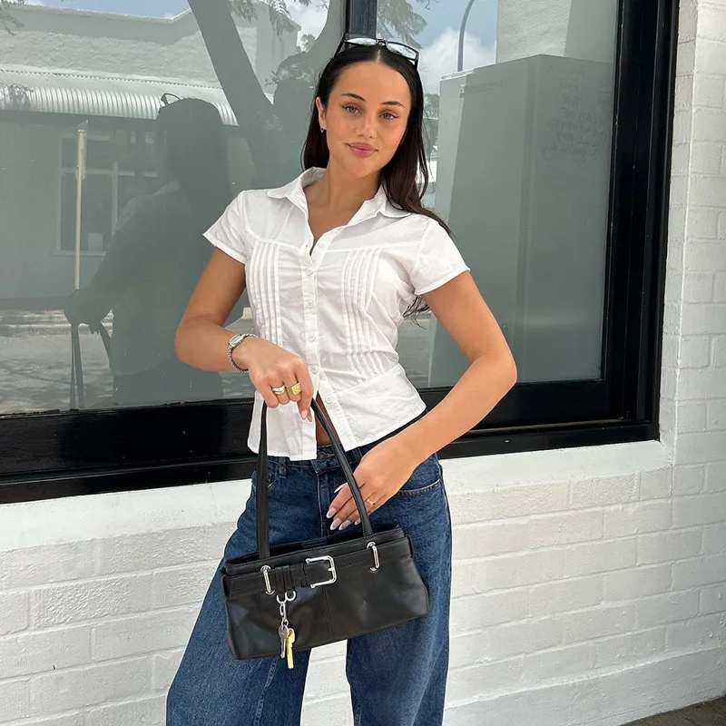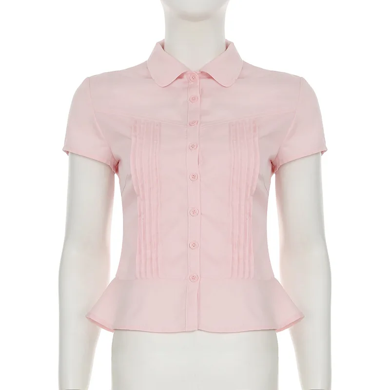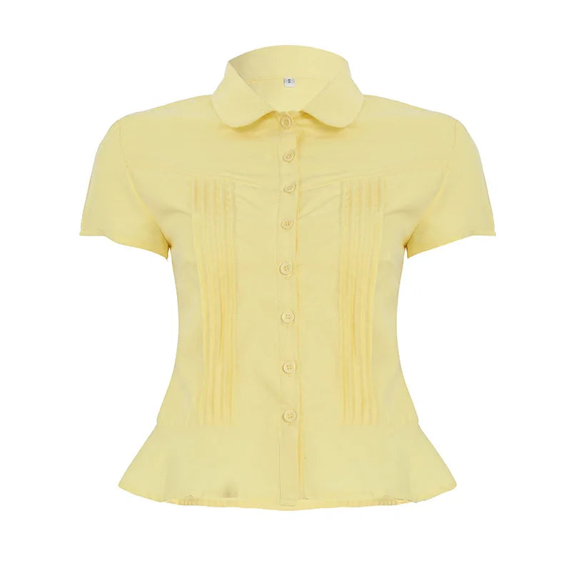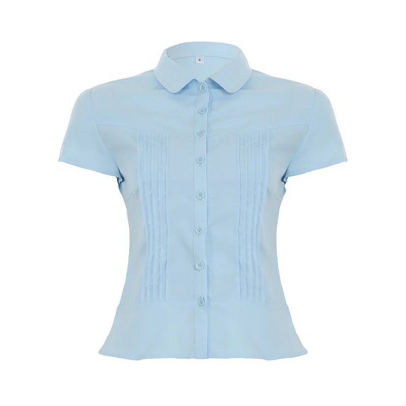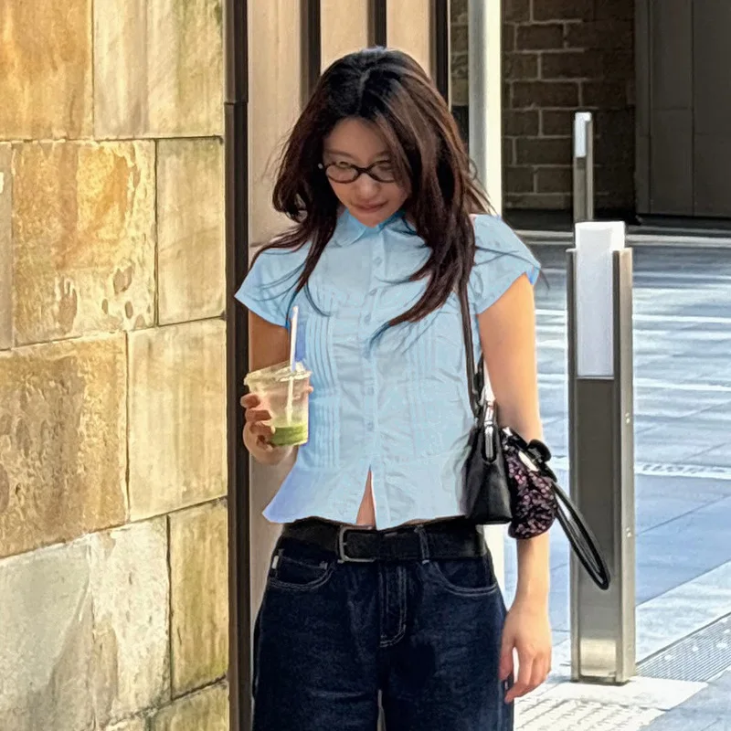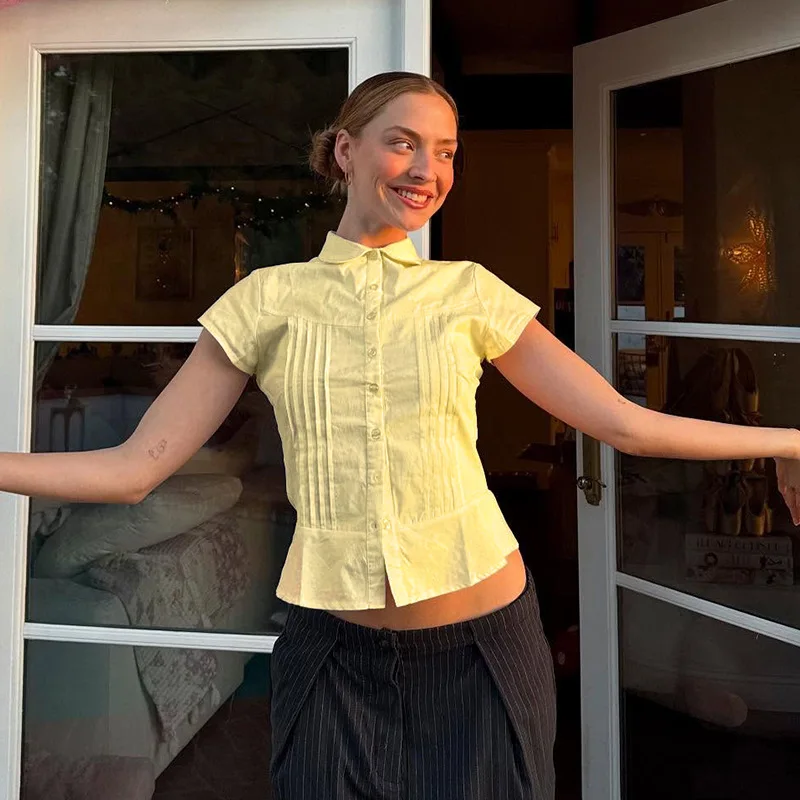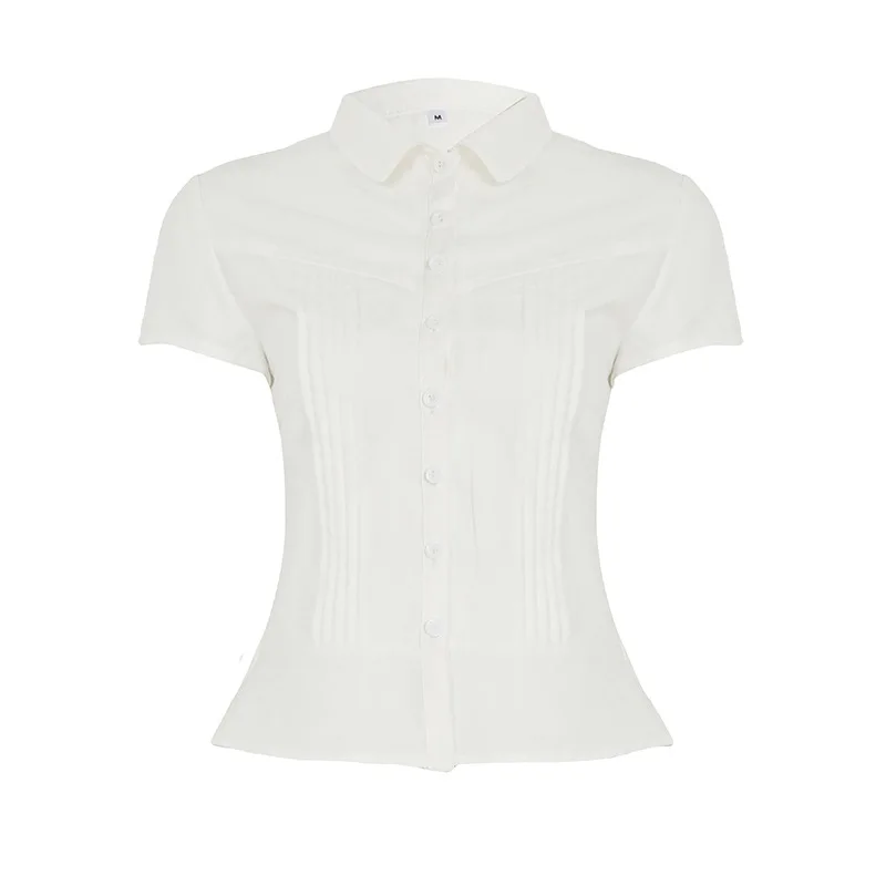 KYLETHOMASW - Solid Color Professional Women's Shirt Spring 2025 New V-Neck Pleated Girlish Age-Reducing Base Shirt Short Sleeve T-Shirt