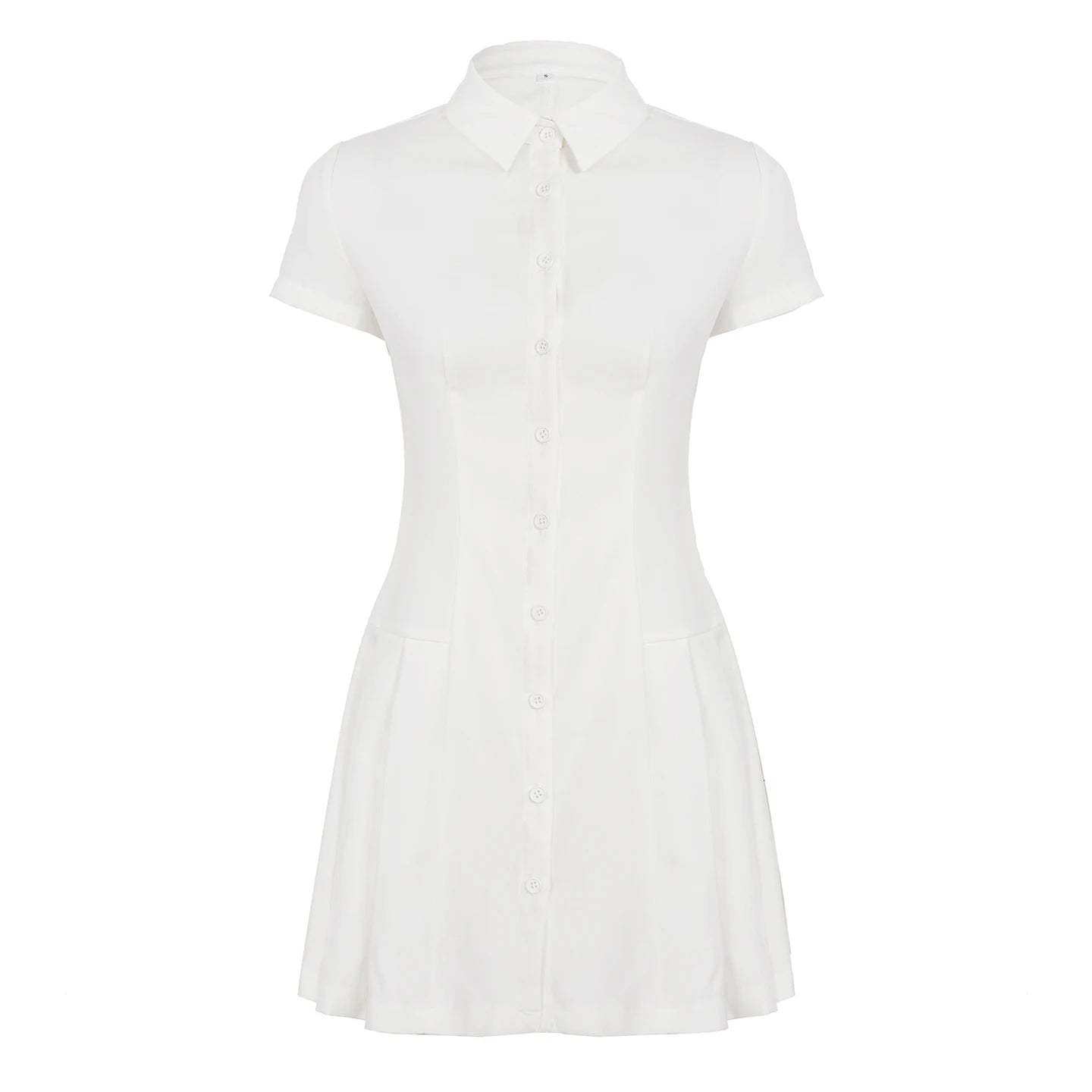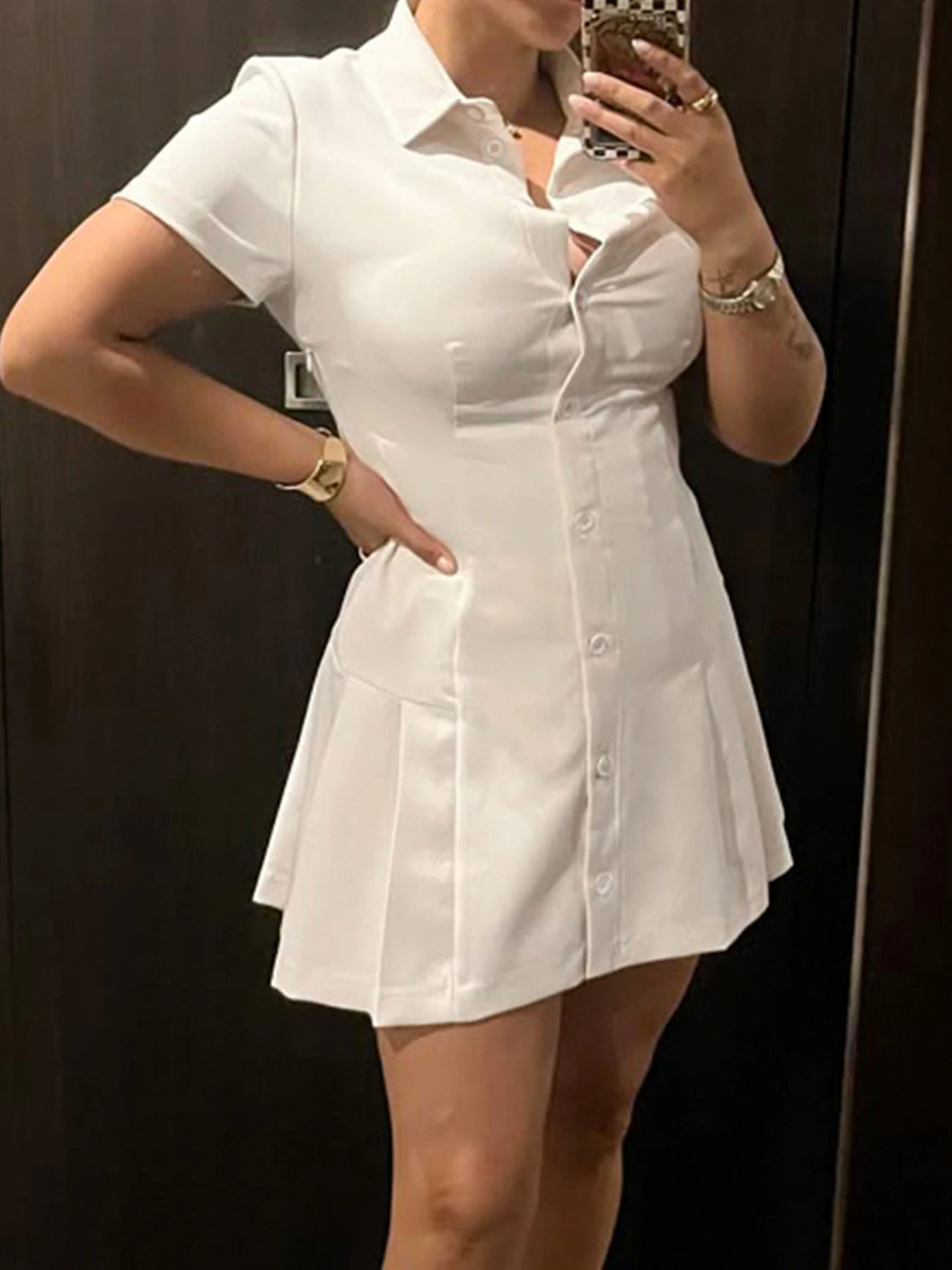 KYLETHOMASW  -  Solid Fashion Skinny Shirts Dresses Short Sleeves All-Match Office Lady Summer Causal Frocks