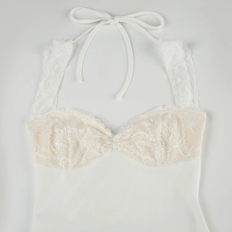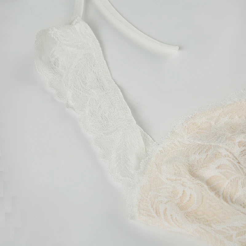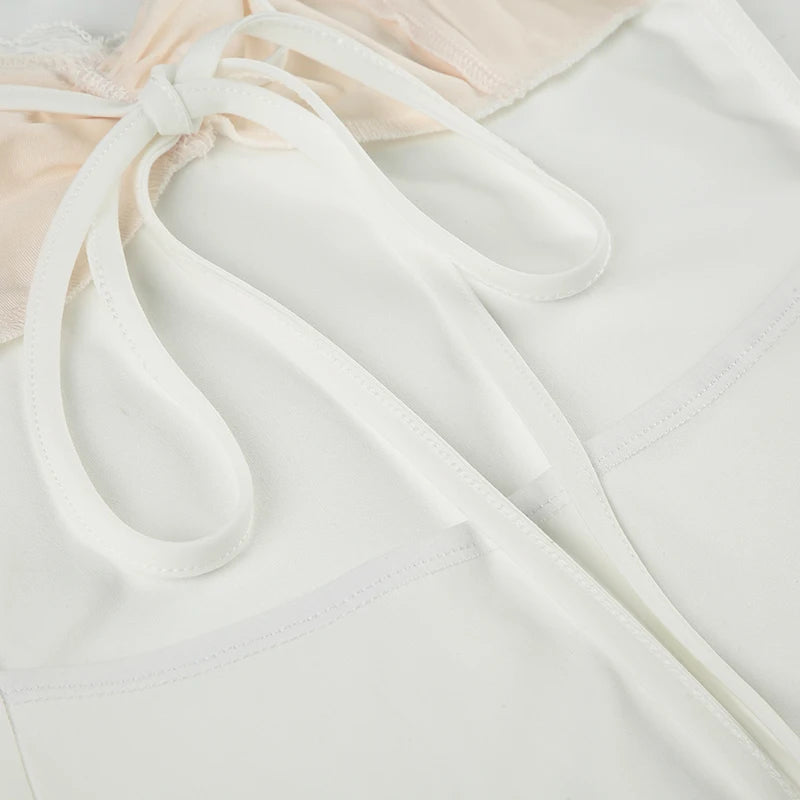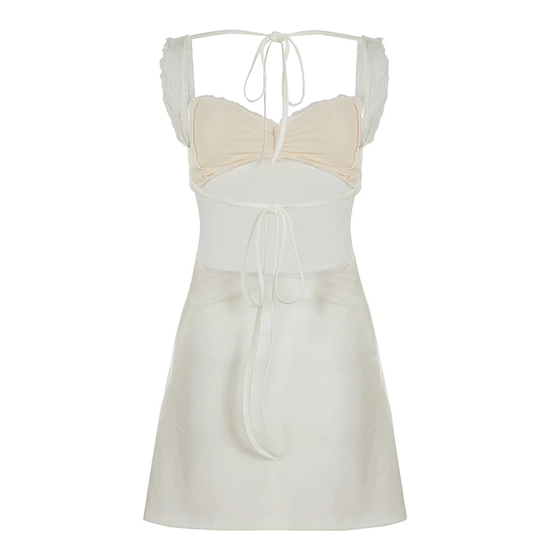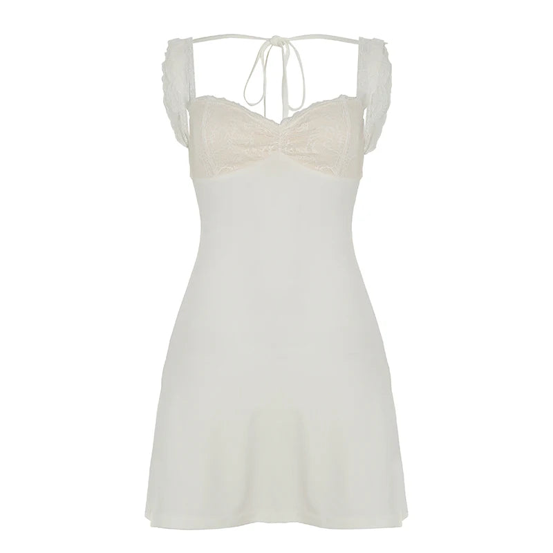 KYLETHOMASW - Solid Lace Spliced A-Line Women Mini Dresses Backless Design Sexy Fashion New Summer Hottie Dresses