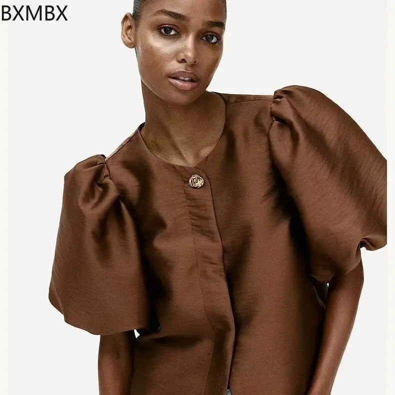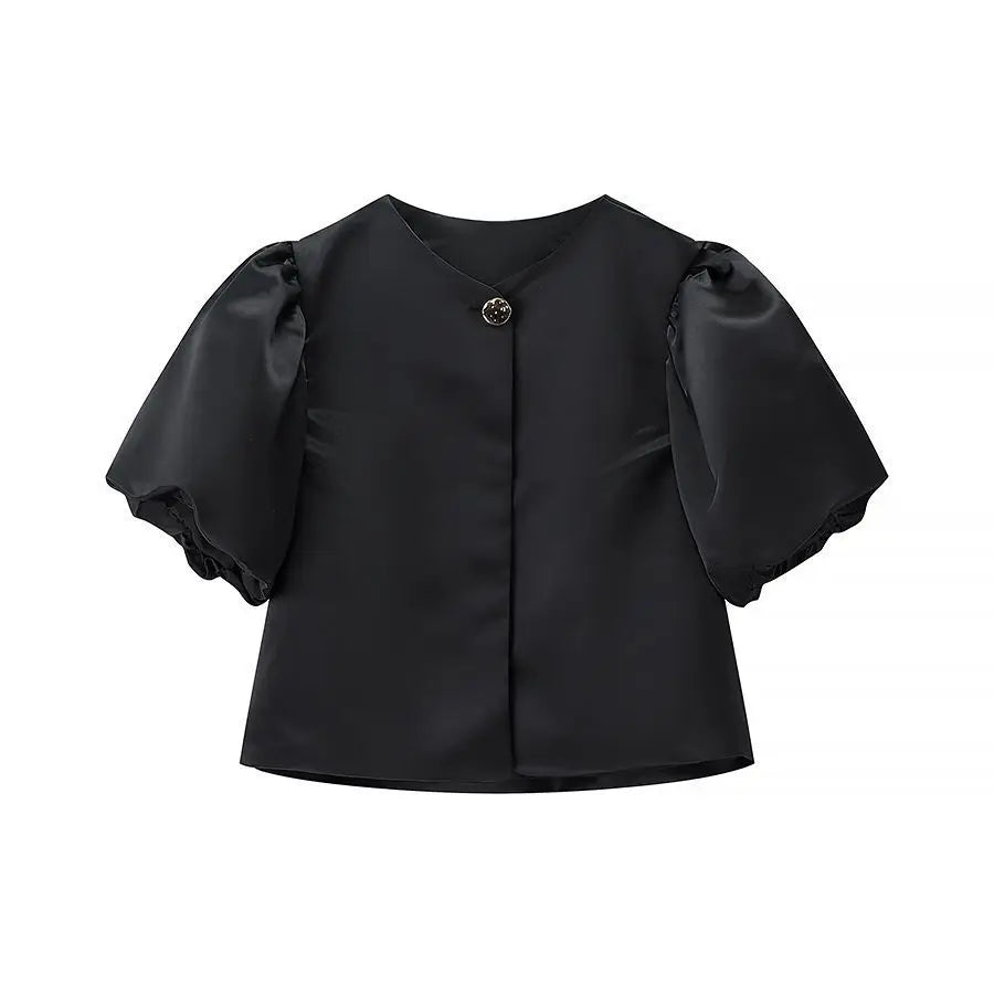 KYLETHOMASW - spring and summer new women's clothing fashion casual one-button bubble sleeve shirt casual short top women