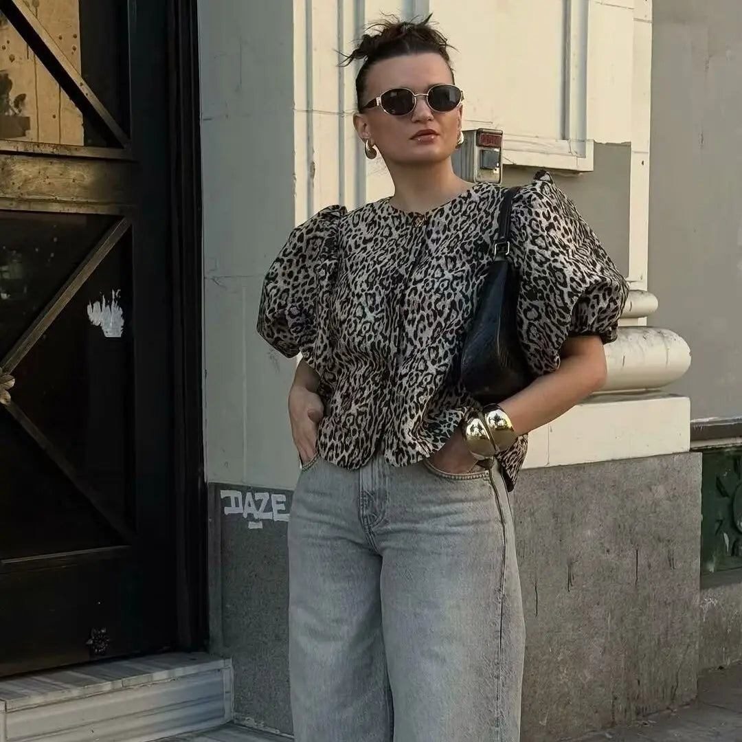 KYLETHOMASW  -  spring and summer new women's clothing fashion casual one-button bubble sleeve shirt casual short top women
