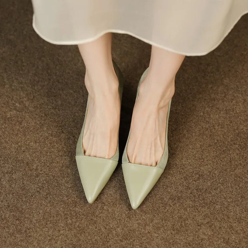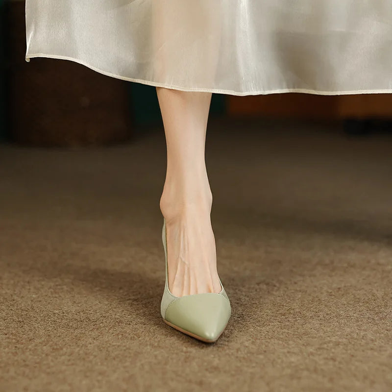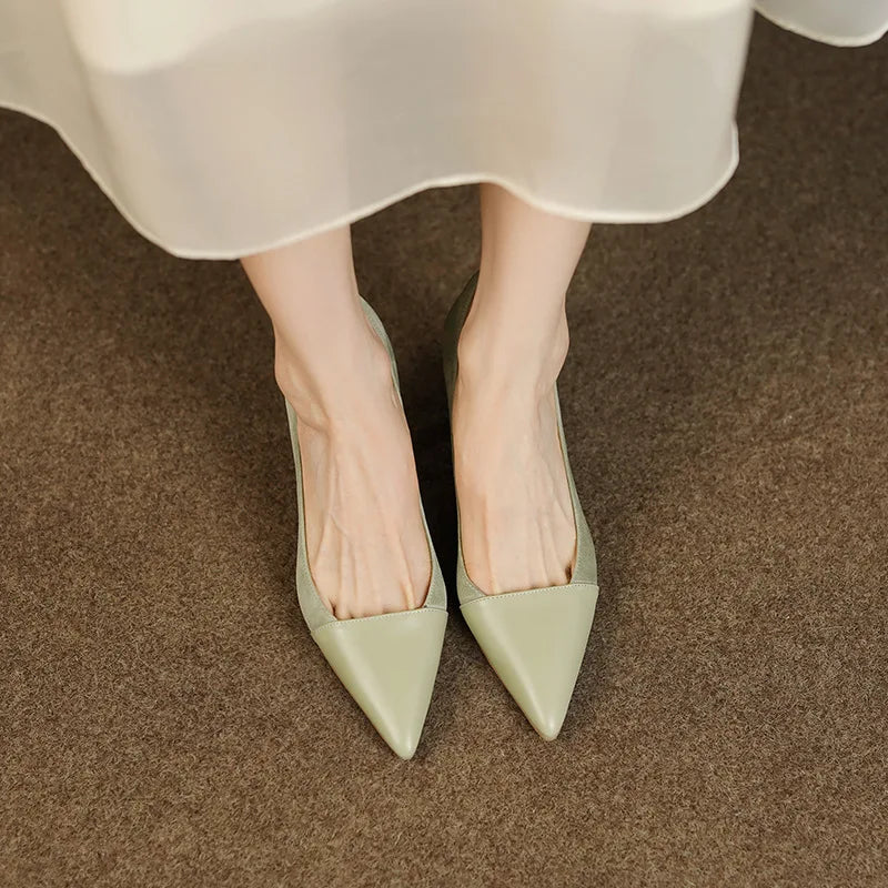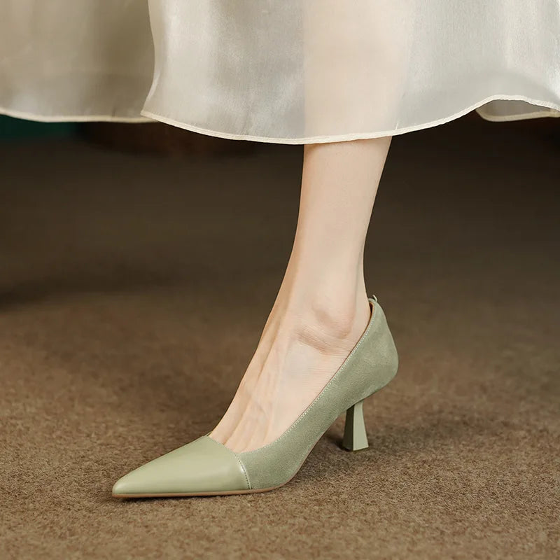KYLETHOMASW - Spring Autumn New Splicing Shallow Mouth Single Shoes Women French Pointed Toe Temperament High Heels