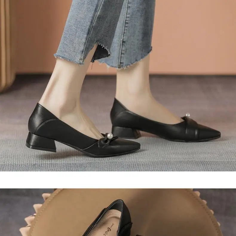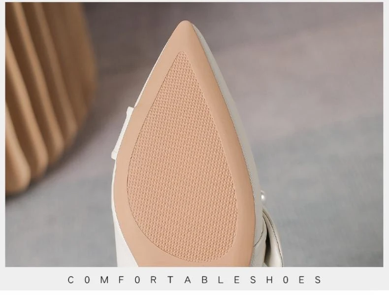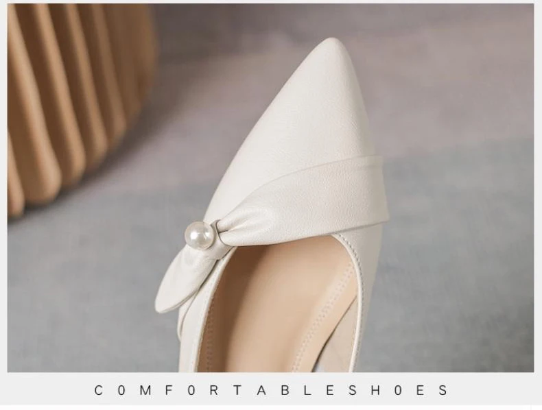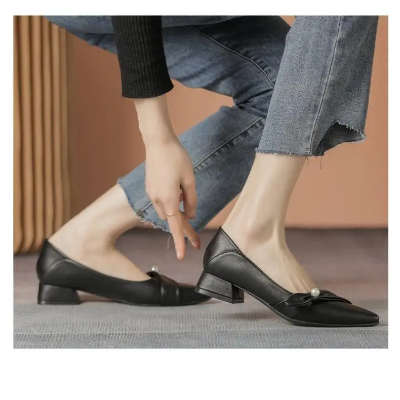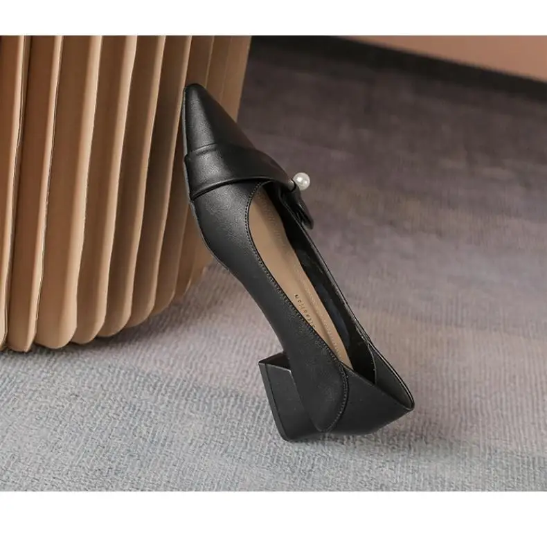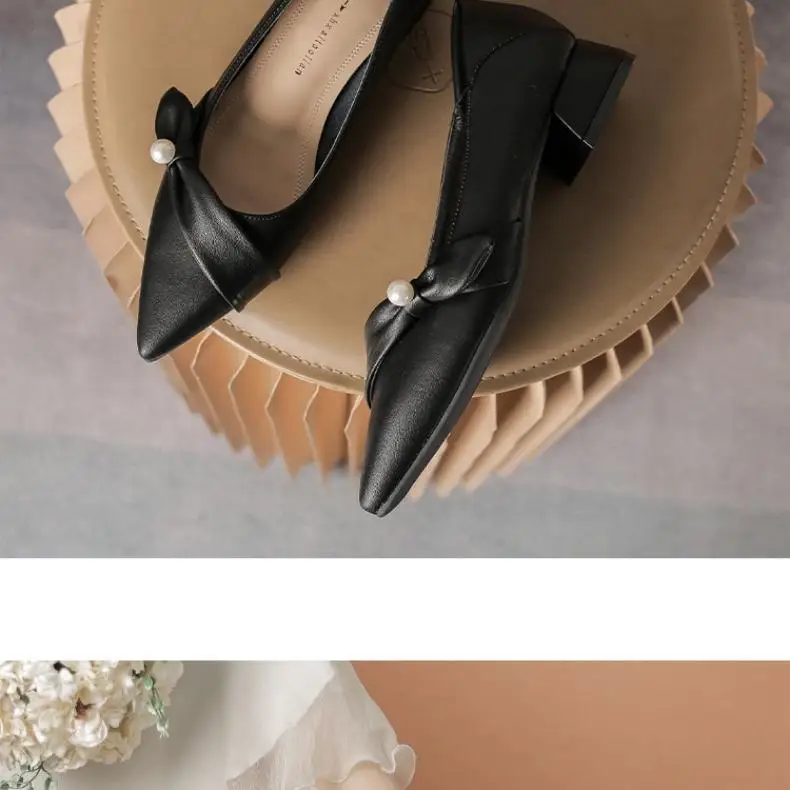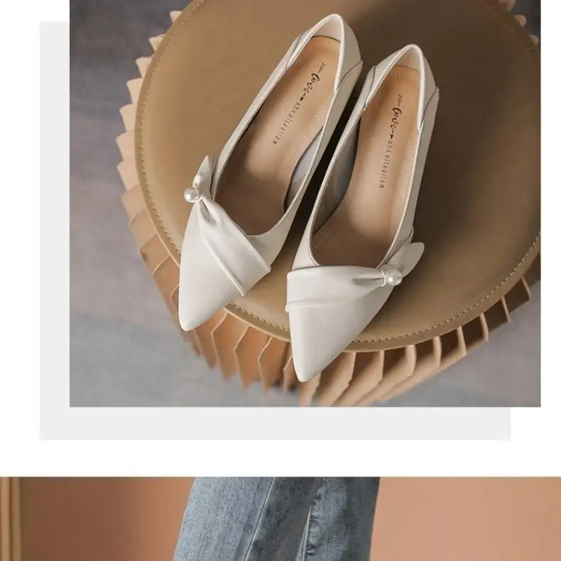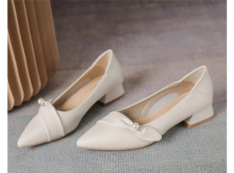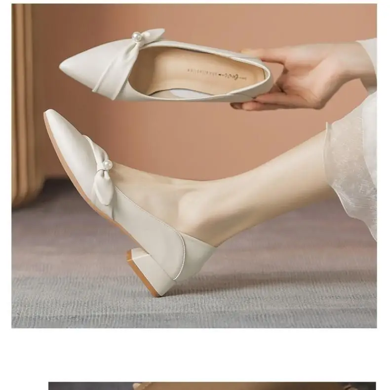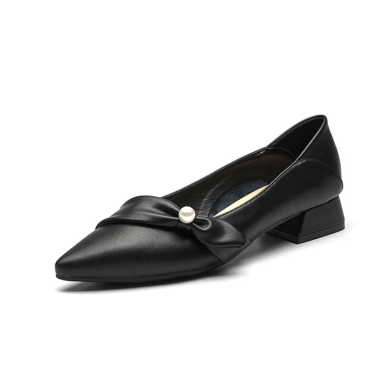 KYLETHOMASW - spring leather bow band flat shoes woman pointed toe pearl decoration slip on loafers two wears pleated ballet flats for women