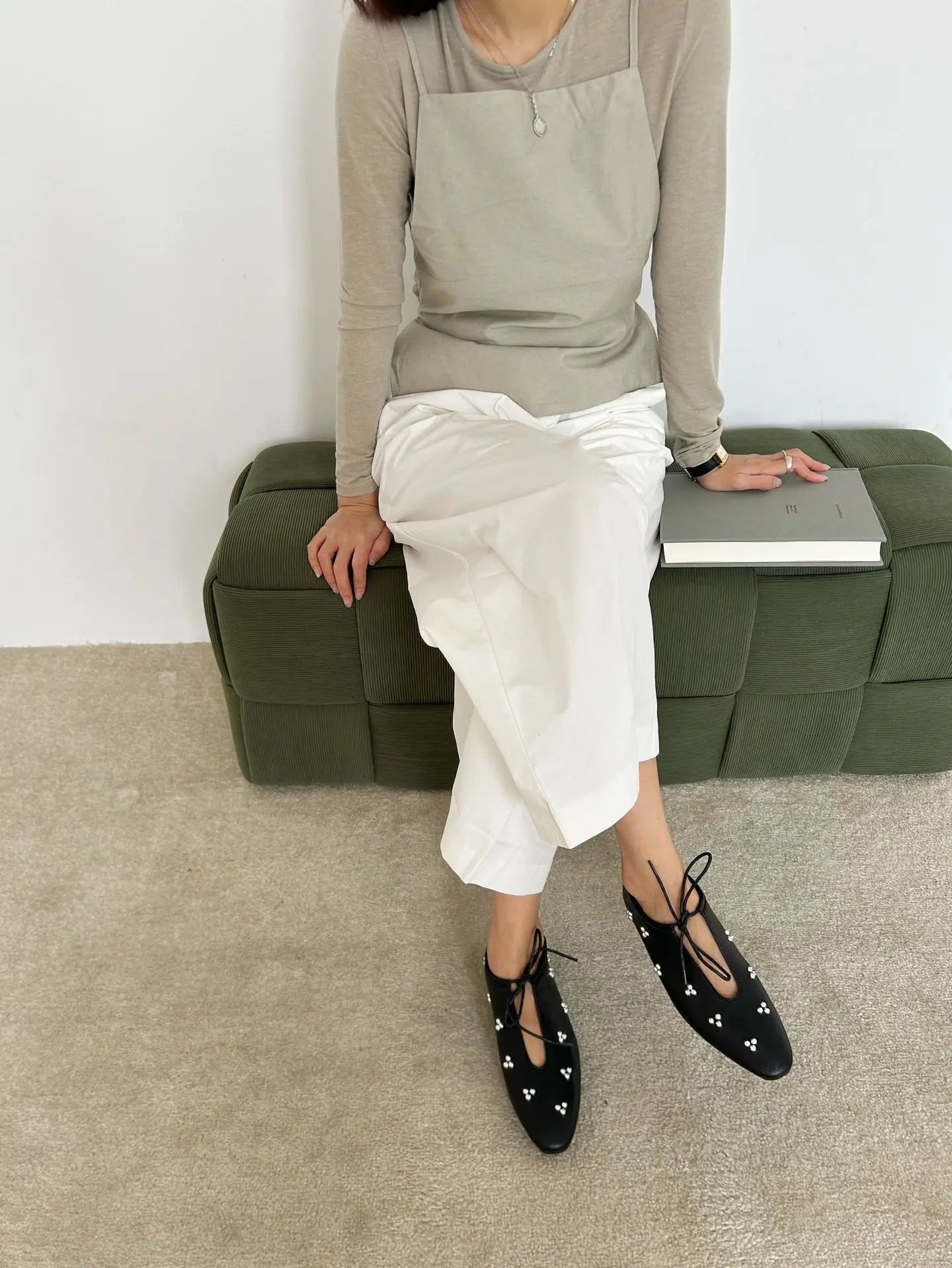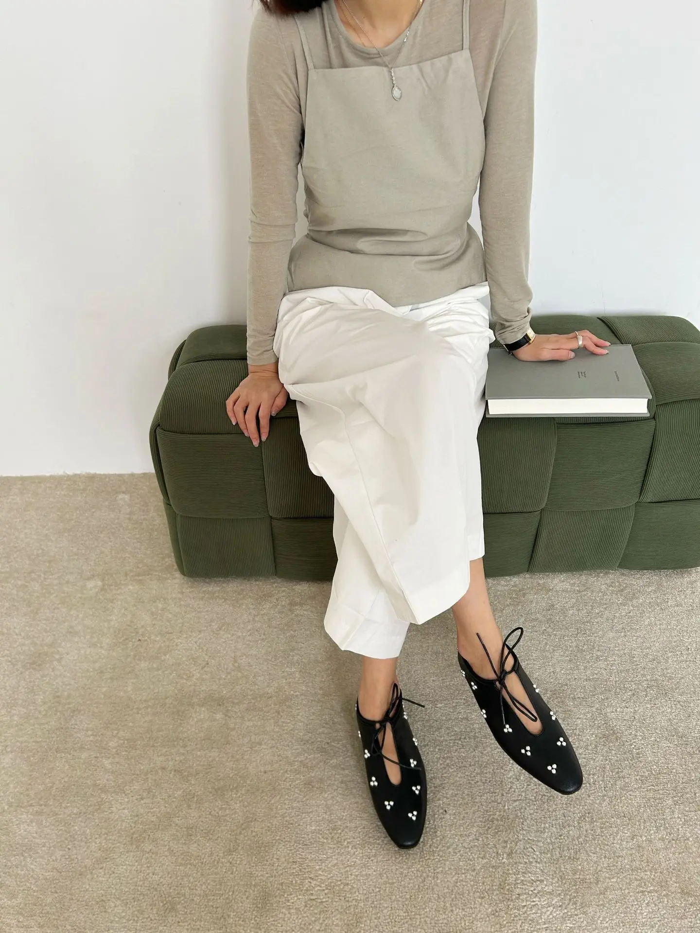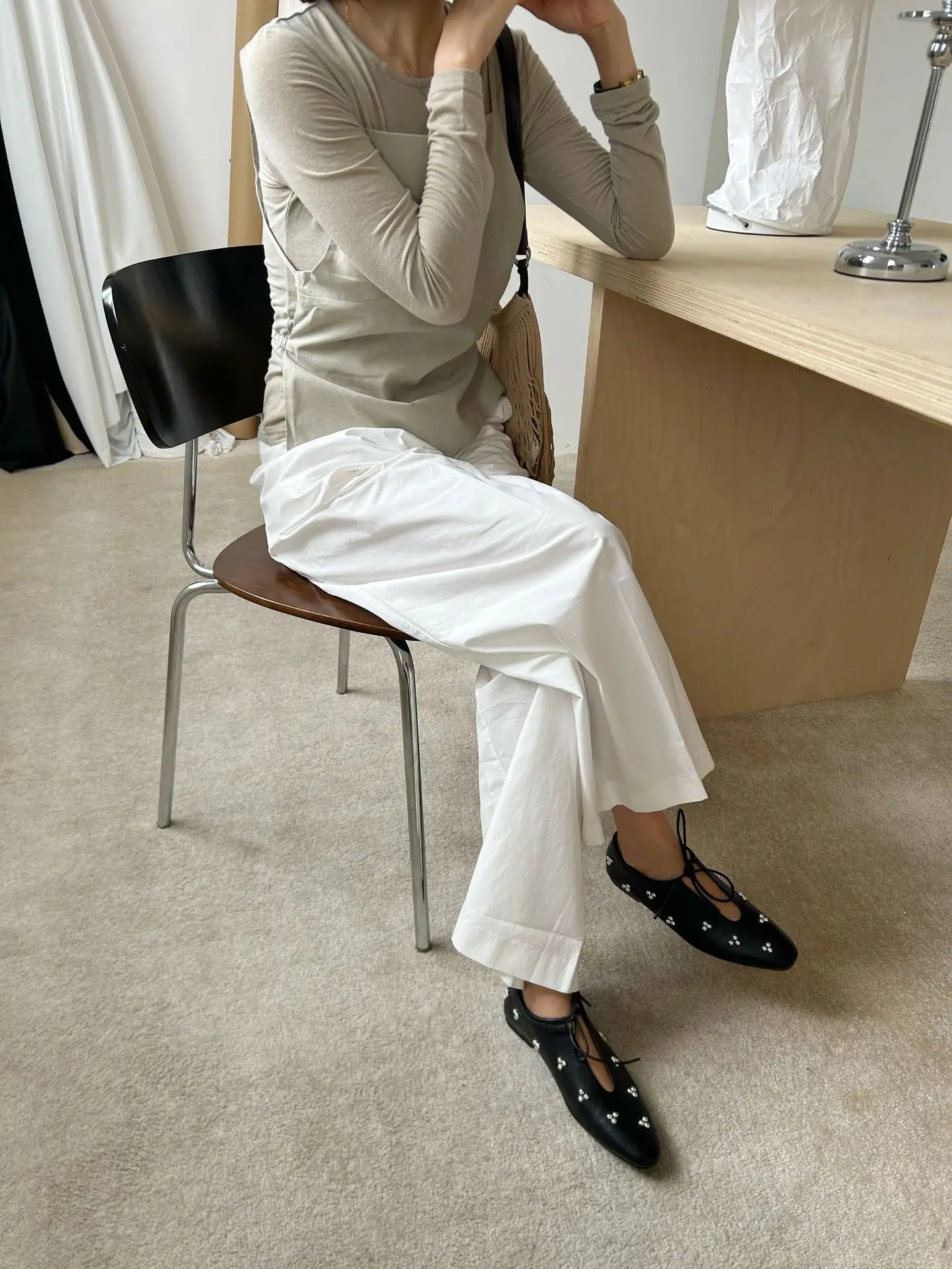 KYLETHOMASW - Spring Metal Rivet Decoration Shallow Mouth Ballet Flats 2025 High Quality Soft Bottom Lacing Flat Shoes Casual Comfy Shoes