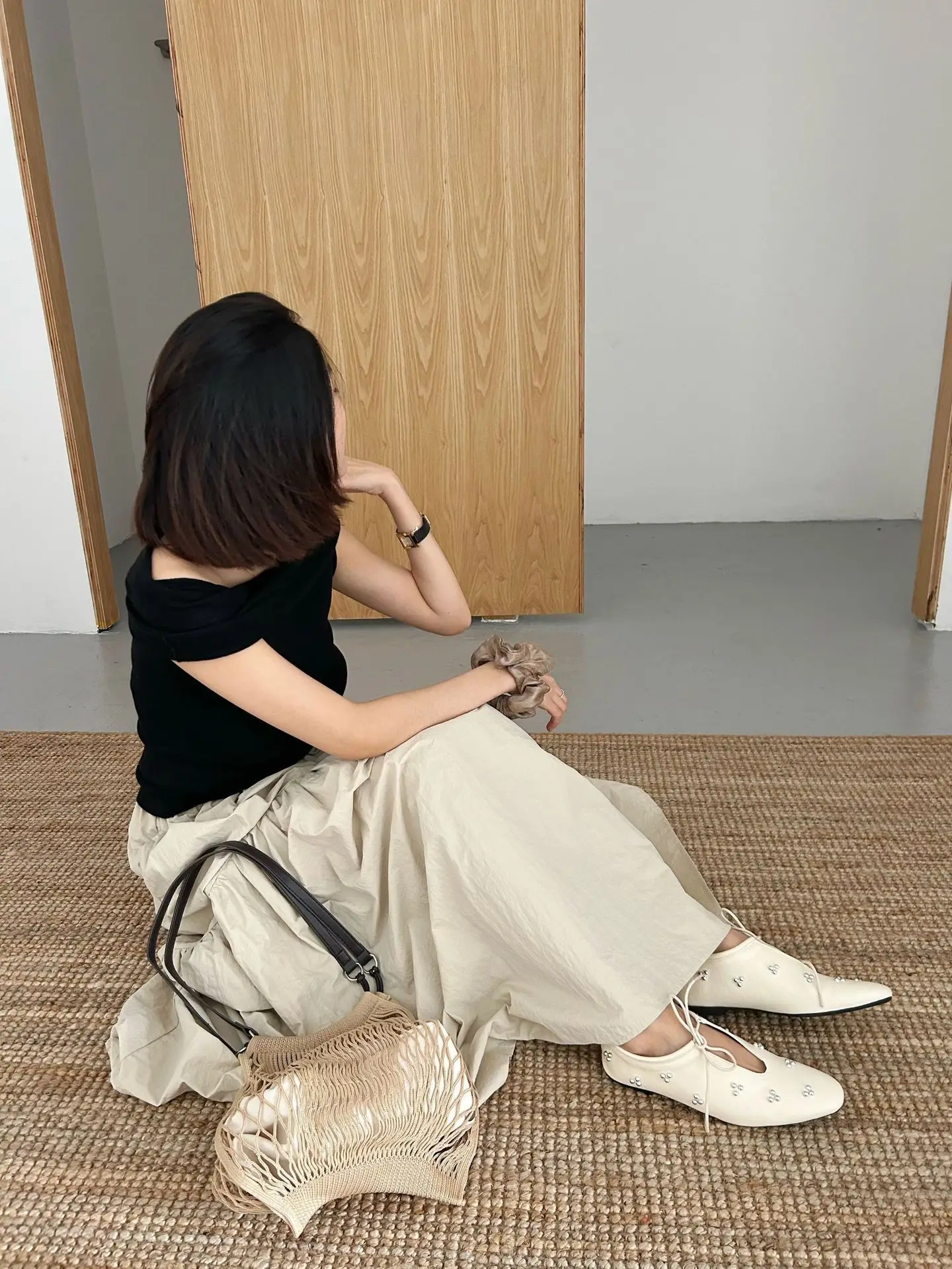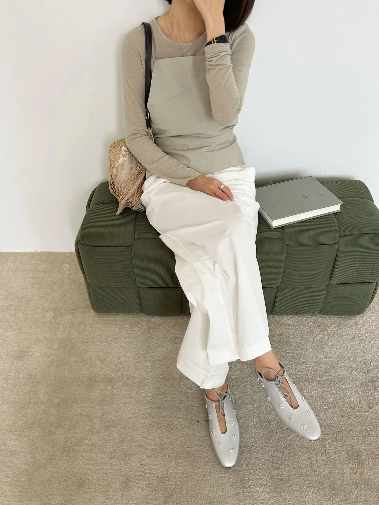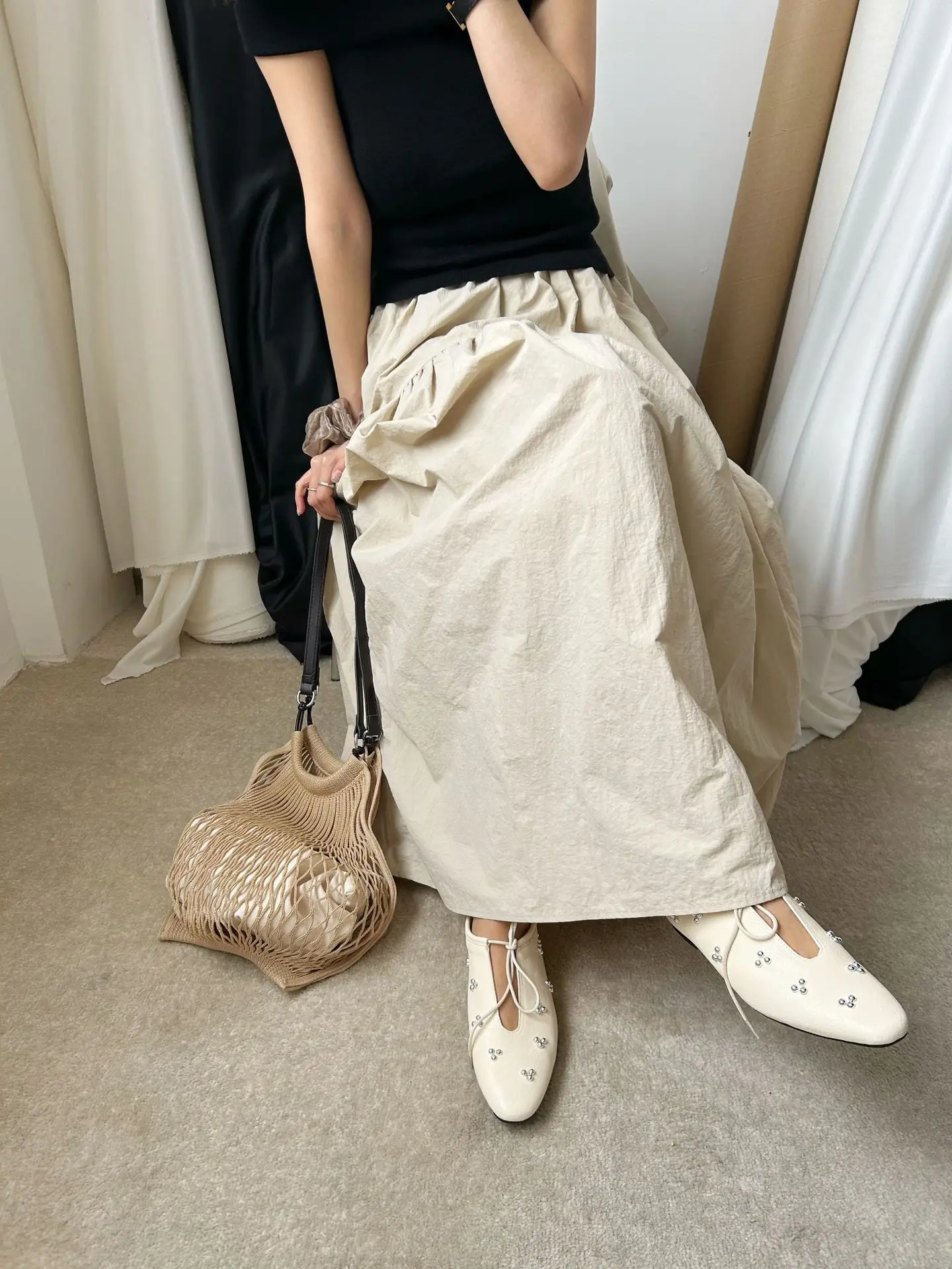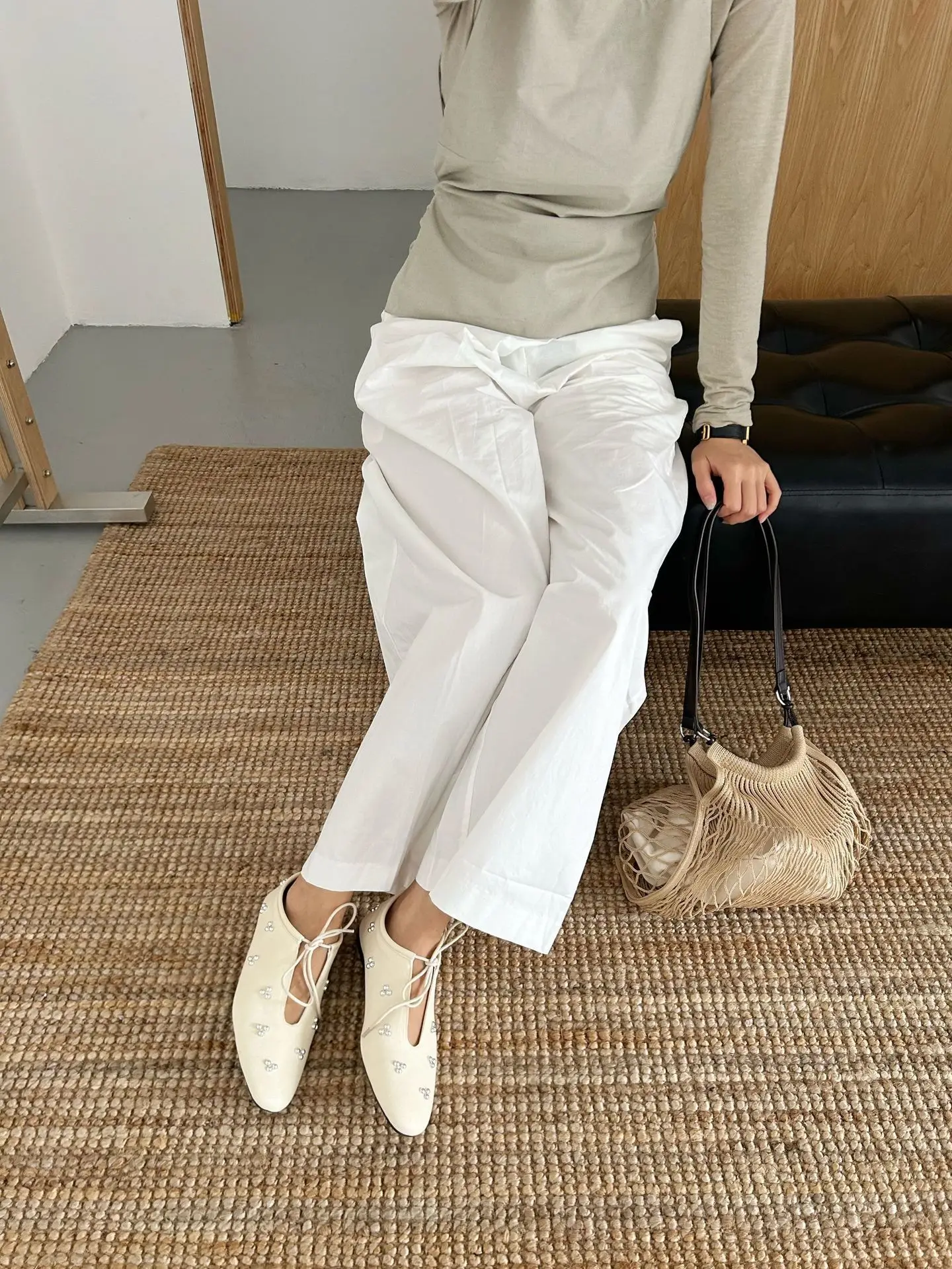 KYLETHOMASW - Spring Metal Rivet Decoration Shallow Mouth Ballet Flats 2025 High Quality Soft Bottom Lacing Flat Shoes Casual Comfy Shoes